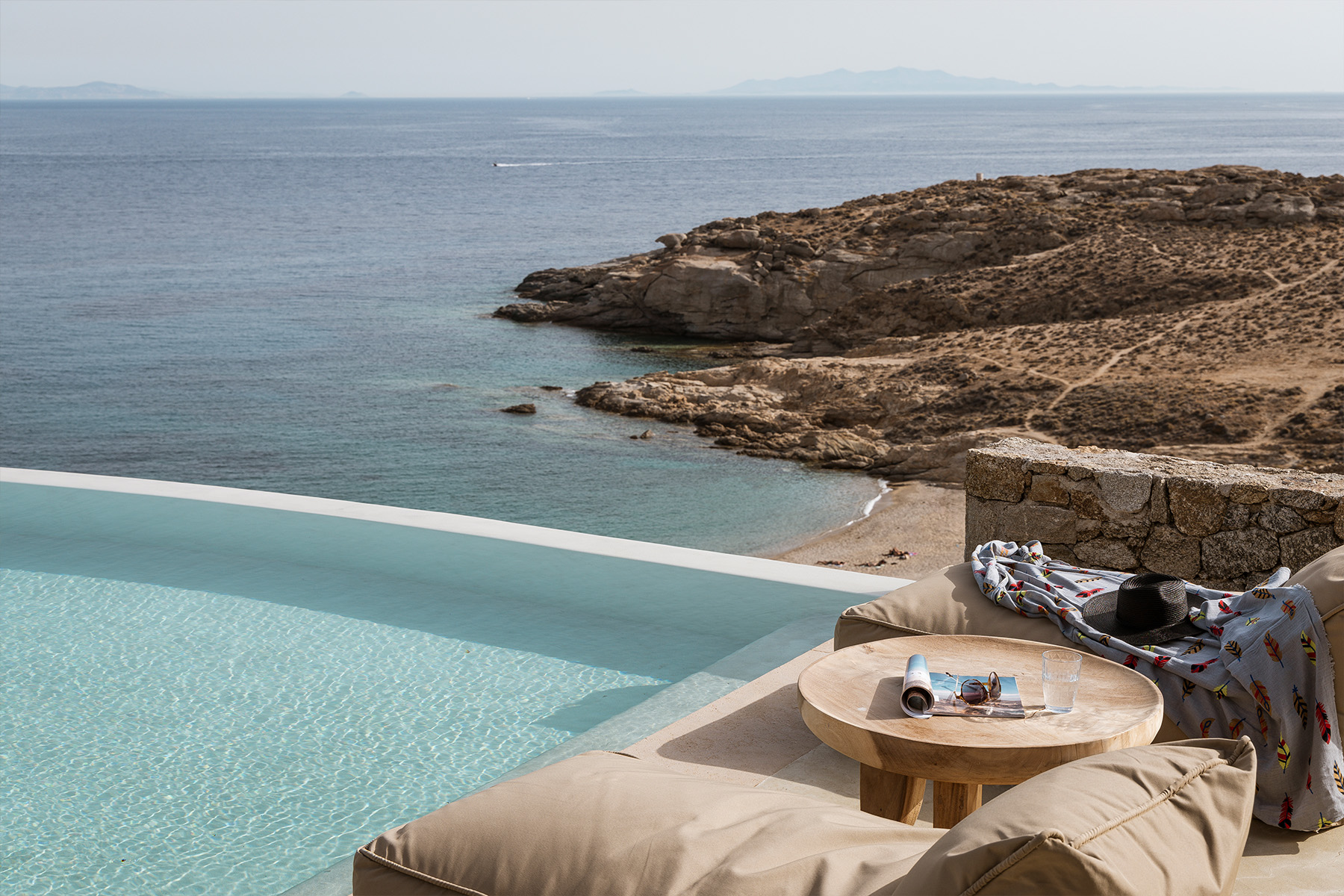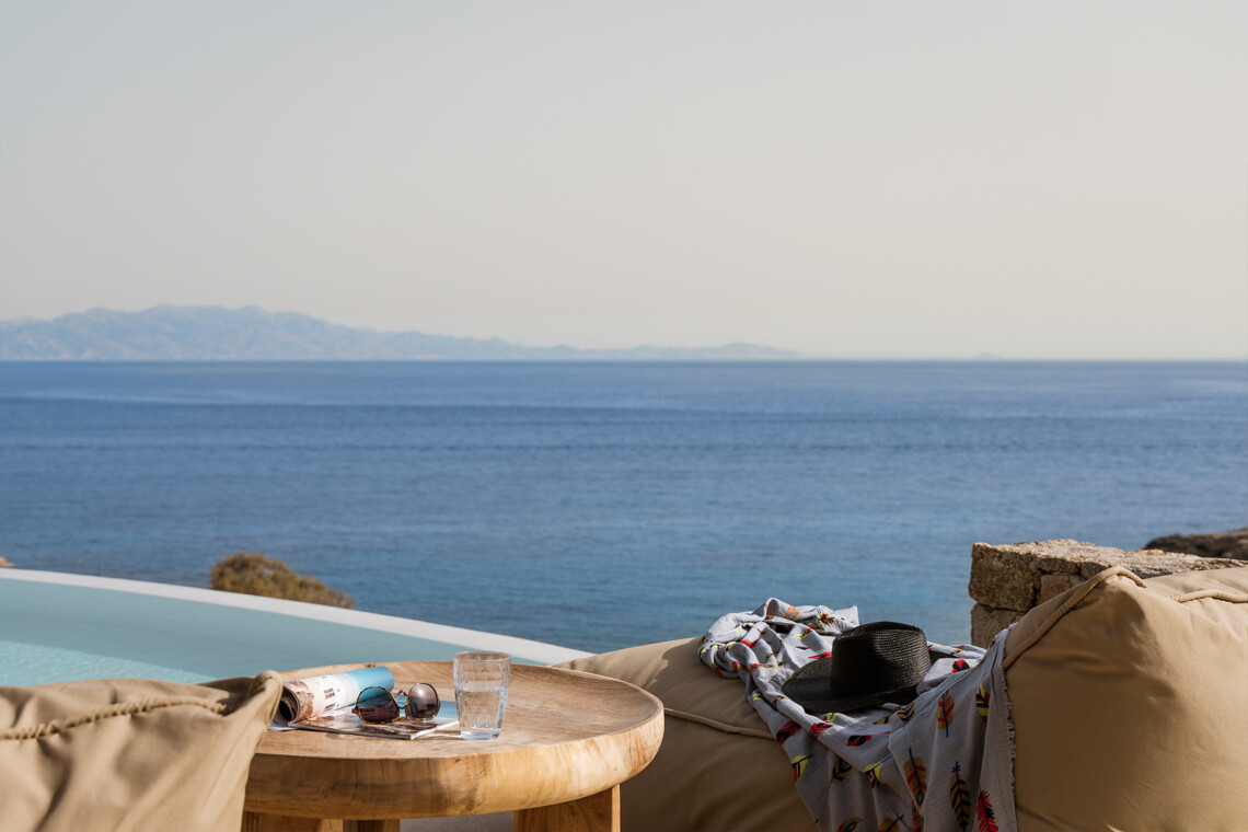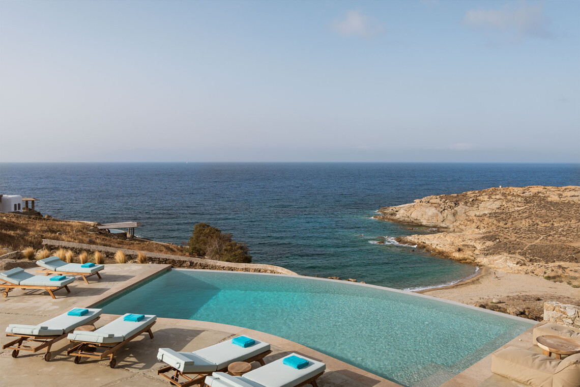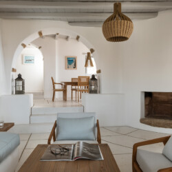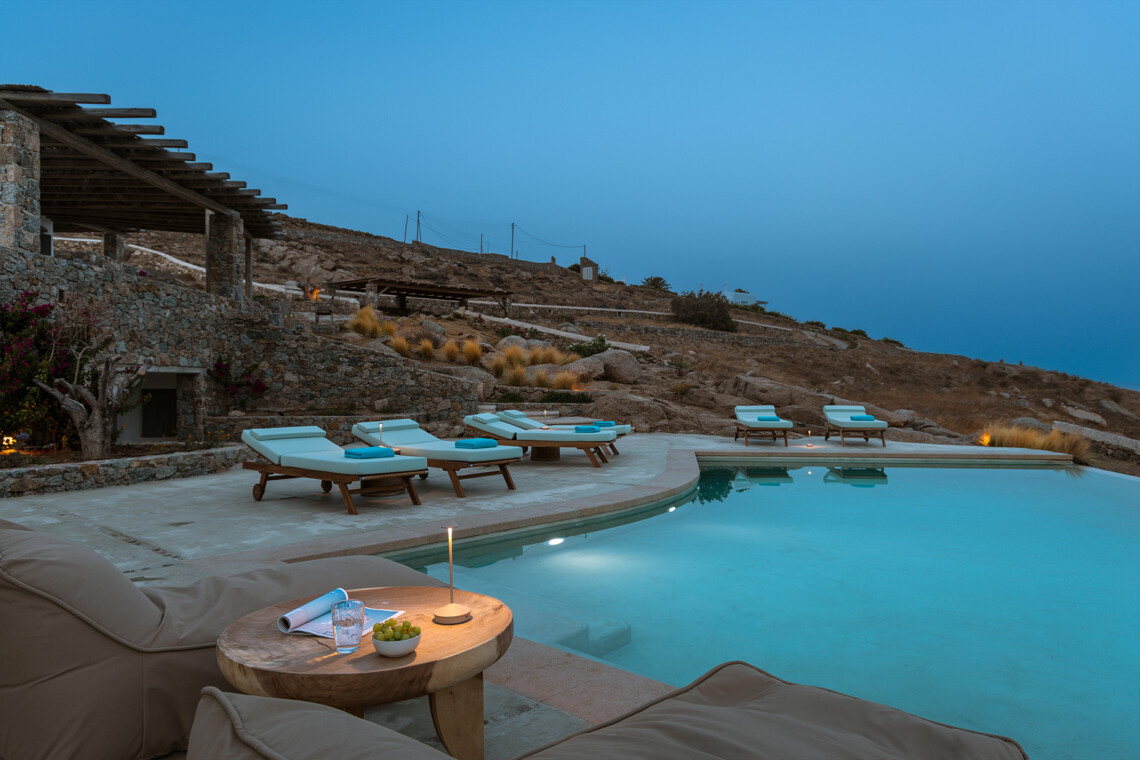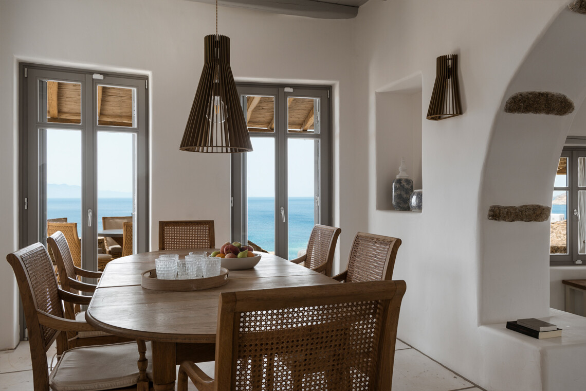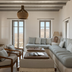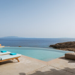 Blending traditional Cycladic architecture with modern amenities, the villa’s interiors are a tribute to the pristine surroundings, featuring natural stone accents, minimalist design, and large windows that invite the stunning sea views indoors. The outdoor area is a Mediterranean haven, centered around an infinity-edge pool that merges seamlessly with the horizon. Sun loungers, a shaded BBQ area, and al fresco dining spaces complete this picturesque retreat, providing the perfect setting for cherished moments with family and friends.