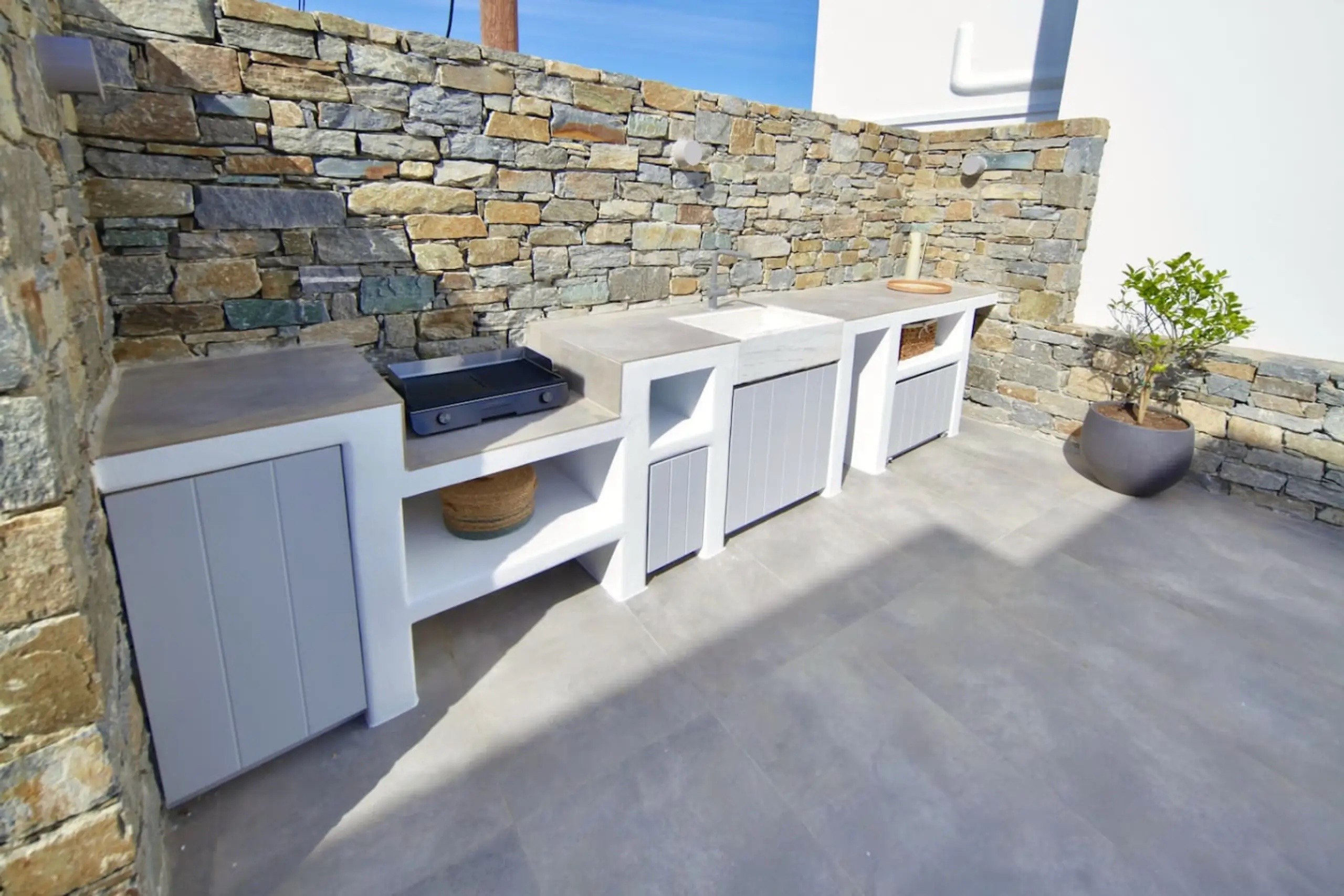Outdoors, Villa Aqua invites you to unwind in complete tranquillity. The private pool, surrounded by lush gardens, offers a serene oasis for sunbathing or swimming. Expansive verandas feature alfresco dining spaces, outdoor kitchens, and a bar area – ideal for sunset drinks or barbecue evenings. Whether you’re enjoying a morning coffee with a sea breeze or a quiet evening under the stars, Villa Aqua delivers the perfect balance of luxury and coastal charm for an unforgettable island escape.