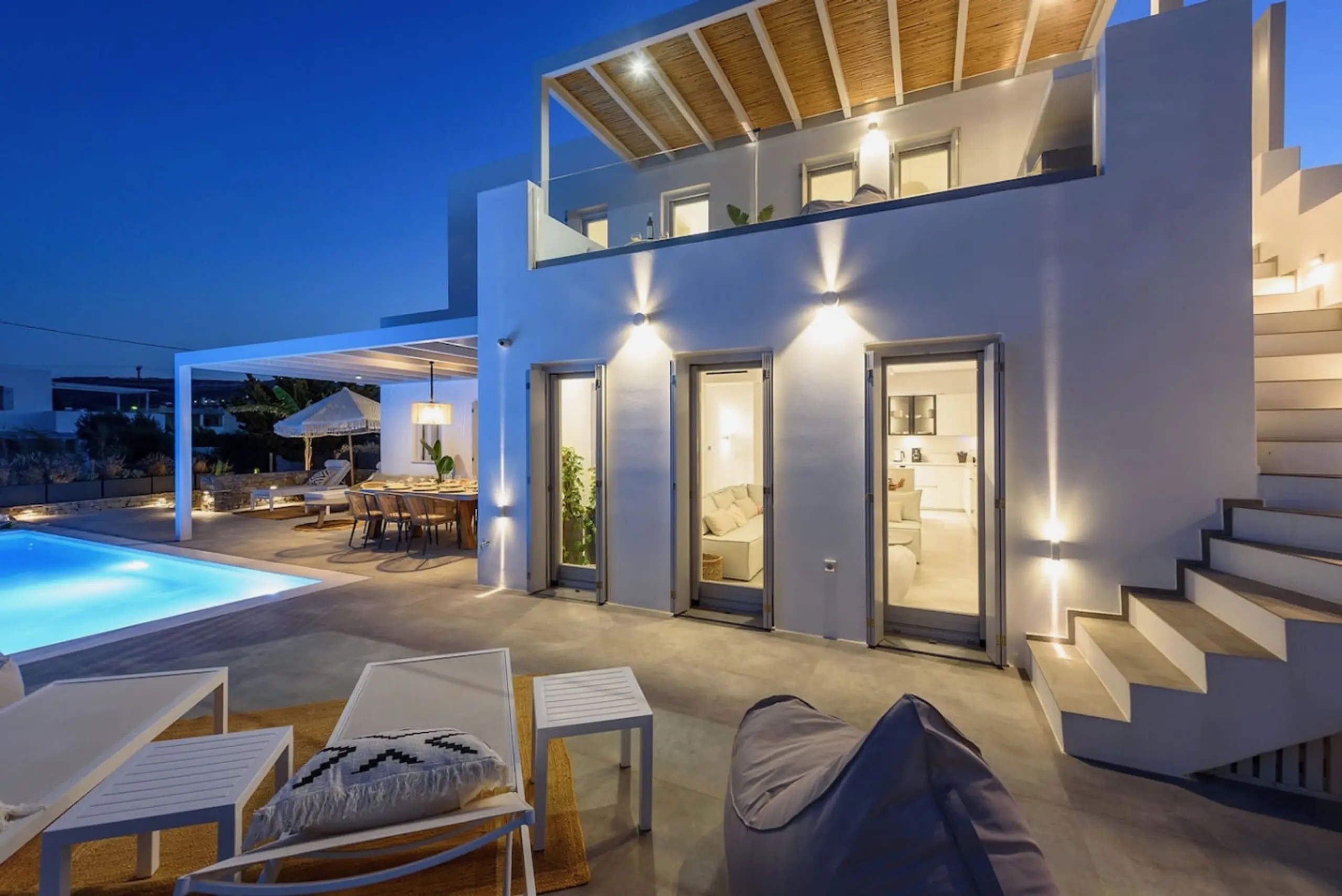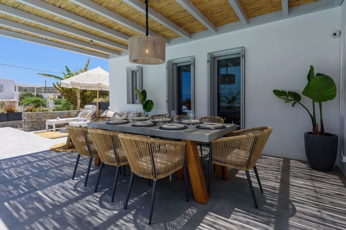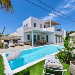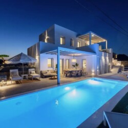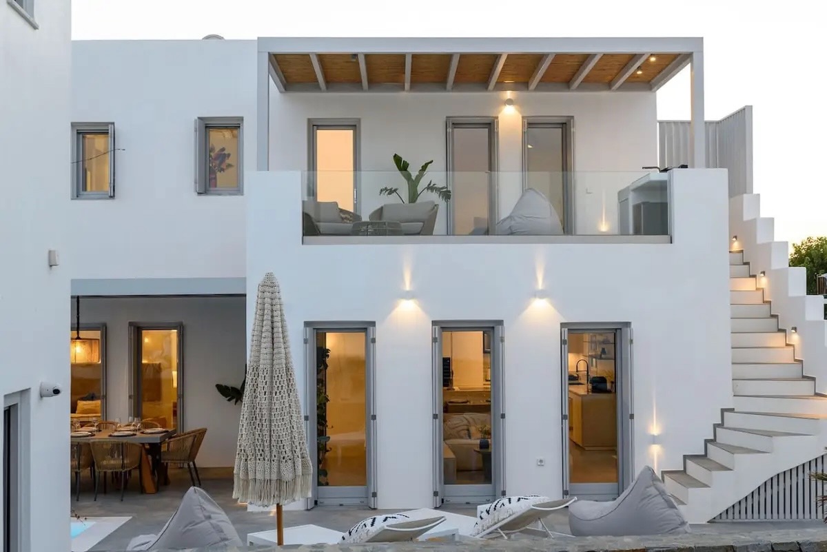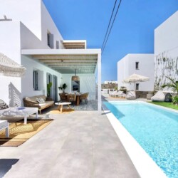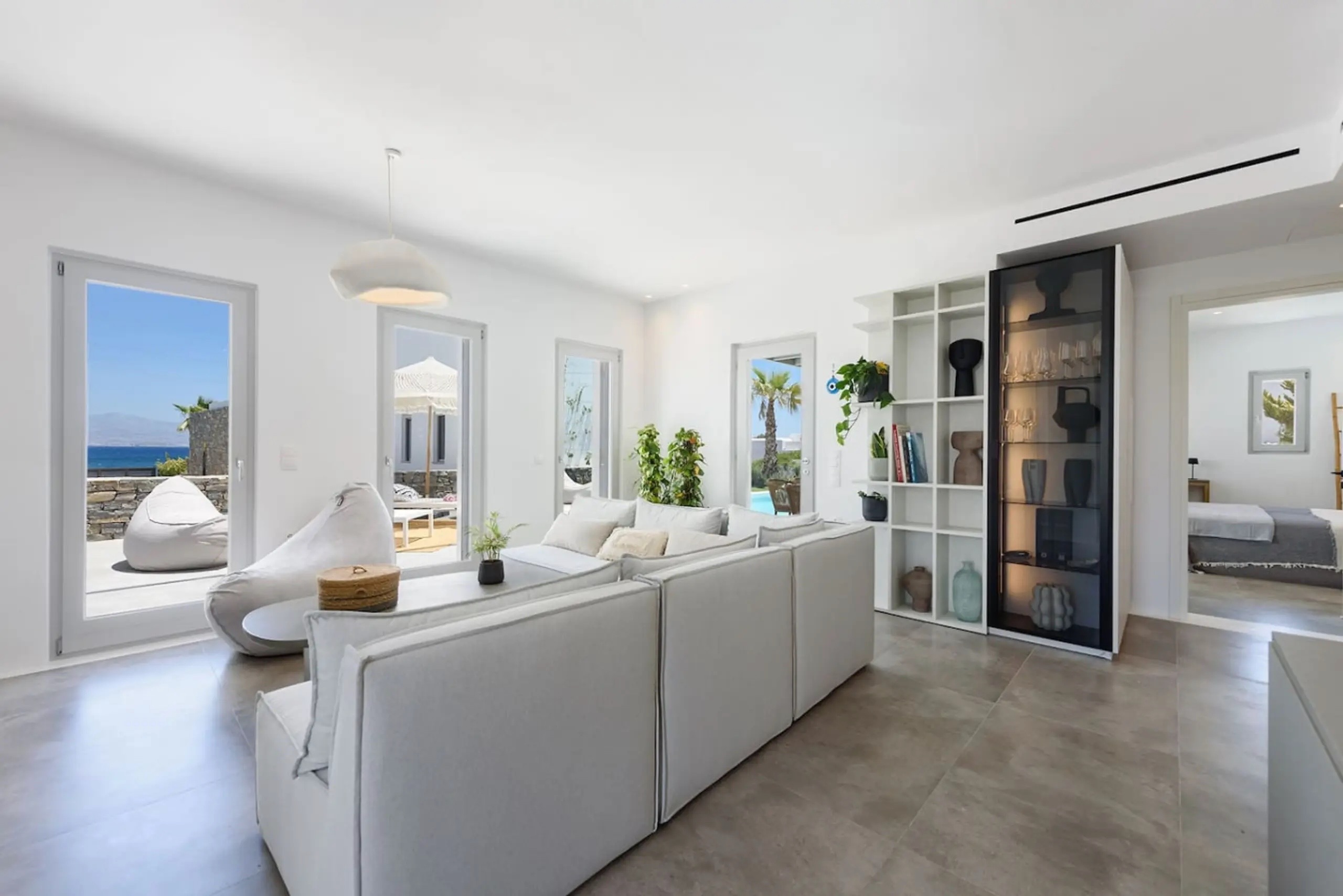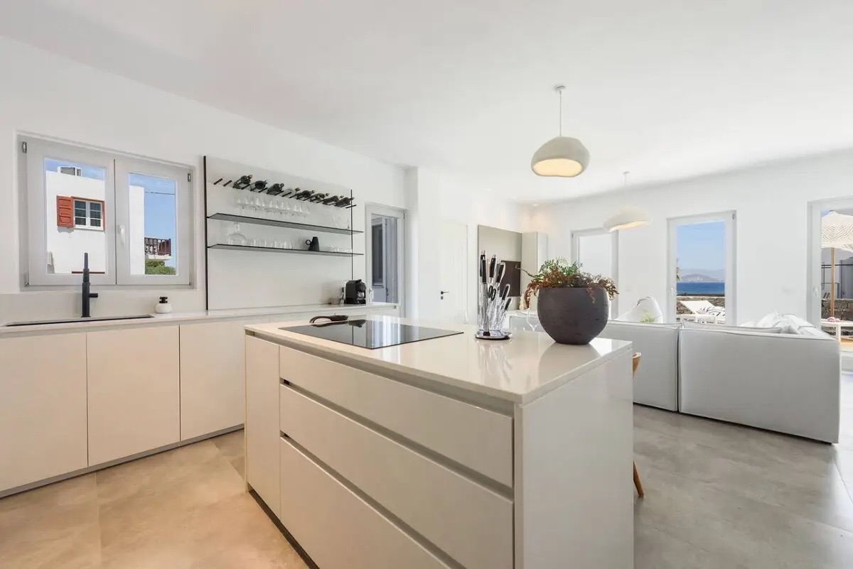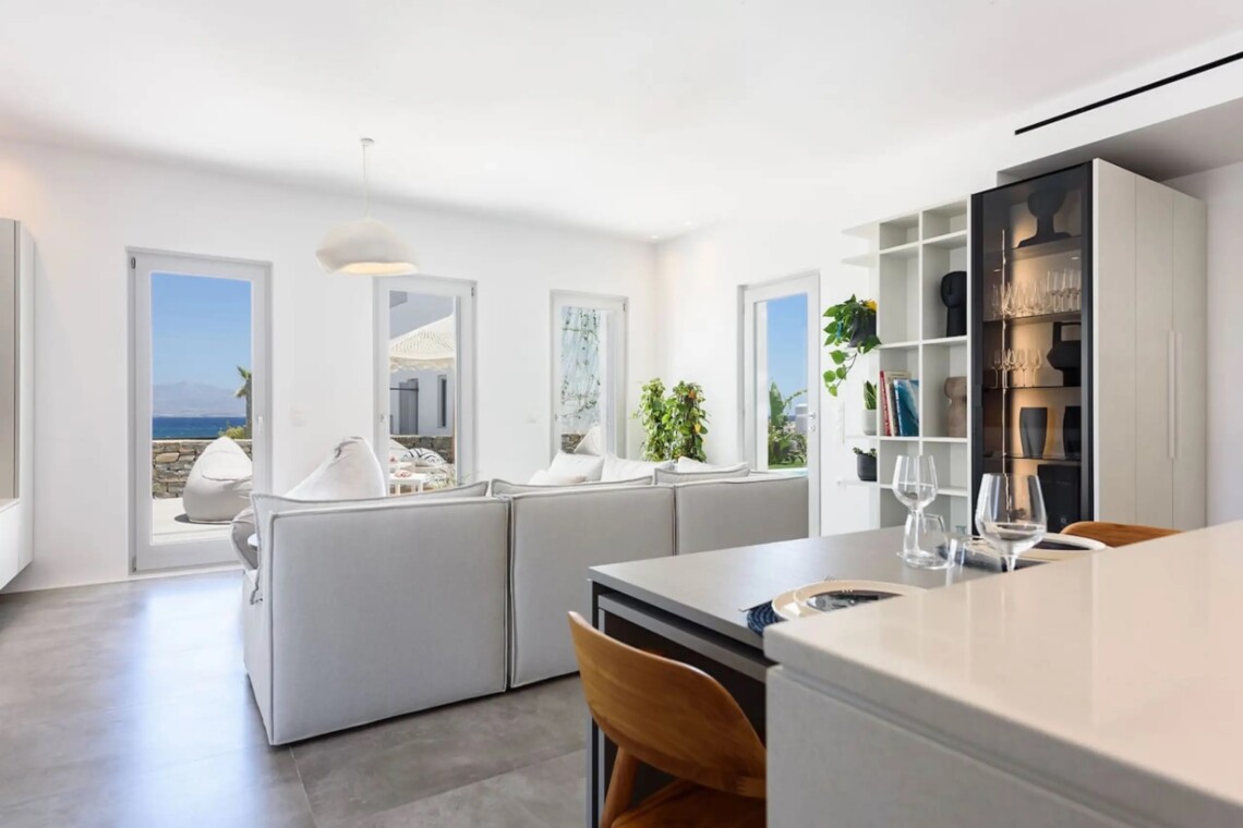 Villa Aqua is a stunning seaside retreat that seamlessly blends elegance, comfort, and modern luxury. Designed to accommodate up to nine guests, it offers breathtaking ocean views, spacious interiors, and refined amenities that ensure a truly relaxing stay. The villa’s open-plan layout creates an airy and inviting atmosphere, with large windows that fill the space with natural light and frame the shimmering Aegean Sea beyond. Guests can enjoy serene moments indoors or step out onto the expansive terraces to take in the mesmerizing coastal scenery.