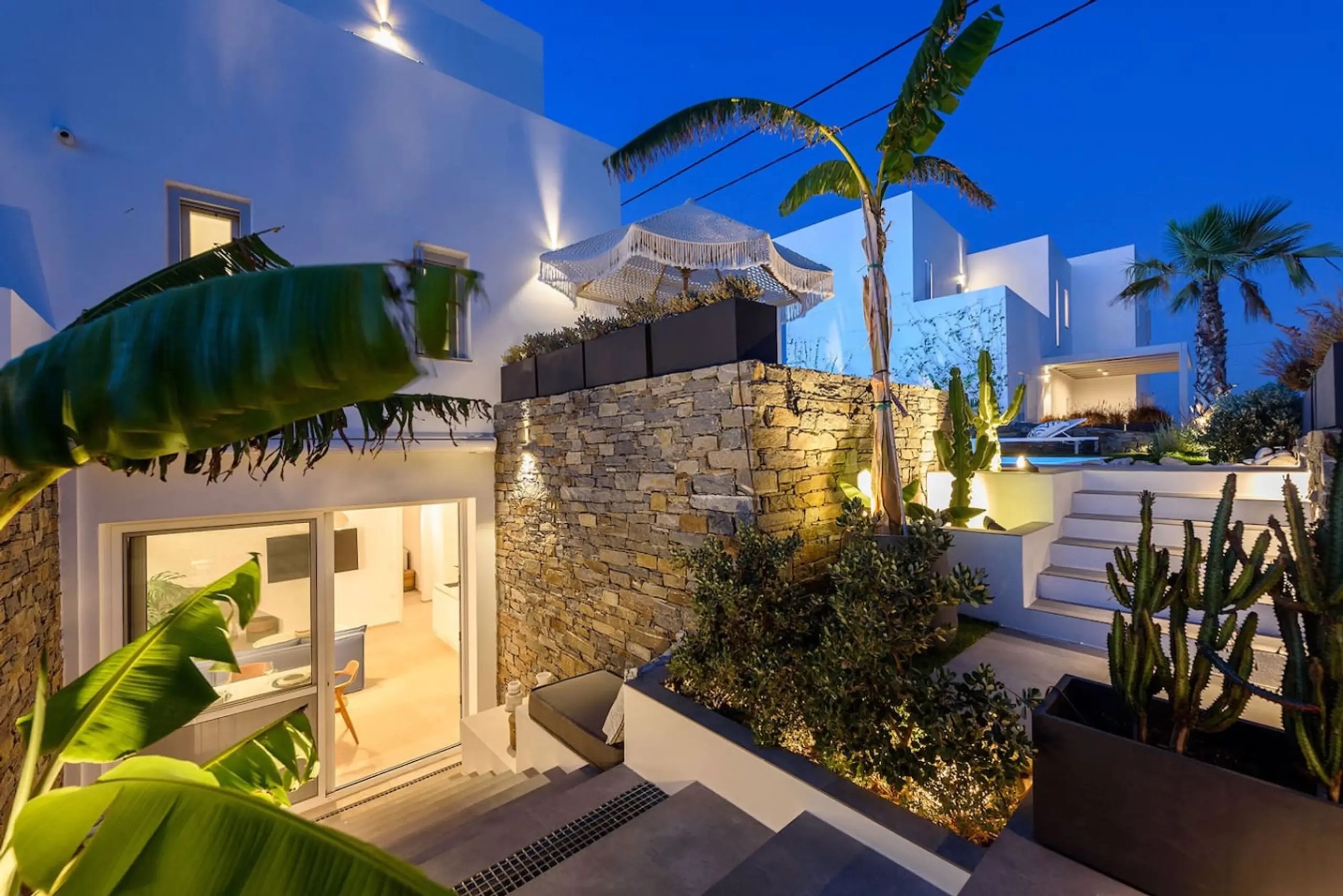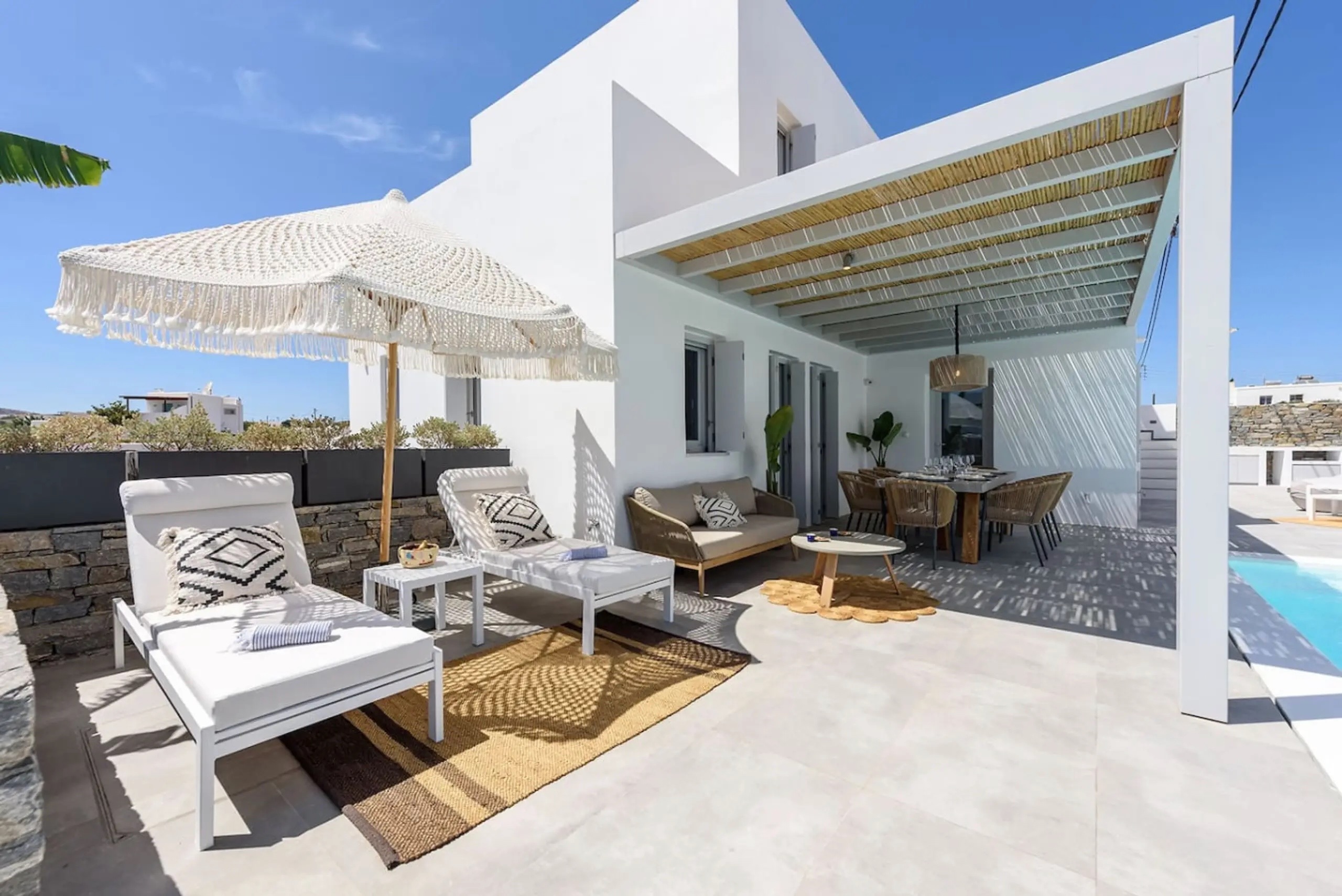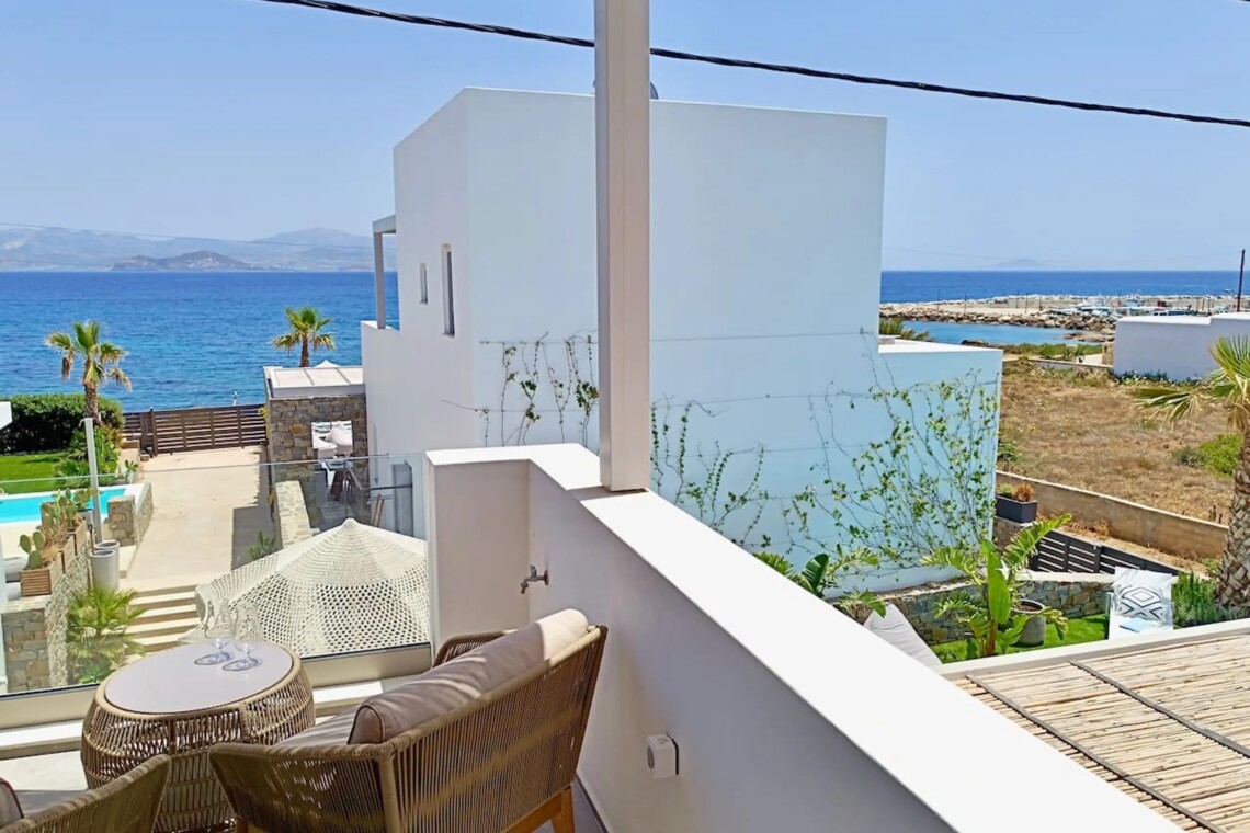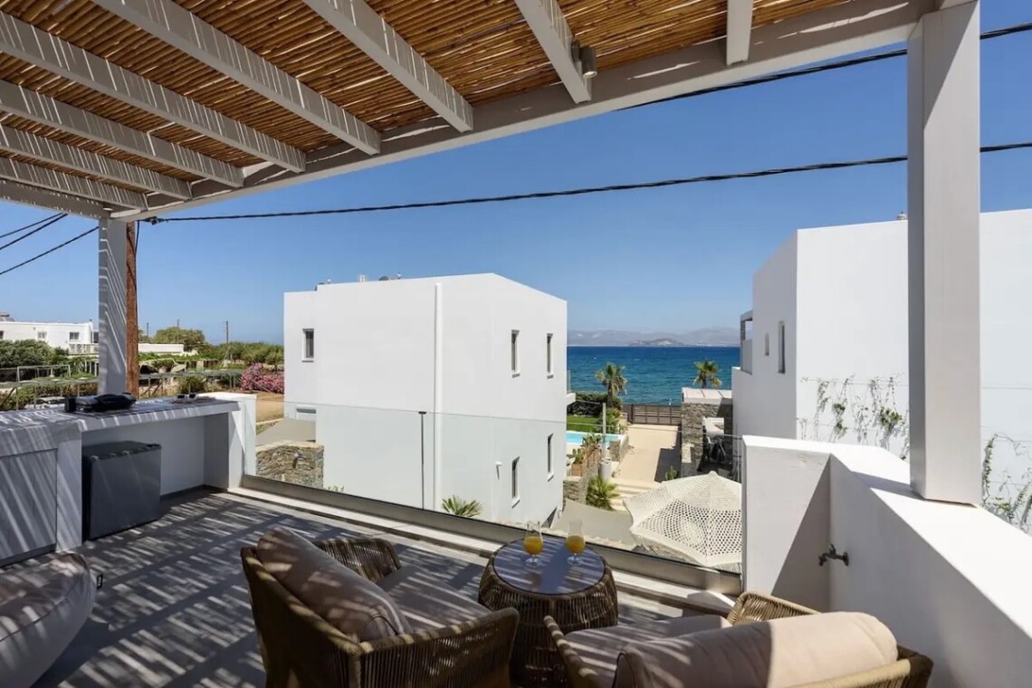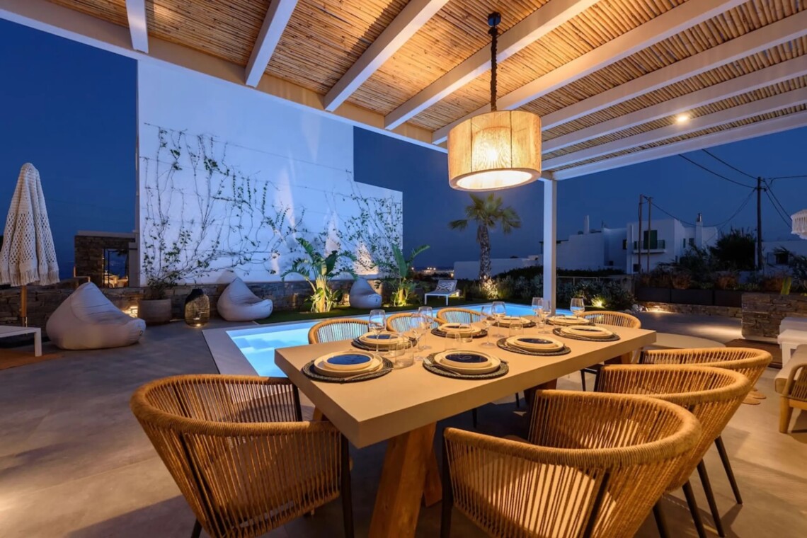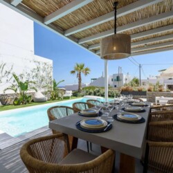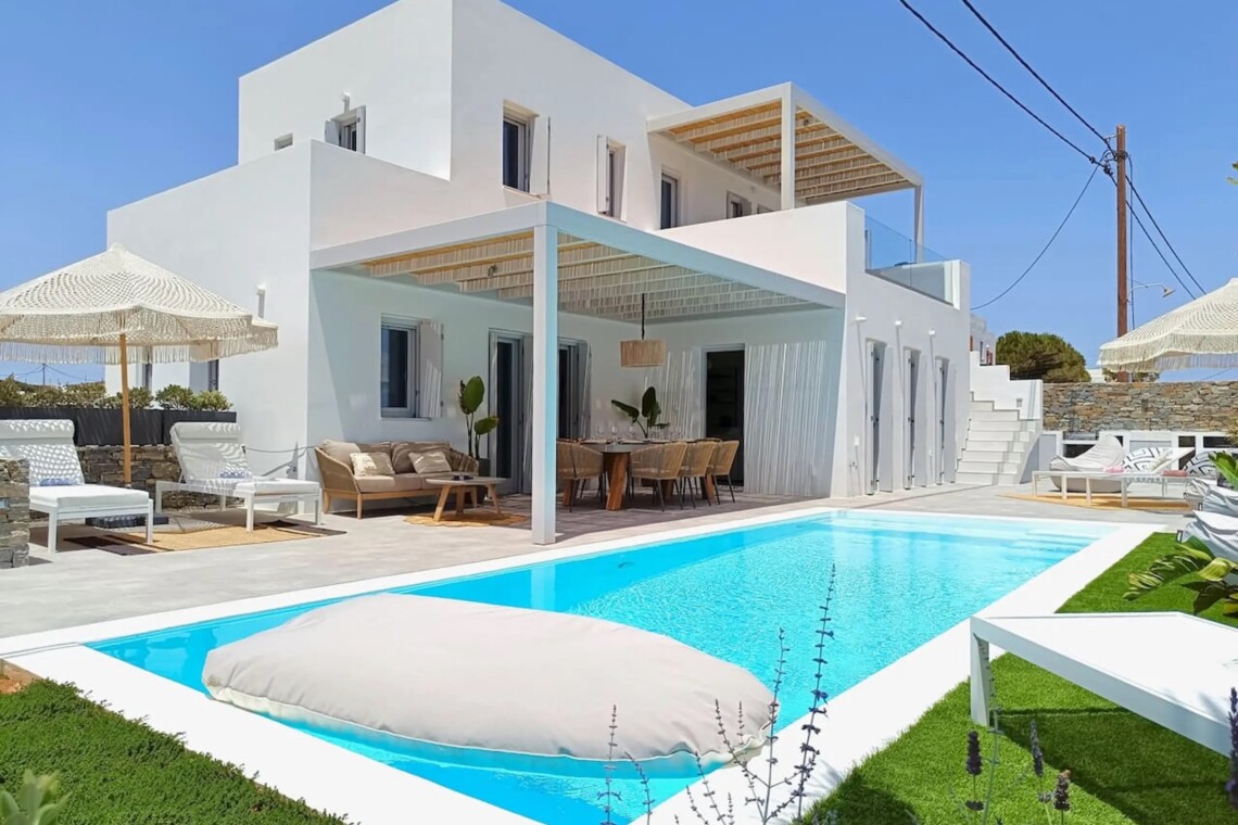 Villa Aqua is a stunning seaside retreat that seamlessly blends elegance, comfort, and modern luxury. Designed to accommodate up to nine guests, it offers breathtaking ocean views, spacious interiors, and refined amenities that ensure a truly relaxing stay. The villa’s open-plan layout creates an airy and inviting atmosphere, with large windows that fill the space with natural light and frame the shimmering Aegean Sea beyond. Guests can enjoy serene moments indoors or step out onto the expansive terraces to take in the mesmerizing coastal scenery.