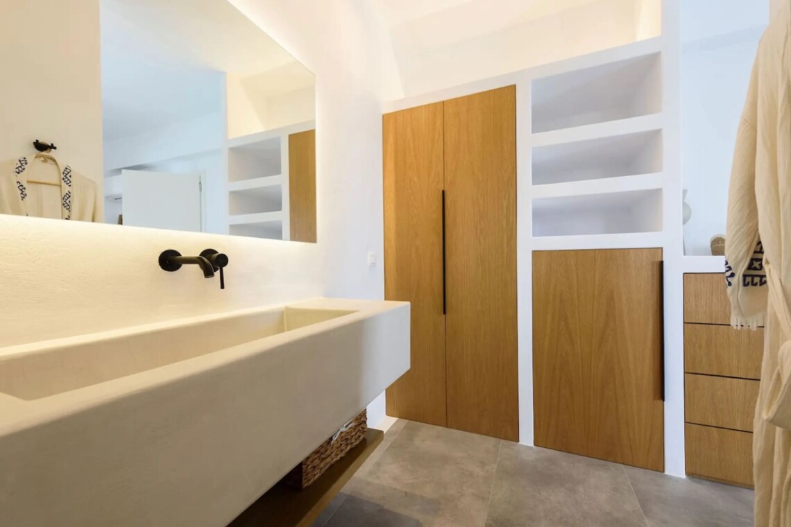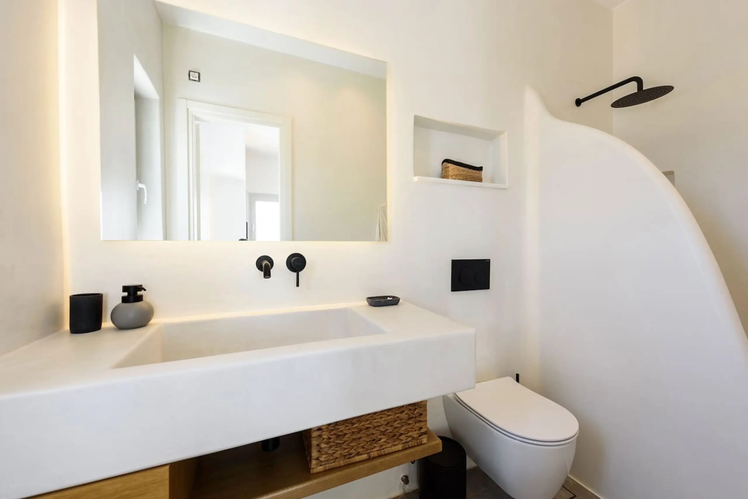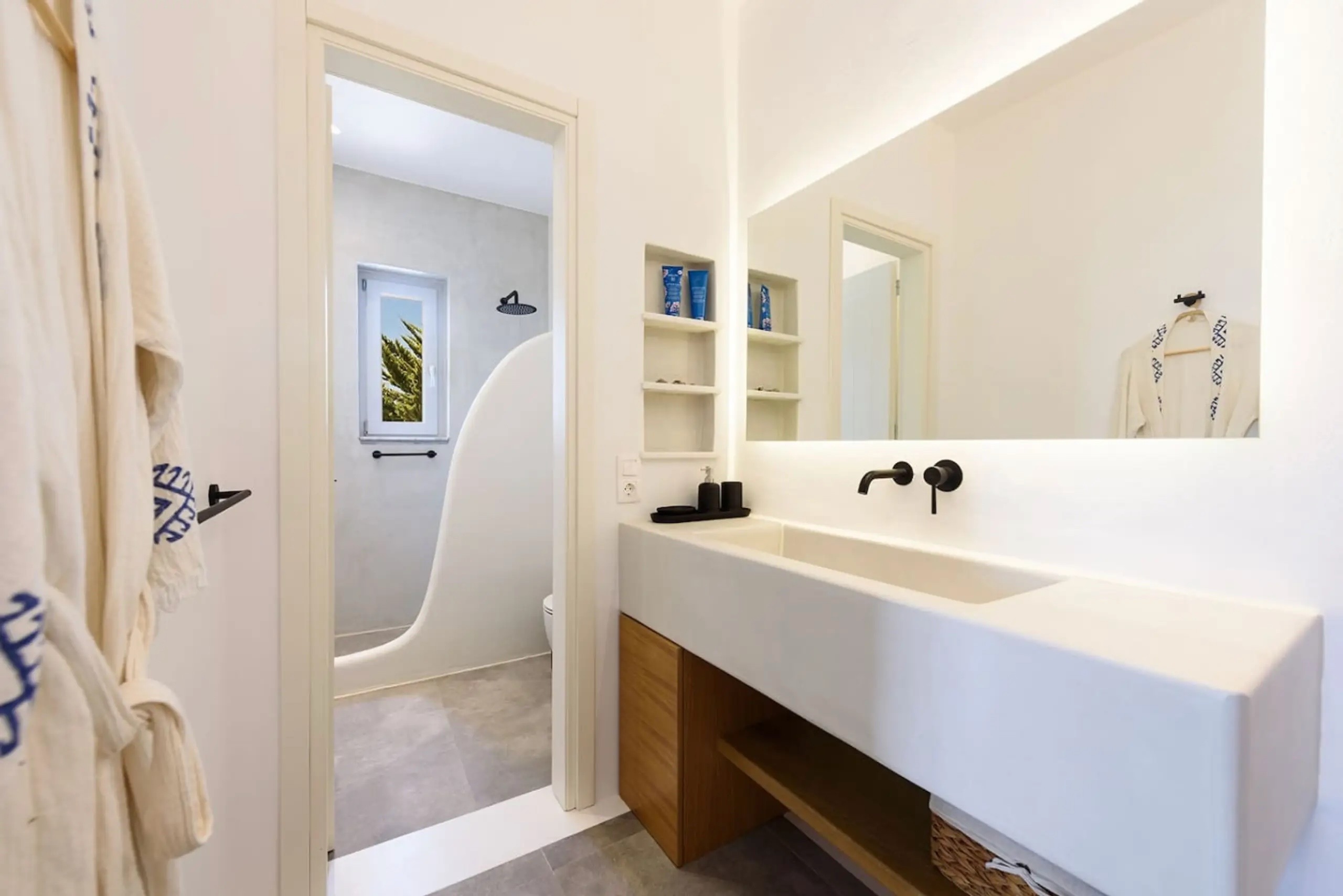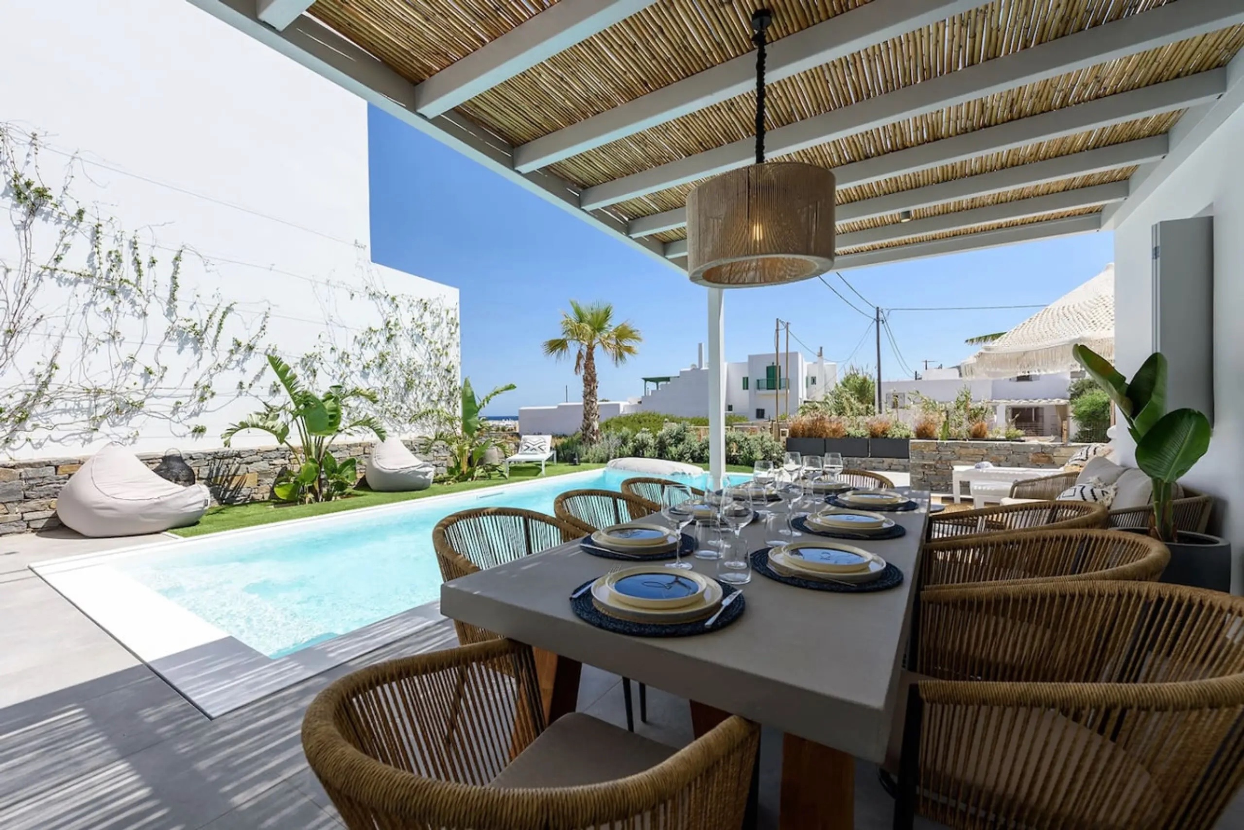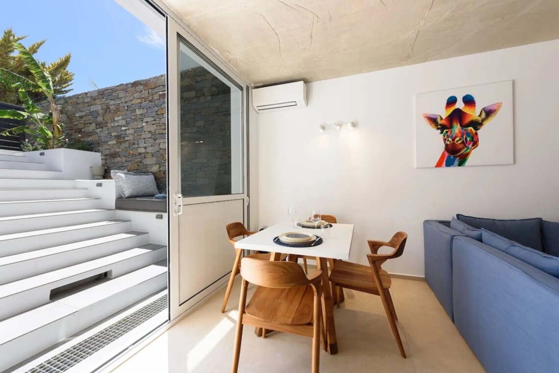 Villa Aqua is a stunning seaside retreat that seamlessly blends elegance, comfort, and modern luxury. Designed to accommodate up to nine guests, it offers breathtaking ocean views, spacious interiors, and refined amenities that ensure a truly relaxing stay. The villa’s open-plan layout creates an airy and inviting atmosphere, with large windows that fill the space with natural light and frame the shimmering Aegean Sea beyond. Guests can enjoy serene moments indoors or step out onto the expansive terraces to take in the mesmerizing coastal scenery.