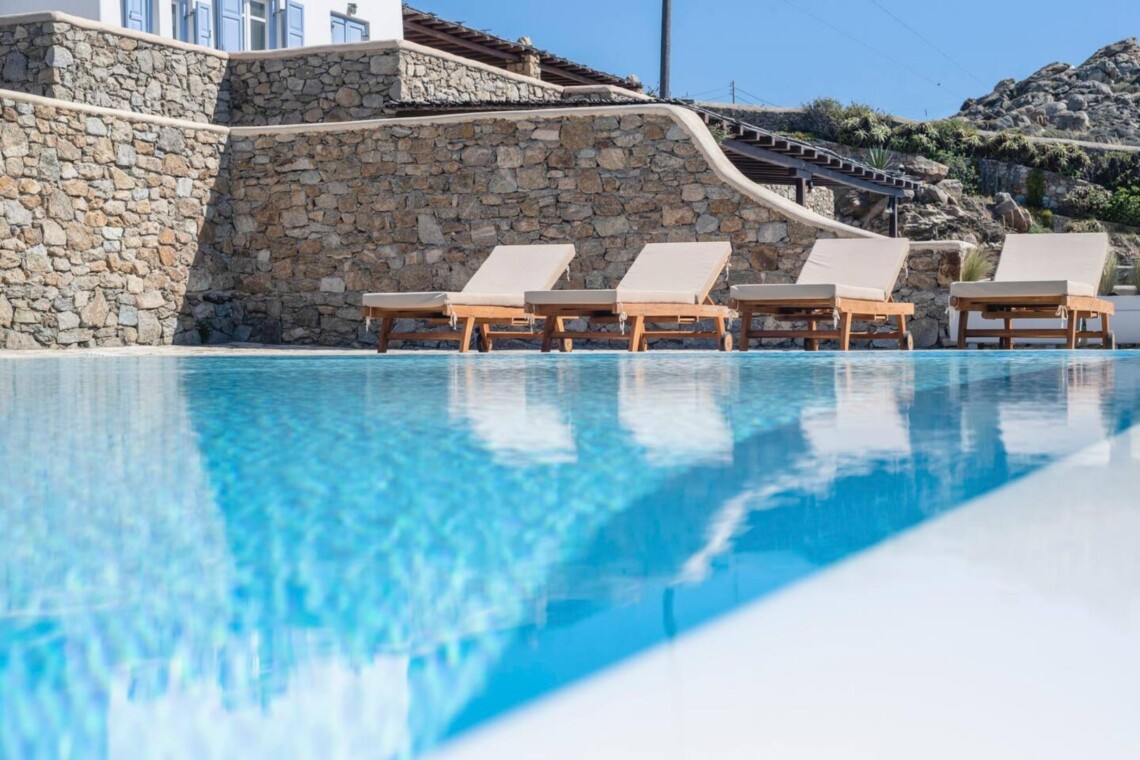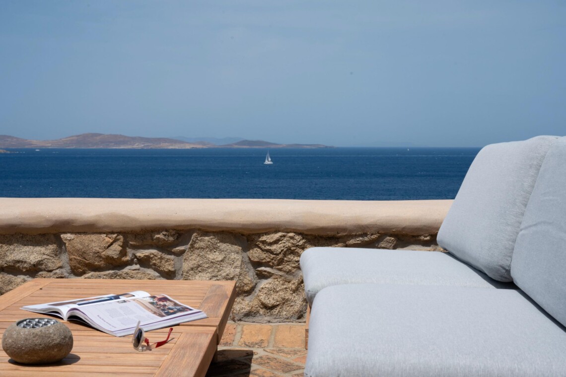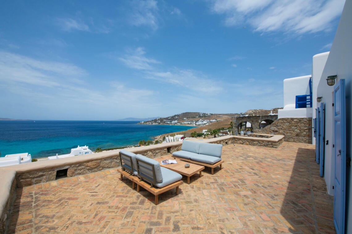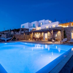 Blue Sky Villa is a refined luxury retreat set in the prestigious area of Aleomandra, offering uninterrupted views of Delos, Rhenia, and unforgettable sunsets over the Aegean Sea. Its privileged position creates a serene atmosphere while showcasing some of Mykonos’ most iconic panoramas.