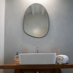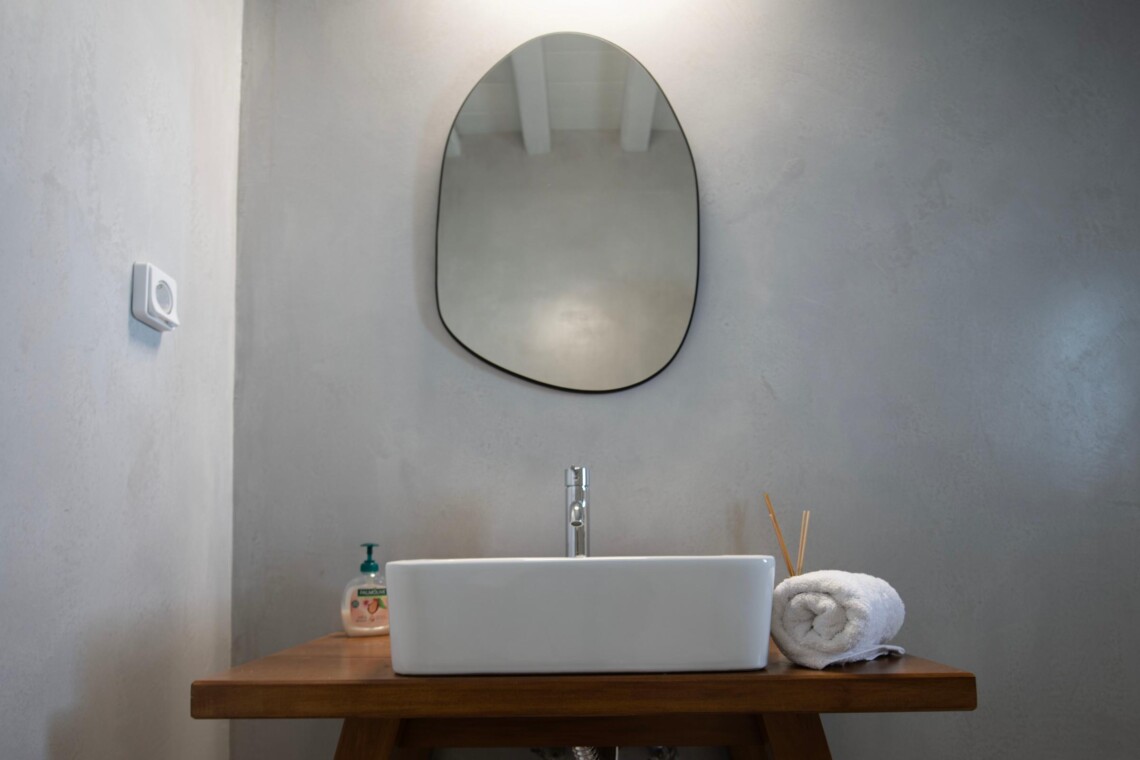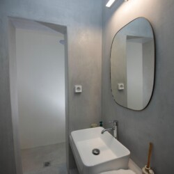 Spread across three levels, the villa accommodates up to eight guests in four elegant double bedrooms, all with en-suite bathrooms. The upper level hosts a sea-view bedroom, the entrance level features a stylish living area, open-plan kitchen, guest WC, and another en-suite bedroom, while the pool level offers two additional en-suite bedrooms and a relaxed secondary lounge.