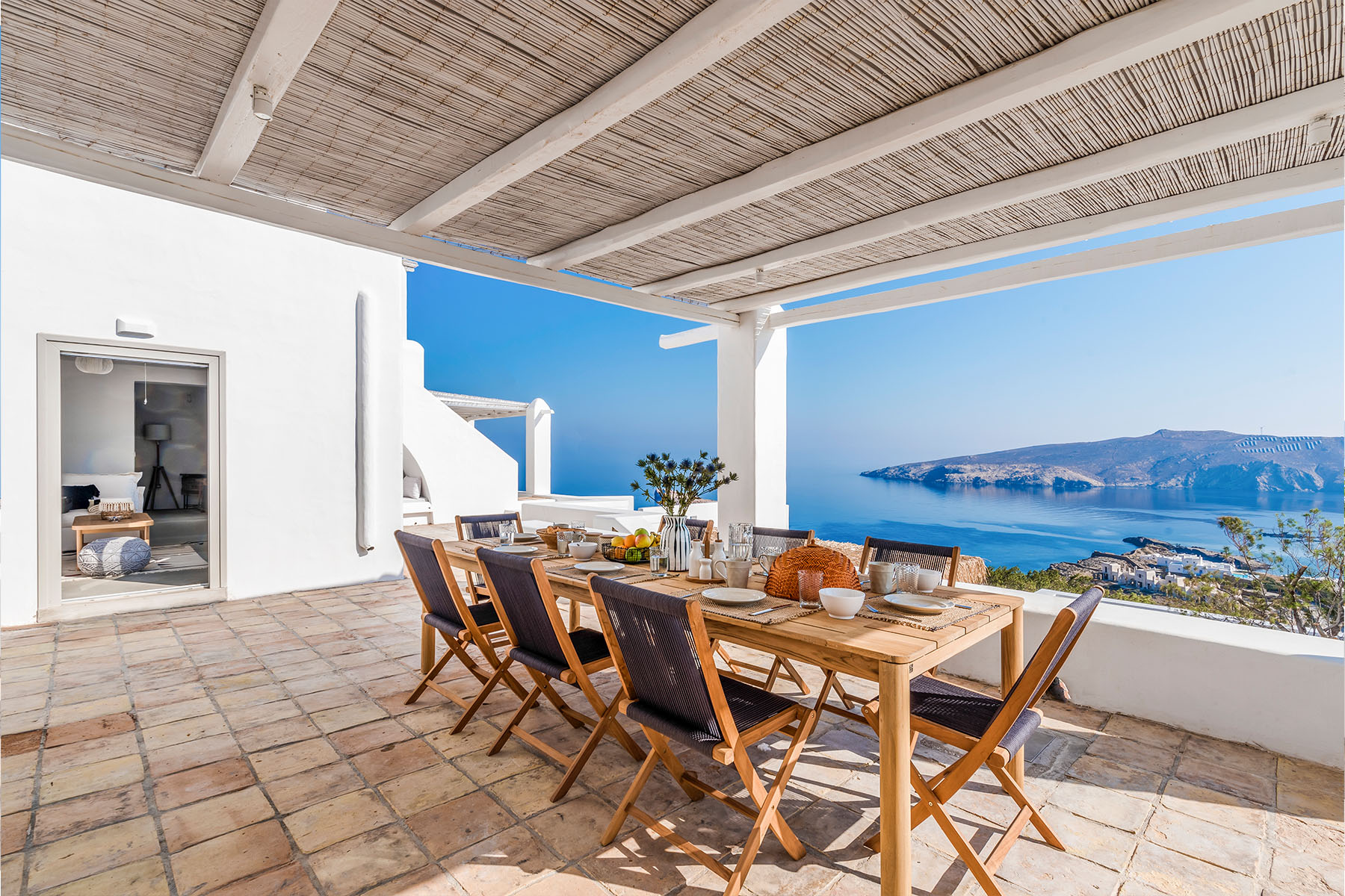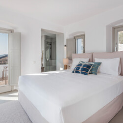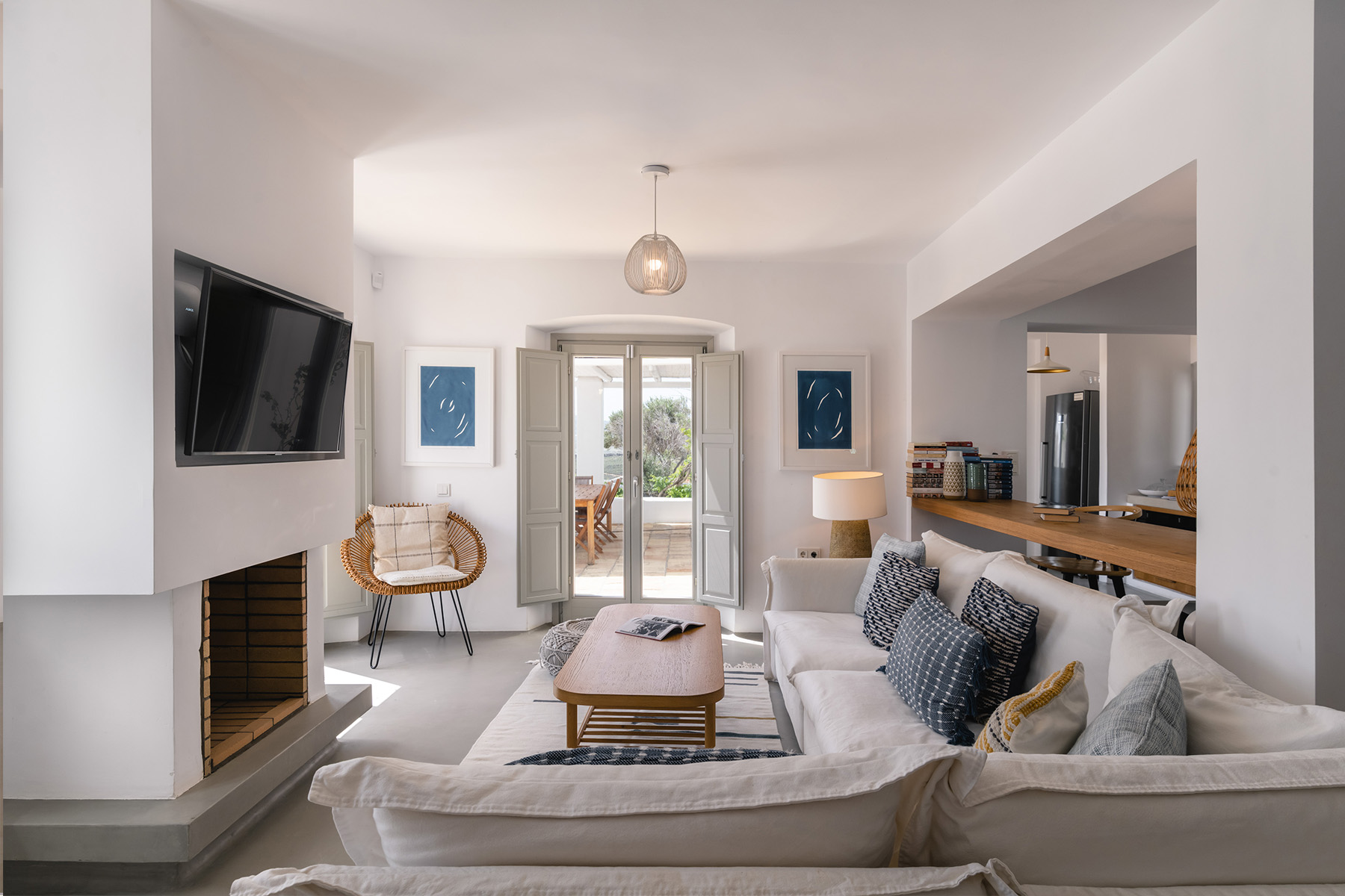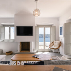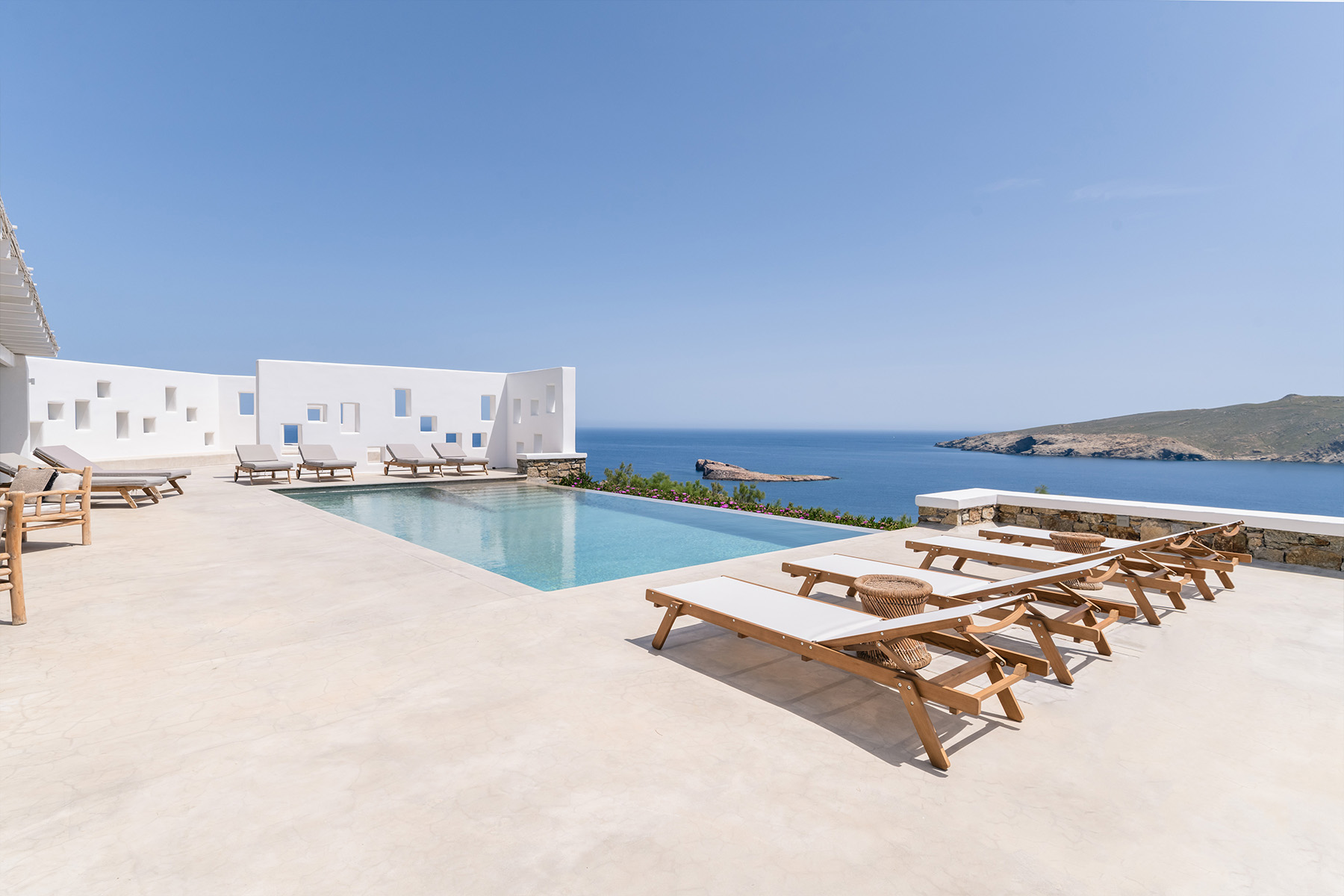 Perched above Agios Sostis beach, Villa Boho offers privacy and stunning views of Panormos bay. Just a short walk away, this quiet, undeveloped beach provides a serene escape. The villa features seven en-suite bedrooms, a renovated interior, and a private pool surrounded by landscaped gardens.