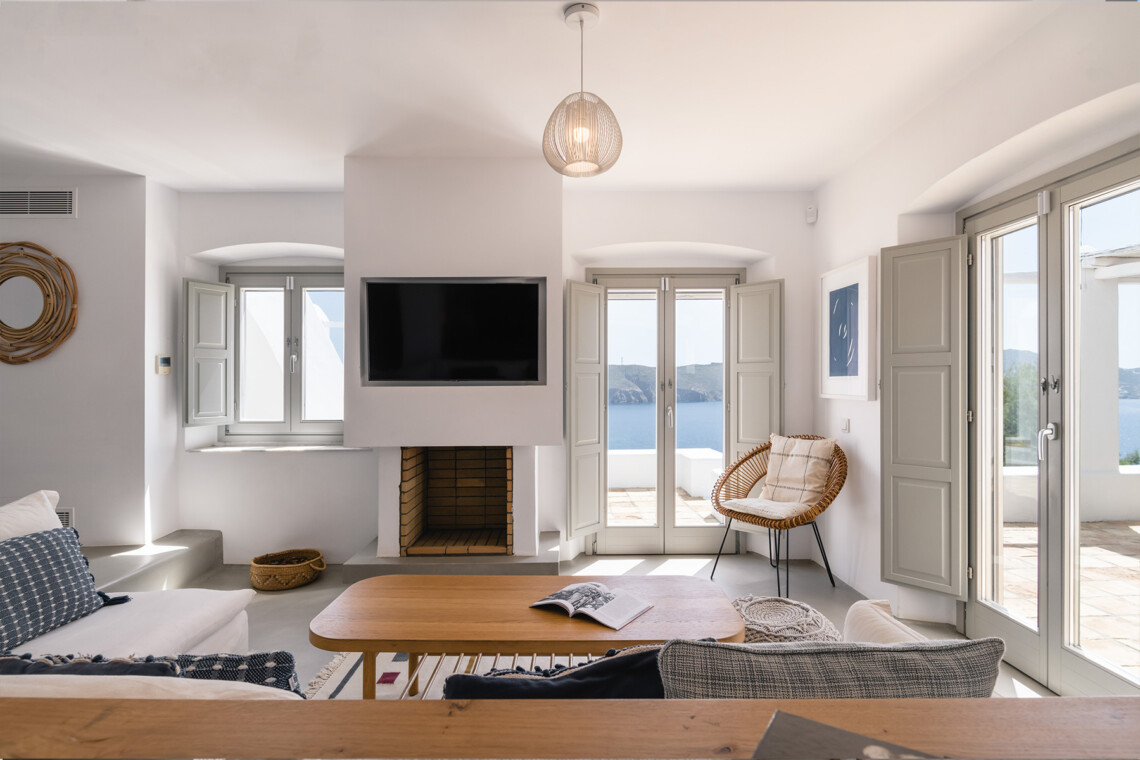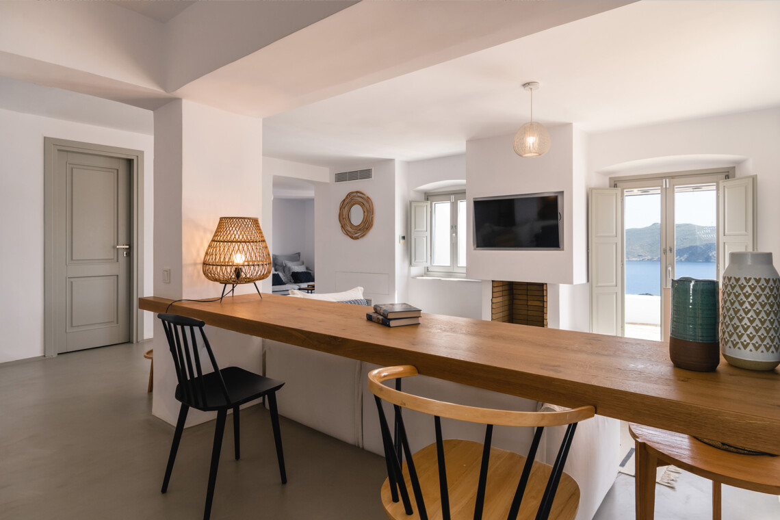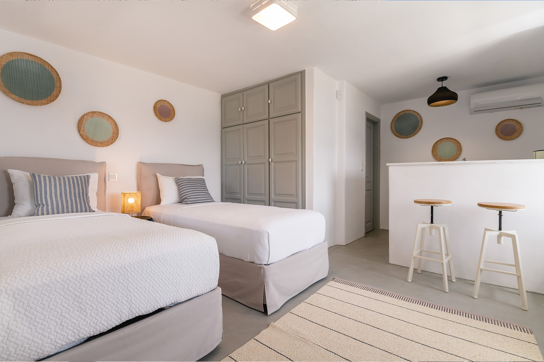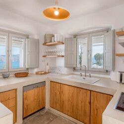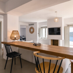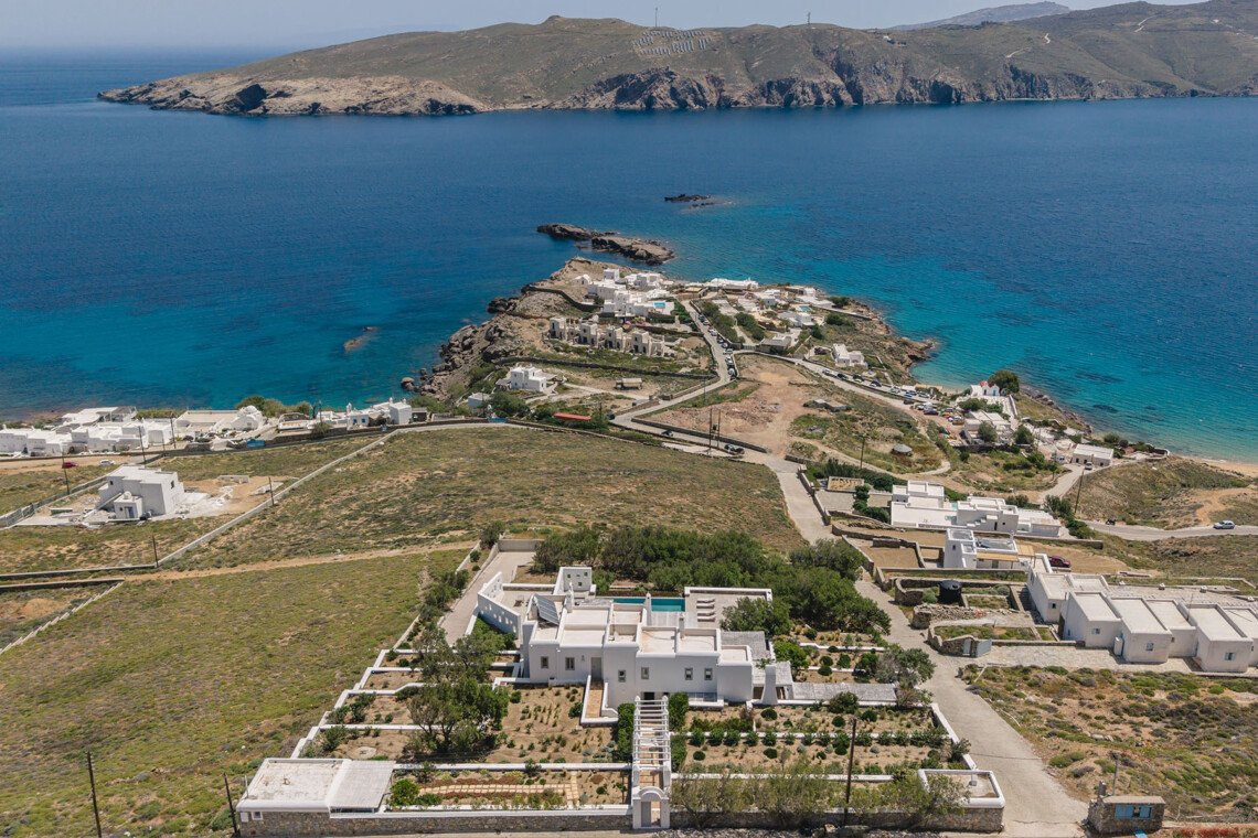 Villa Boho is ideally located on a hillside overlooking Agios Sostis beach. With panoramic views of Panormos bay, guests can enjoy the beauty of the natural surroundings. The beach itself is a peaceful haven, free from crowded clubs and upscale restaurants. Visitors can relish the tranquility of unspoiled nature and indulge in delightful meals at the famous Kiki’s Tavern nearby.