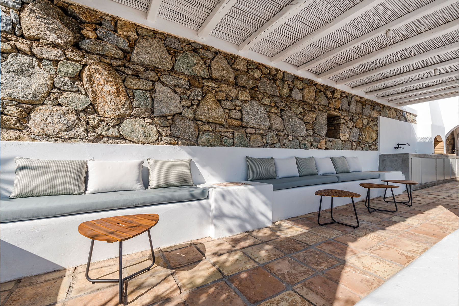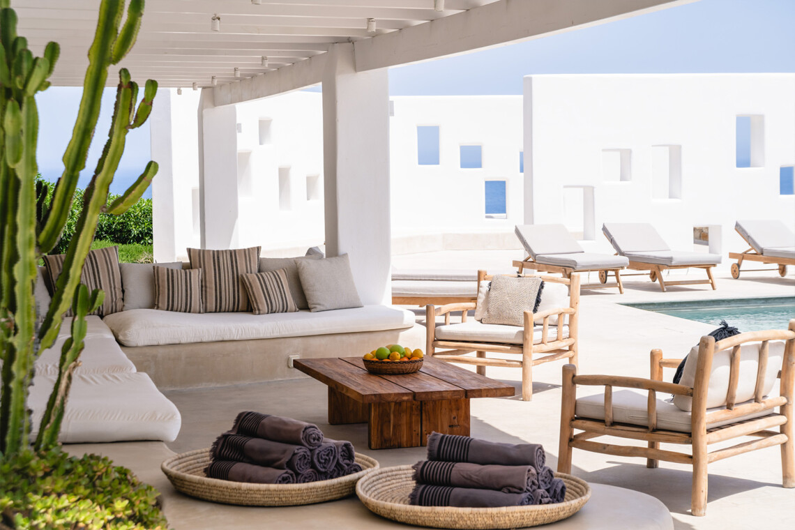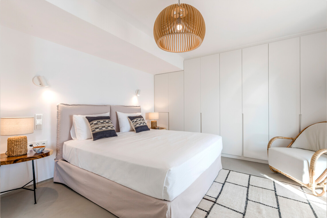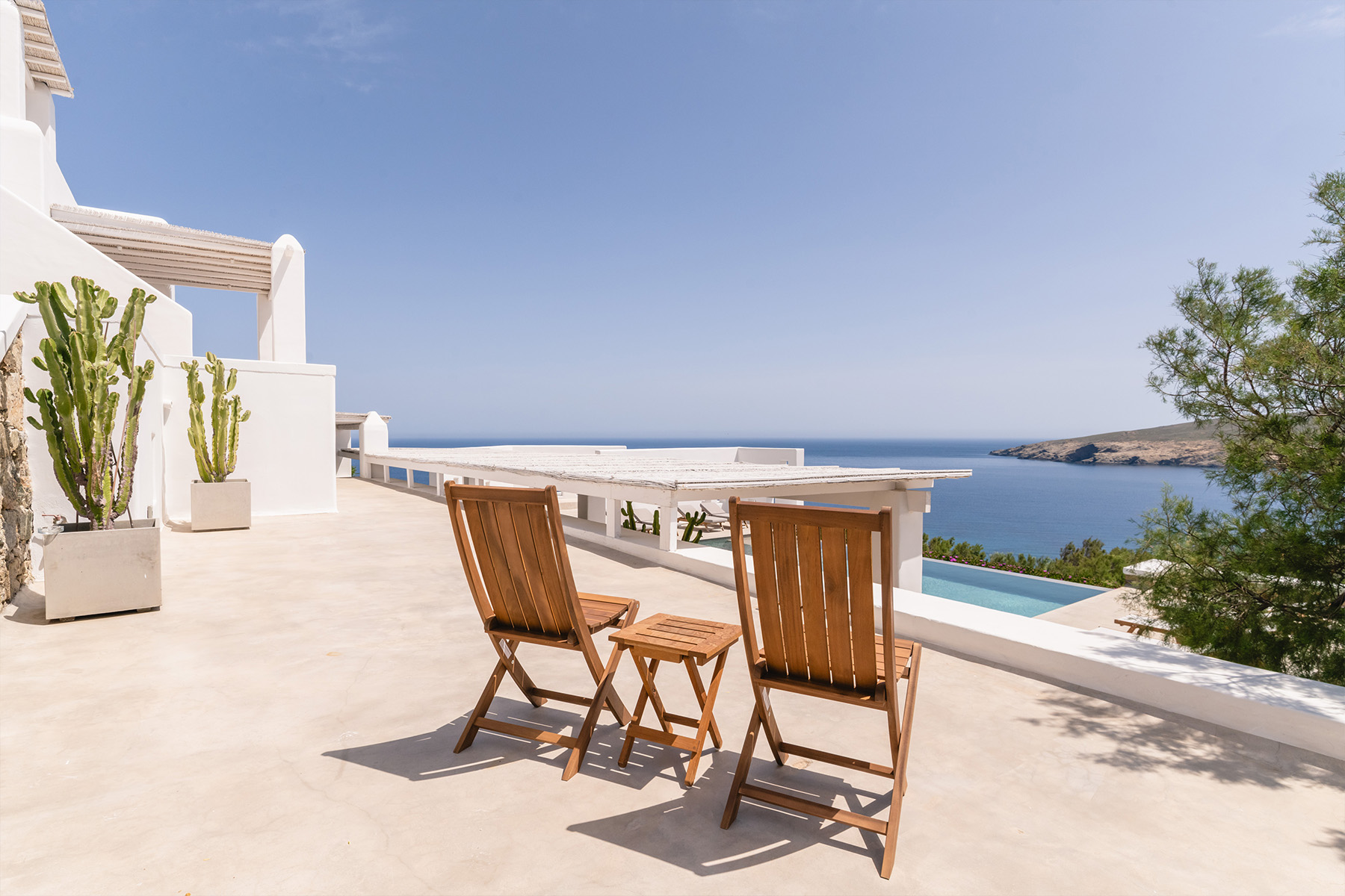 Villa Boho is ideally located on a hillside overlooking Agios Sostis beach. With panoramic views of Panormos bay, guests can enjoy the beauty of the natural surroundings. The beach itself is a peaceful haven, free from crowded clubs and upscale restaurants. Visitors can relish the tranquility of unspoiled nature and indulge in delightful meals at the famous Kiki’s Tavern nearby.