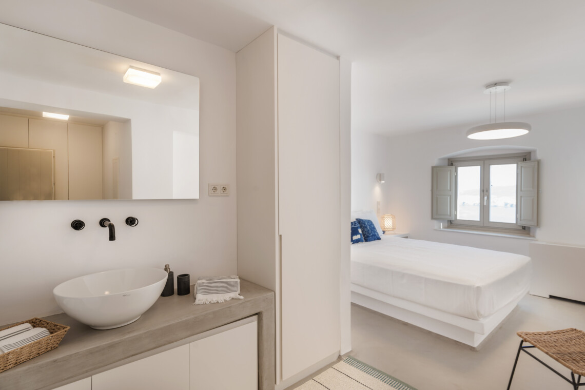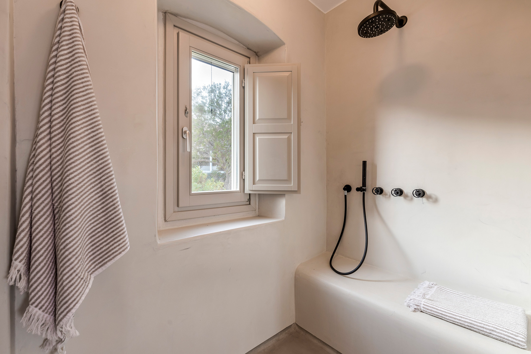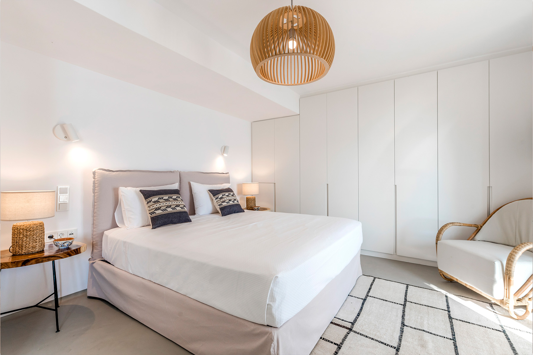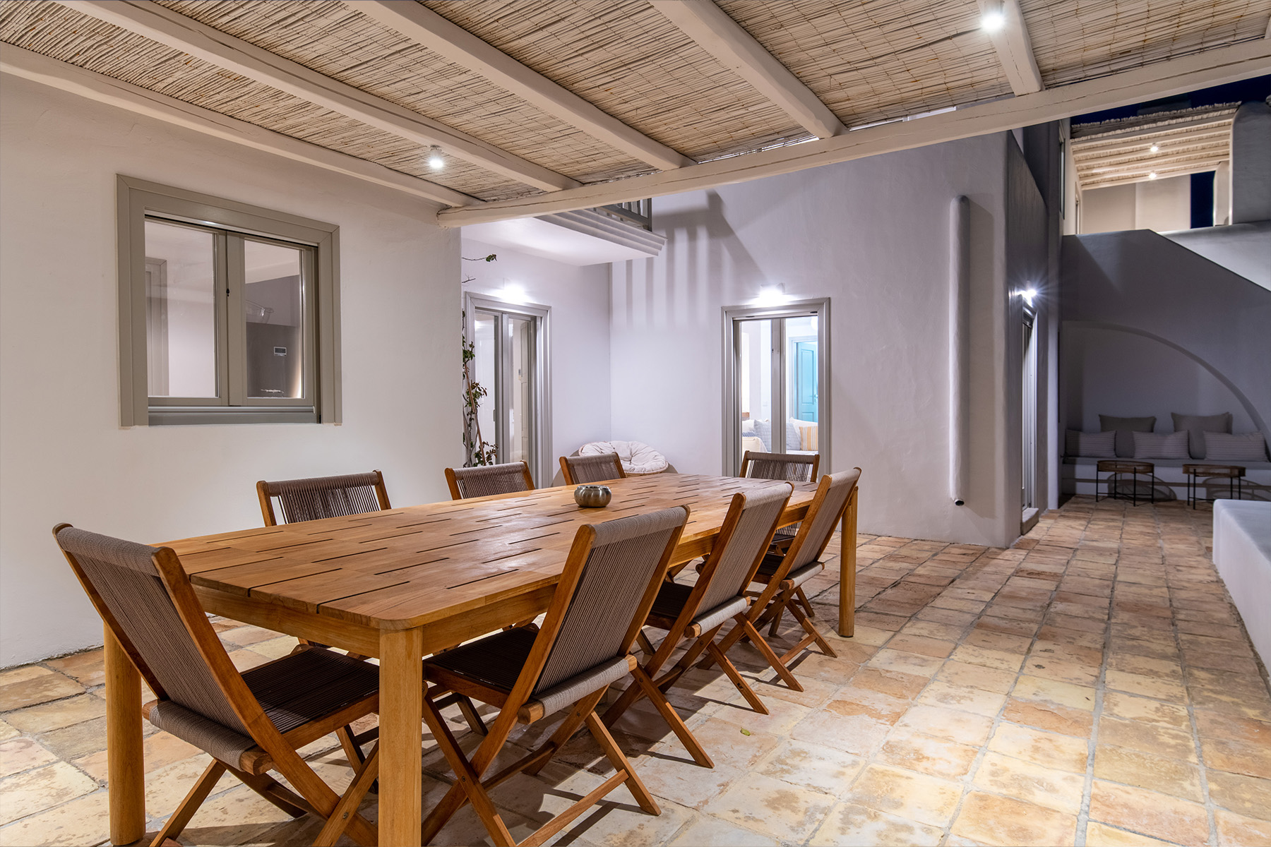 Villa Boho is ideally located on a hillside overlooking Agios Sostis beach. With panoramic views of Panormos bay, guests can enjoy the beauty of the natural surroundings. The beach itself is a peaceful haven, free from crowded clubs and upscale restaurants. Visitors can relish the tranquility of unspoiled nature and indulge in delightful meals at the famous Kiki’s Tavern nearby.