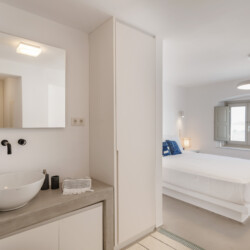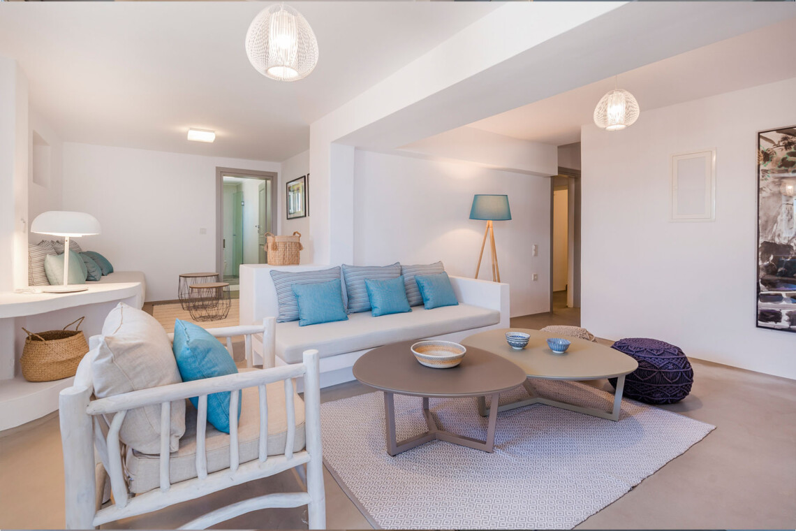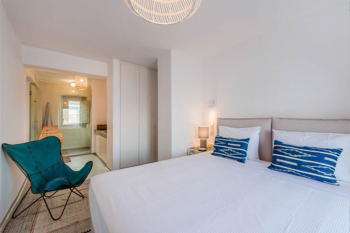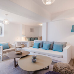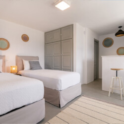 Renovated in 2019, Villa Boho has luxurious accommodations across three levels. With seven en-suite bedrooms, it can accommodate up to 14 guests. The villa’s interior showcases a seamless blend of modern comfort and timeless charm. Outside, a private pool surrounded by well-maintained gardens invites guests to relax and enjoy the sun. Villa Bohemian Blue is the epitome of refined living, offering a haven of luxury and tranquility for an unforgettable stay in Mykonos.