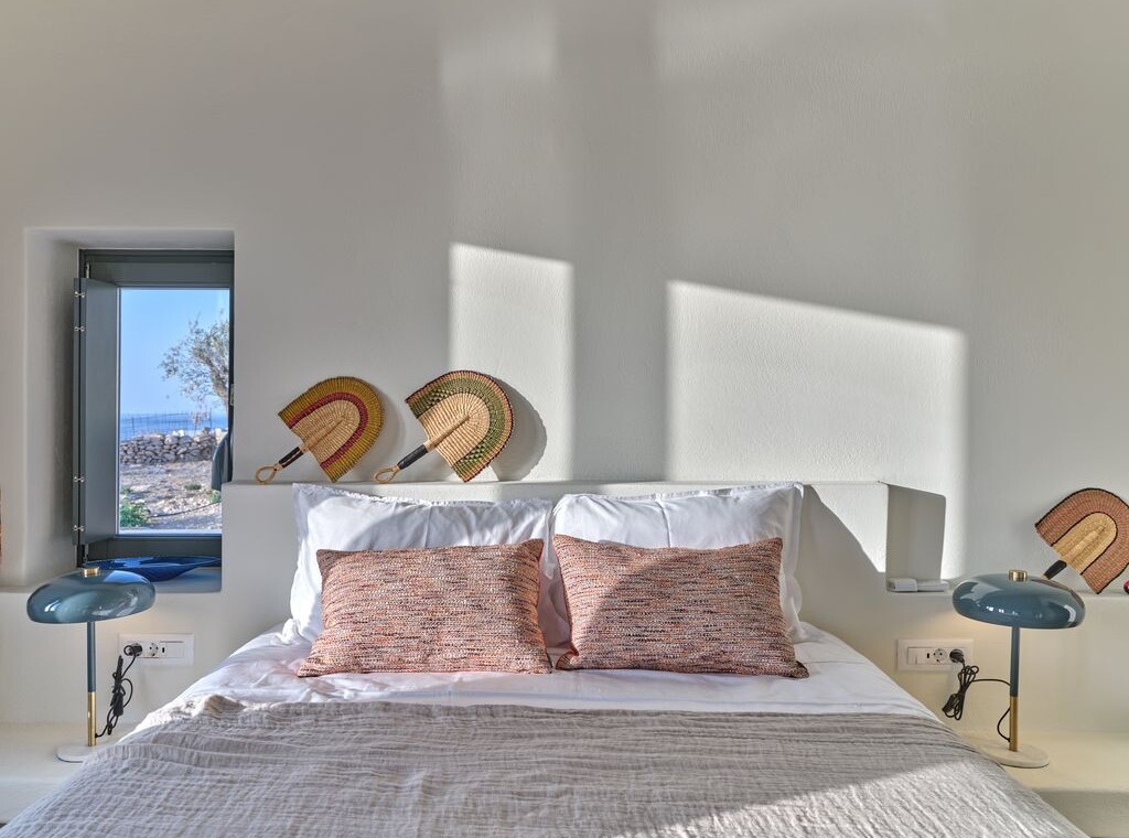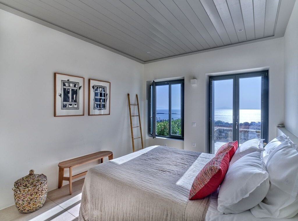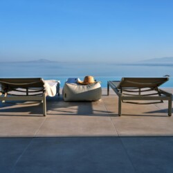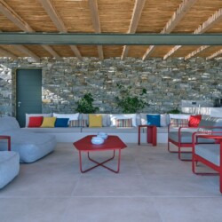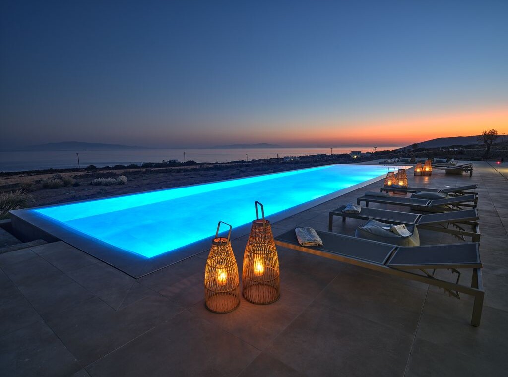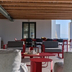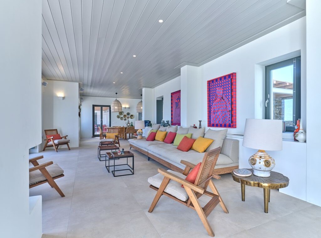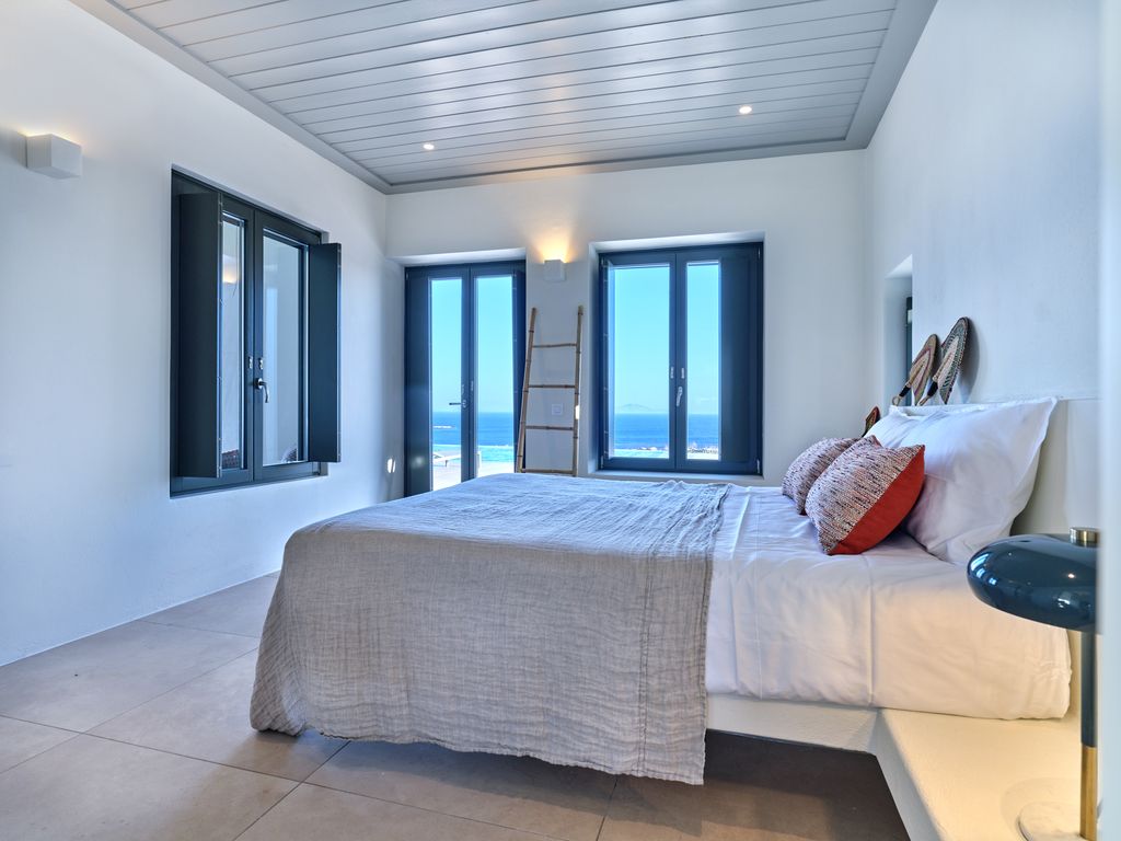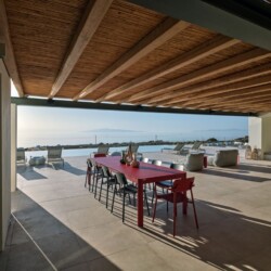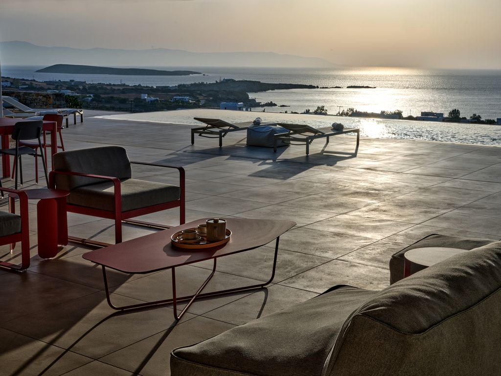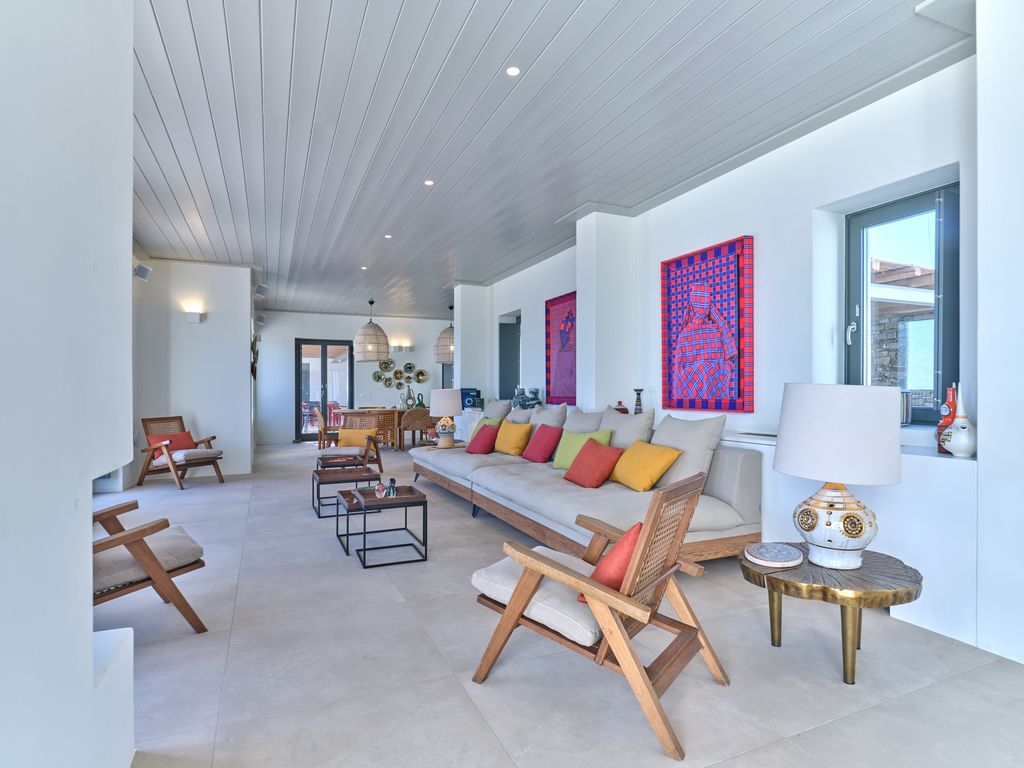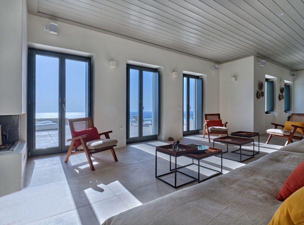 The outdoor area is a postcard-perfect sanctuary, featuring an infinity pool that seems to merge with the sea, inviting guests to swim, unwind, or simply take in the horizon. Elegant shaded lounges, al fresco dining areas, and lush gardens surround the property, creating an intimate oasis of peace and privacy. Every detail, from the minimalist architecture to the harmonious landscaping, reflects a deep connection to the island’s tranquil spirit.