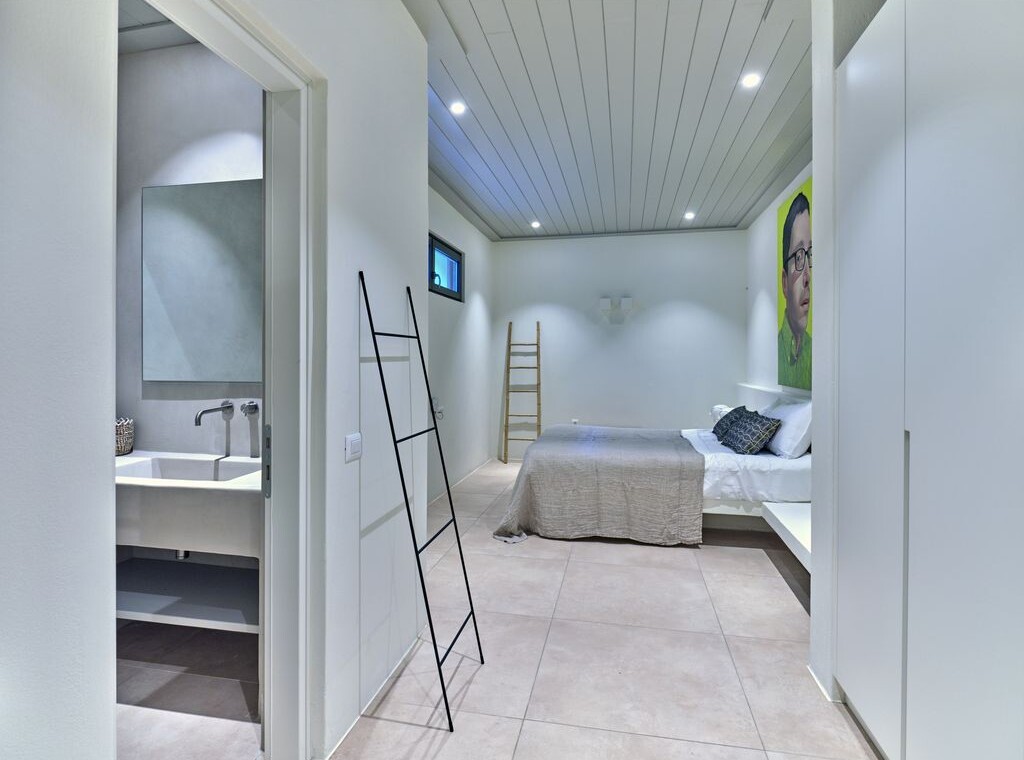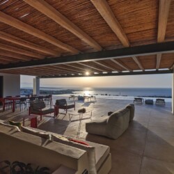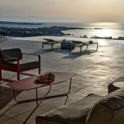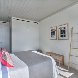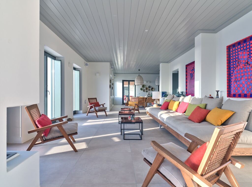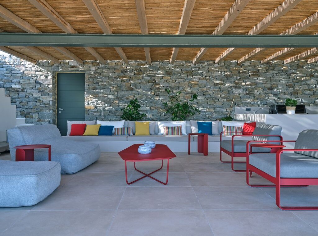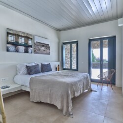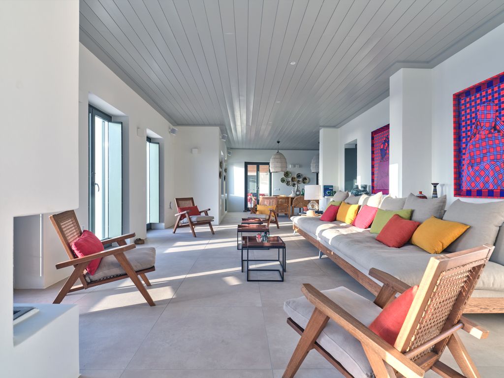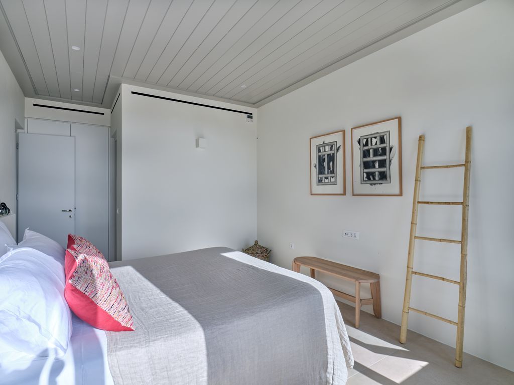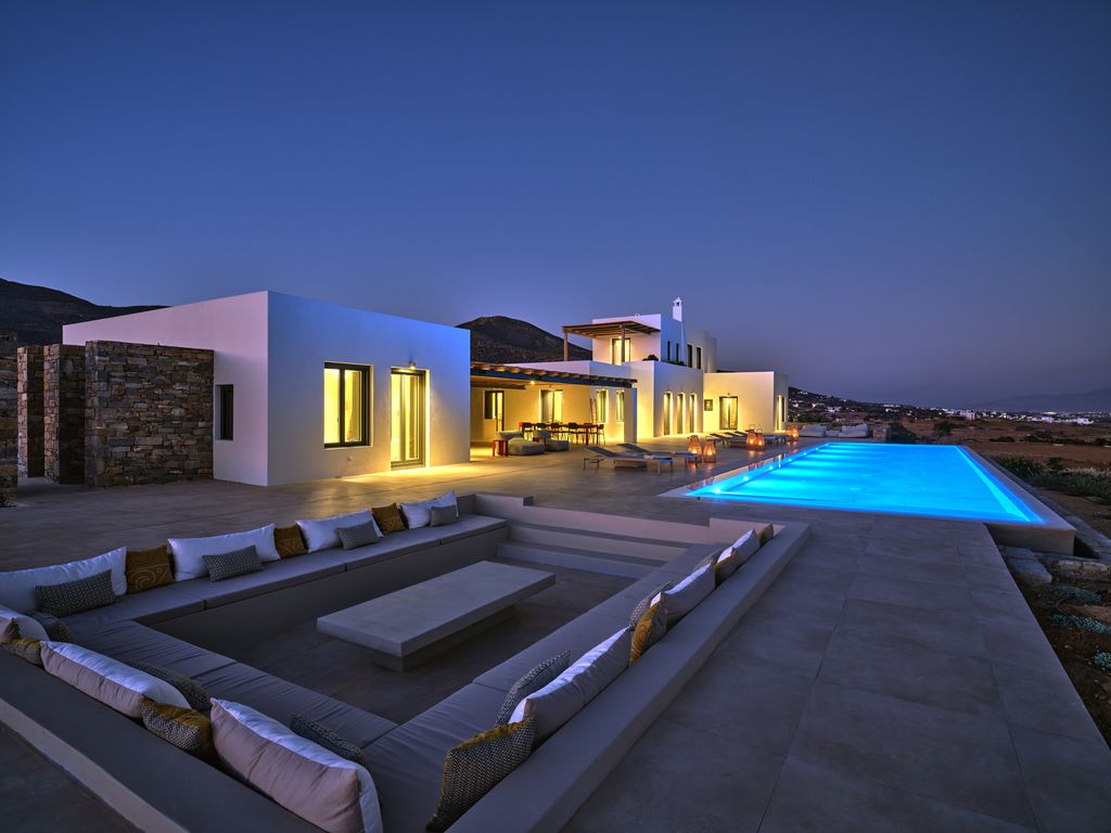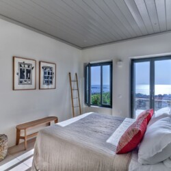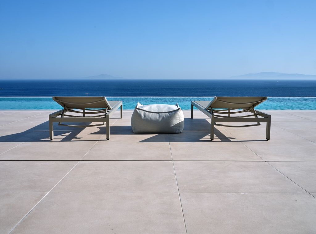 The outdoor area is a postcard-perfect sanctuary, featuring an infinity pool that seems to merge with the sea, inviting guests to swim, unwind, or simply take in the horizon. Elegant shaded lounges, al fresco dining areas, and lush gardens surround the property, creating an intimate oasis of peace and privacy. Every detail, from the minimalist architecture to the harmonious landscaping, reflects a deep connection to the island’s tranquil spirit.