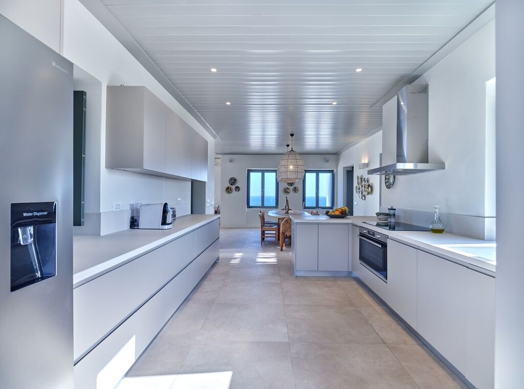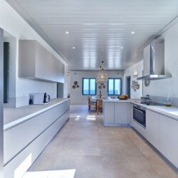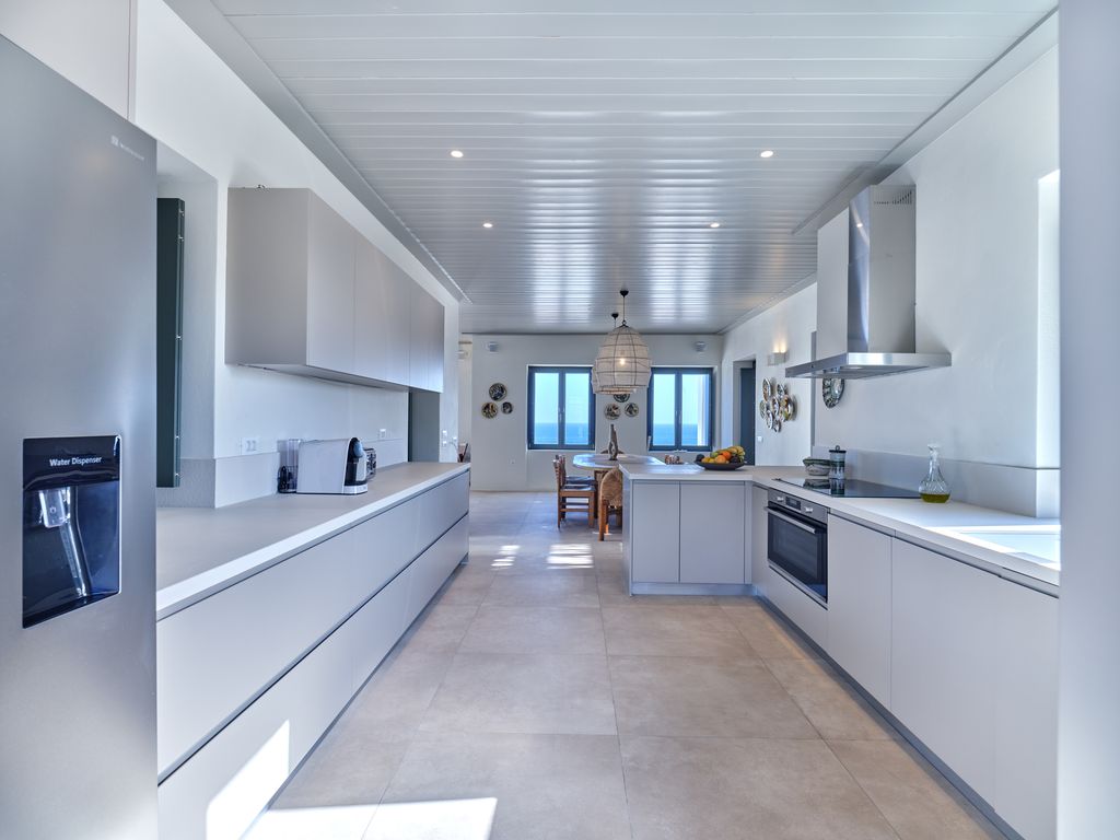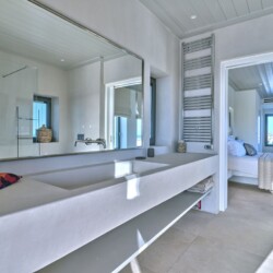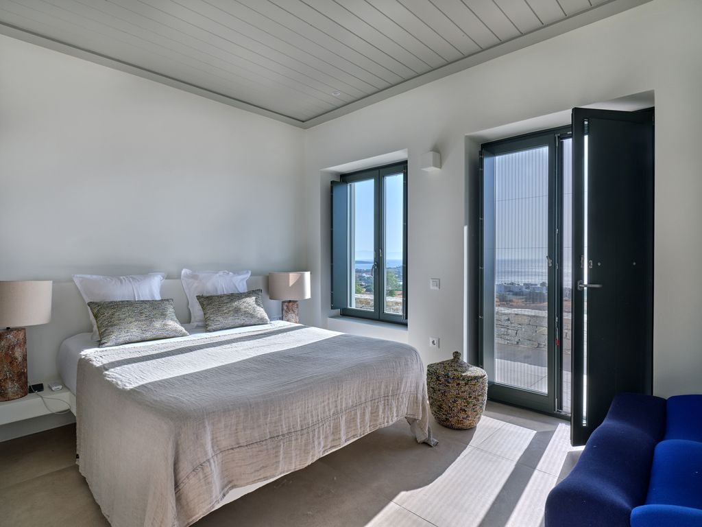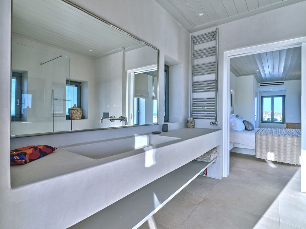 Inside, Villa Ines offers bright, open-plan living spaces adorned with high-end furnishings, neutral tones, and modern amenities for the ultimate comfort. The villa features six elegant suites, each with its own private bathroom and sea view, a fully equipped modern kitchen, and expansive living and dining areas ideal for social gatherings. Whether enjoying a sunset cocktail by the pool, a dinner under the stars, or a quiet morning by the sea, guests will find Villa Ines to be the perfect setting for an unforgettable Paros escape, where elegance and serenity come together effortlessly.