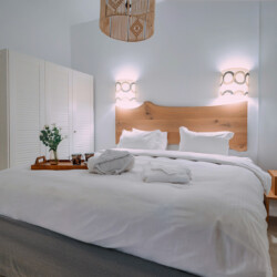 Inside, the villa’s living room is beautifully furnished with plush sofas, lounge chairs, coffee tables, and a dining area, ideal for gatherings with friends or family. The fully equipped kitchen and an additional W/C add convenience, while a smart TV, Wi-Fi, and sound system provide entertainment. Each bedroom is designed for relaxation, featuring king or queen beds, lounge chairs, vanity tables, mirrors, and A/C for added comfort. The bathrooms are outfitted with high-end amenities, including built-in bathtubs or showers, bathrobes, slippers, and premium ZEAOTS bath essentials.