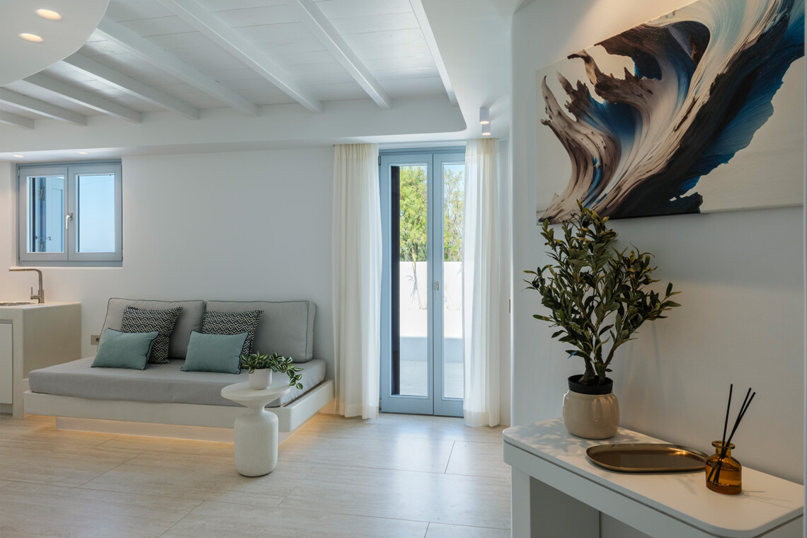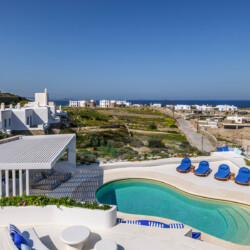 Villa Kathreen is a newly reconstructed luxury villa in the prestigious area of Kanalia, offering beautiful Aegean Sea views and a rare balance of privacy and proximity. Just minutes from Ornos Beach and Mykonos Town, and only a short walk from a secluded public beach, it is ideally located for guests who want tranquility with easy access to the island’s highlights.