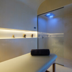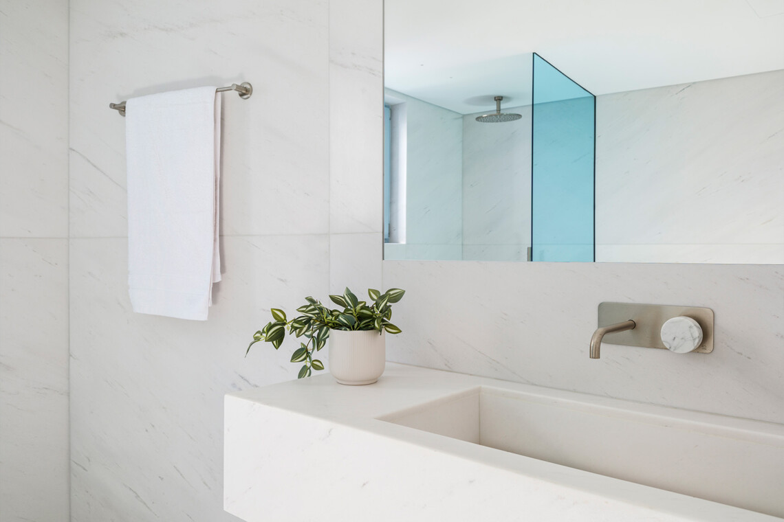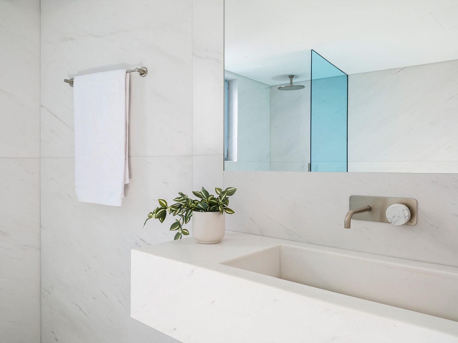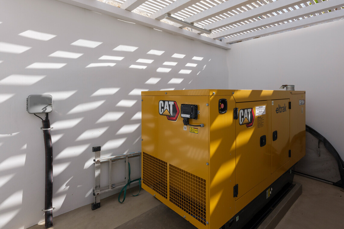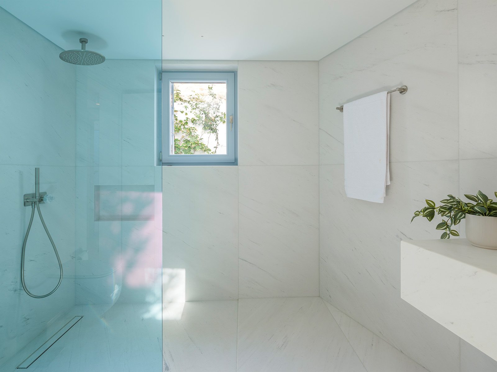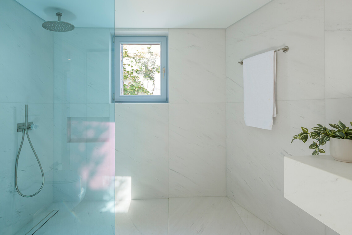 The villa accommodates up to 15 guests across six en-suite bedrooms and three independent guest suites, all featuring Coco-Mat beds and marble bathrooms. The main house includes an elegant open-plan living area and a fully equipped designer kitchen, while the detached suites each offer private entrances, outdoor patios, and private Jacuzzis with sea views.