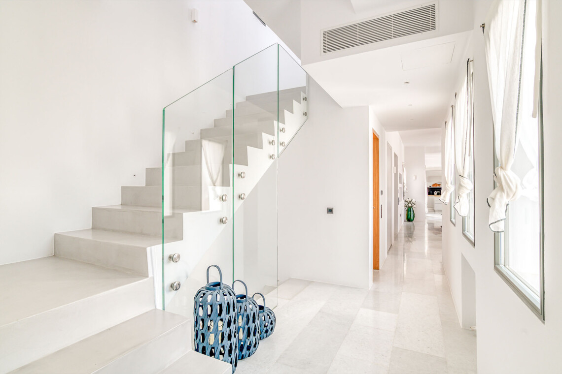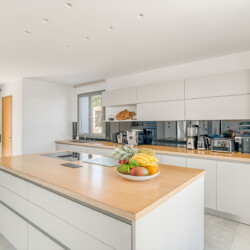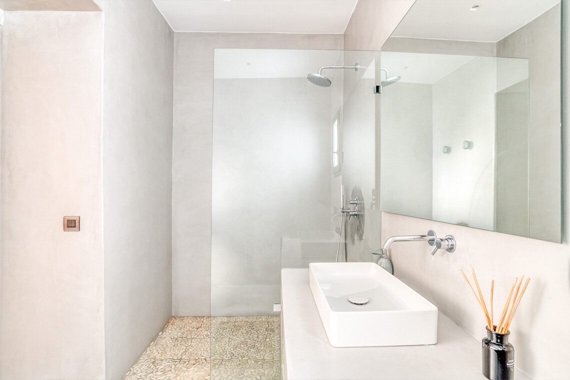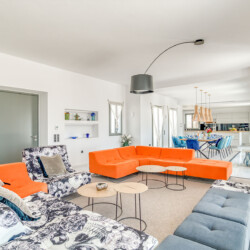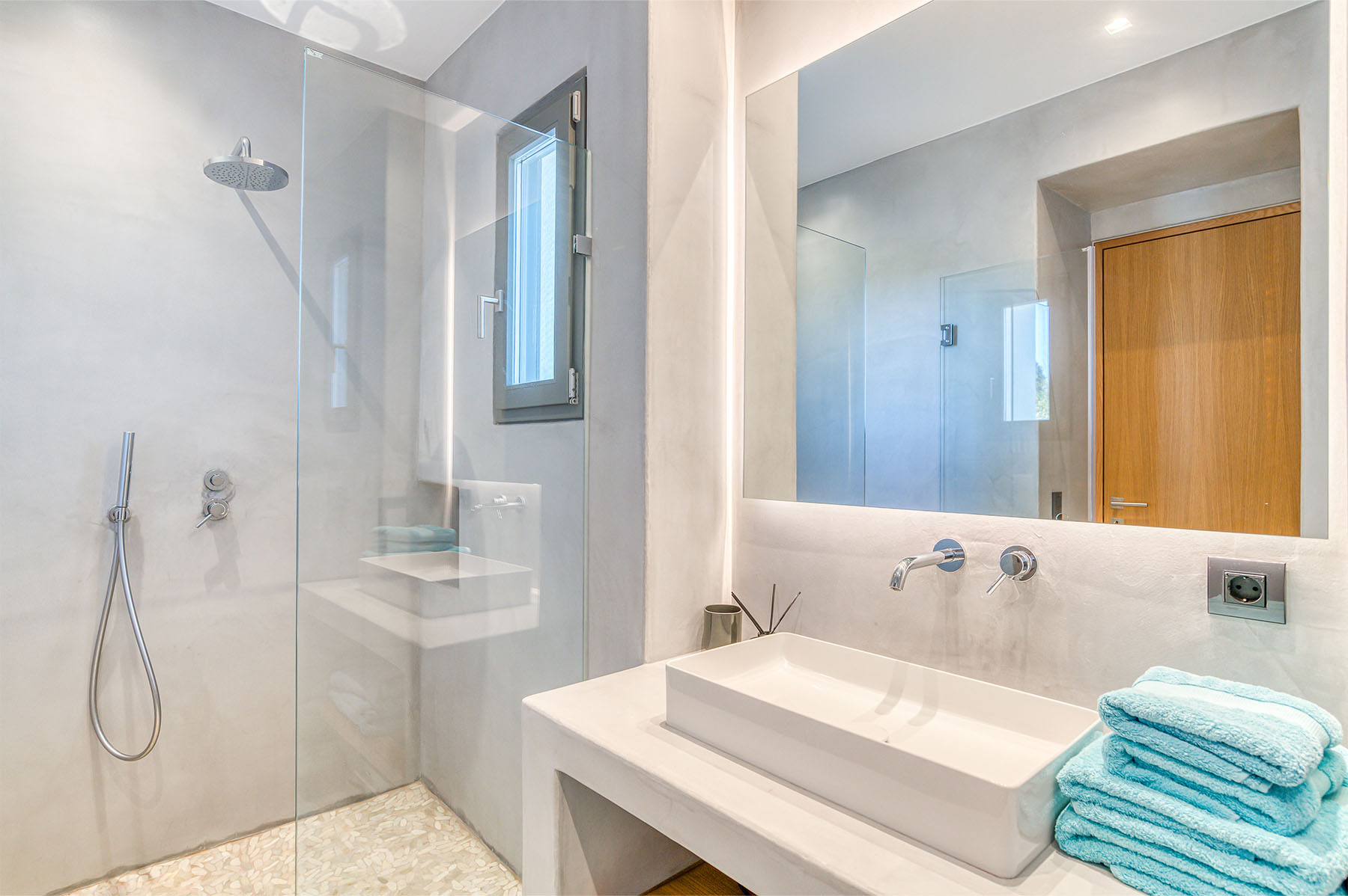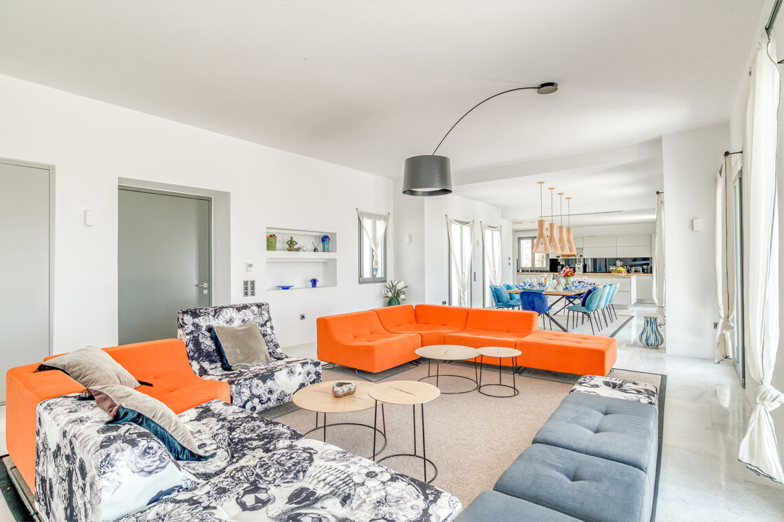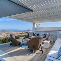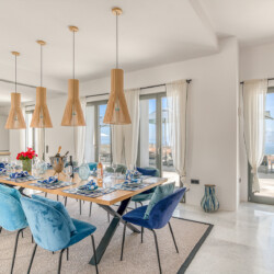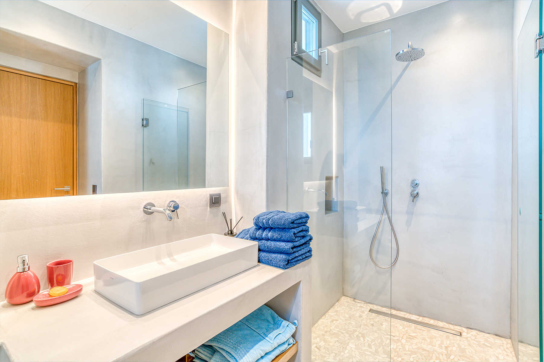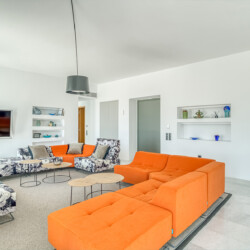 Equipped with a modern kitchen ready for diverse culinary adventures, guests can cook with ease, and the option of a chef can be arranged upon request. Surrounding the villa are expansive terraces with 12 sunbeds and parasols, perfect for relaxation. An equipped bar allows for cocktail-making and delightful aperitifs. The 15m x 4m infinity pool overlooks the sunrise side of the island, providing a stunning view.