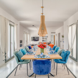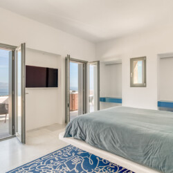 Nestled near Molos and Golden Beach, it ensures easy access to the coastline. The villa comprises 5 double bedrooms featuring queen-sized beds, alongside a bedroom accommodating 4 single beds.