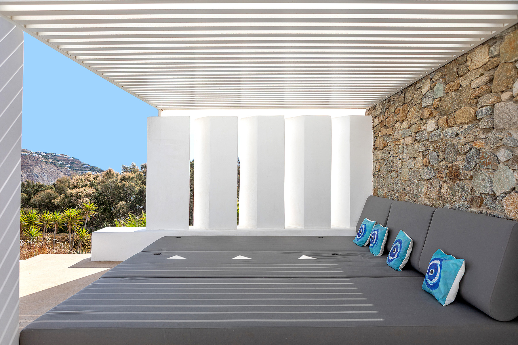 Villa Mayana is a beautifully crafted residence where modern luxury meets thoughtful design. Built with superior materials and meticulous attention to detail, it offers an elegant yet relaxed setting ideal for gathering with loved ones. The focus of the home is its expansive outdoor living area ,a central sanctuary where guests can dine, lounge, and enjoy life under the Mykonian sun and stars, while still maintaining privacy whenever desired.