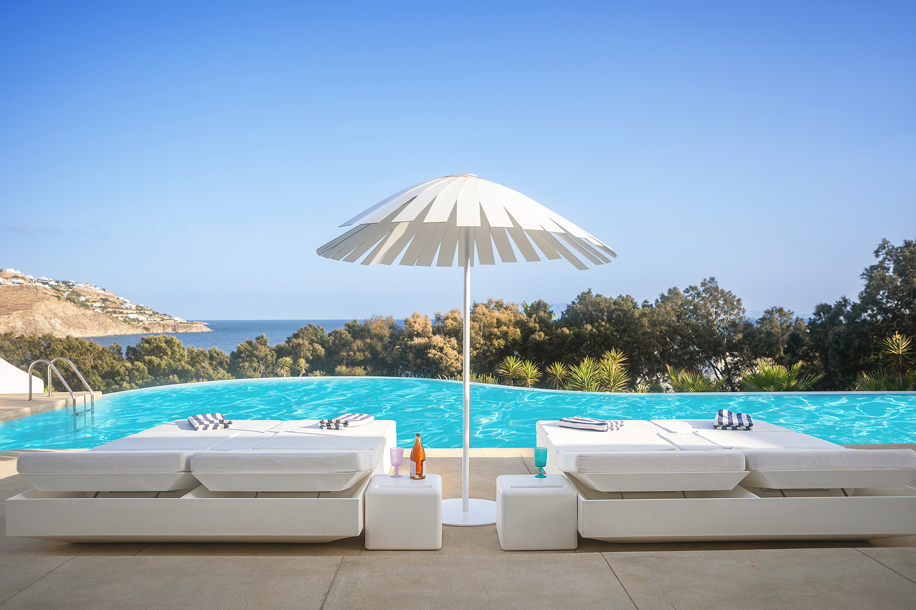 Ideally positioned in a wind-protected location, Villa Mayana offers easy access to Mykonos’ most coveted attractions. Mykonos Town (Chora) is less than 10 minutes away, and the renowned beaches of Ornos and Agios Ioannis can be reached in under five minutes. Combining privacy, top-quality finishes, and proximity to the island’s vibrant lifestyle, Villa Mayana provides the perfect setting for an unforgettable Mykonos escape.