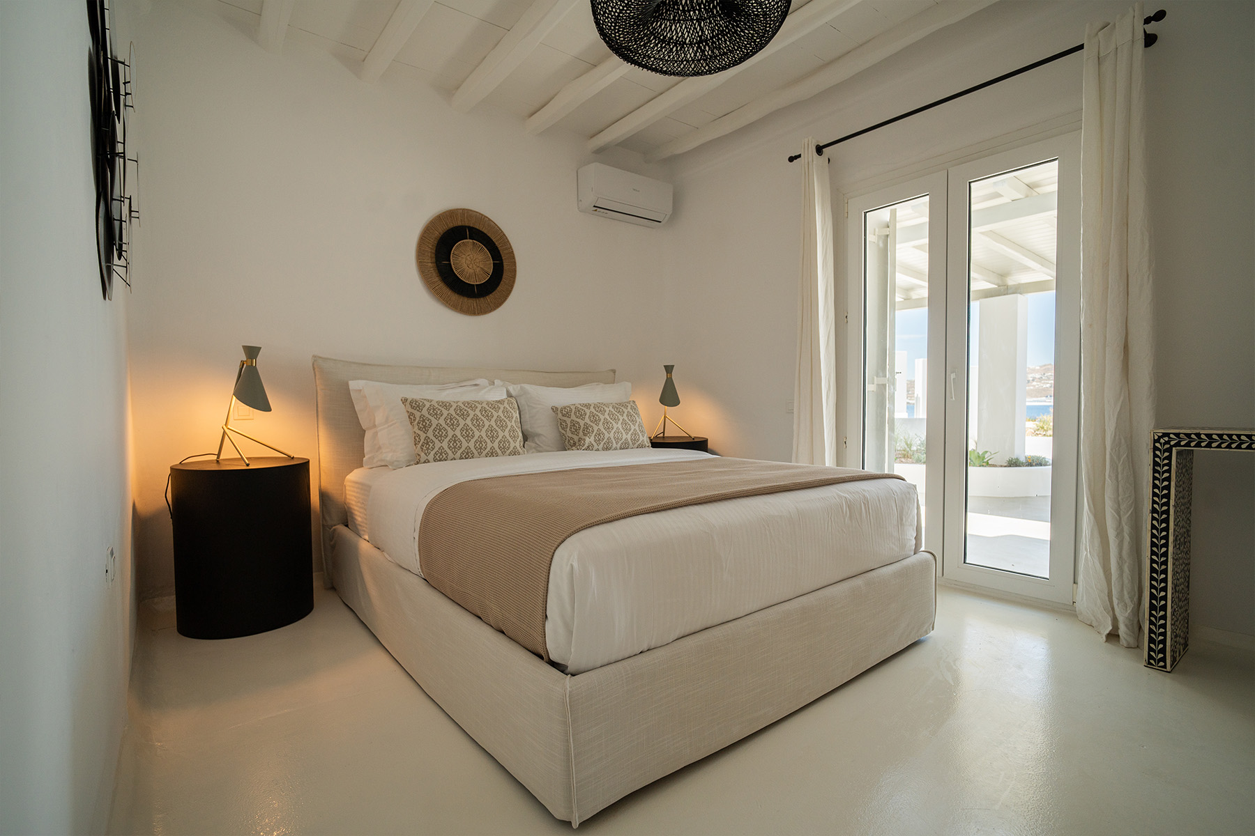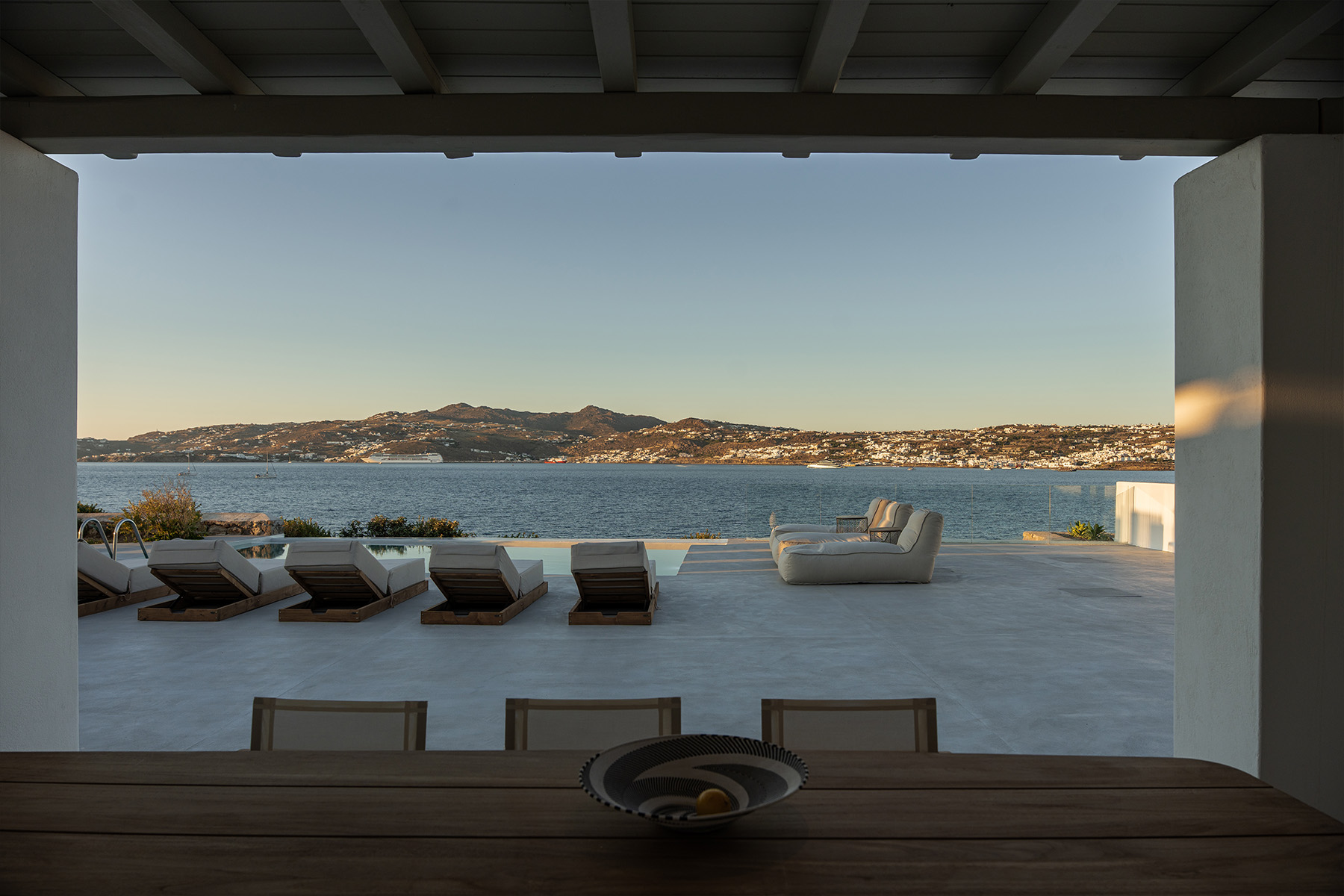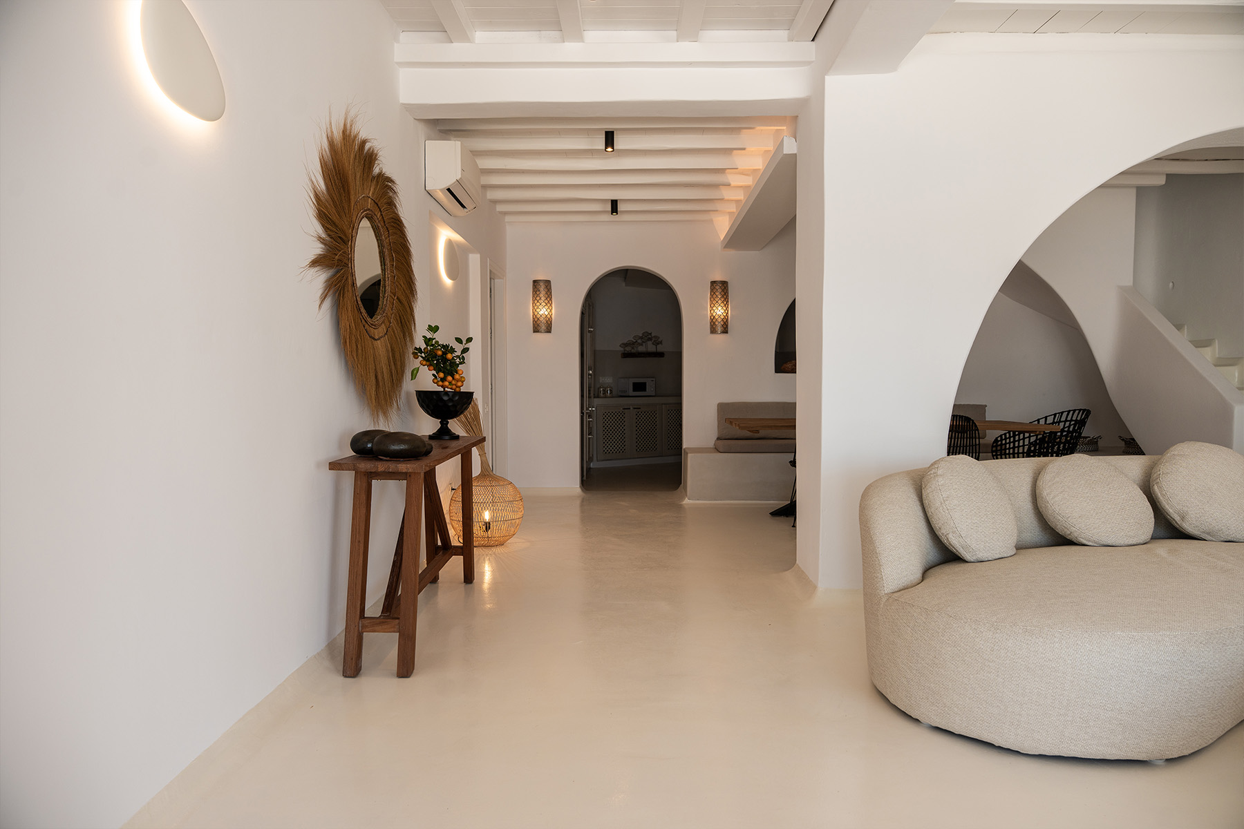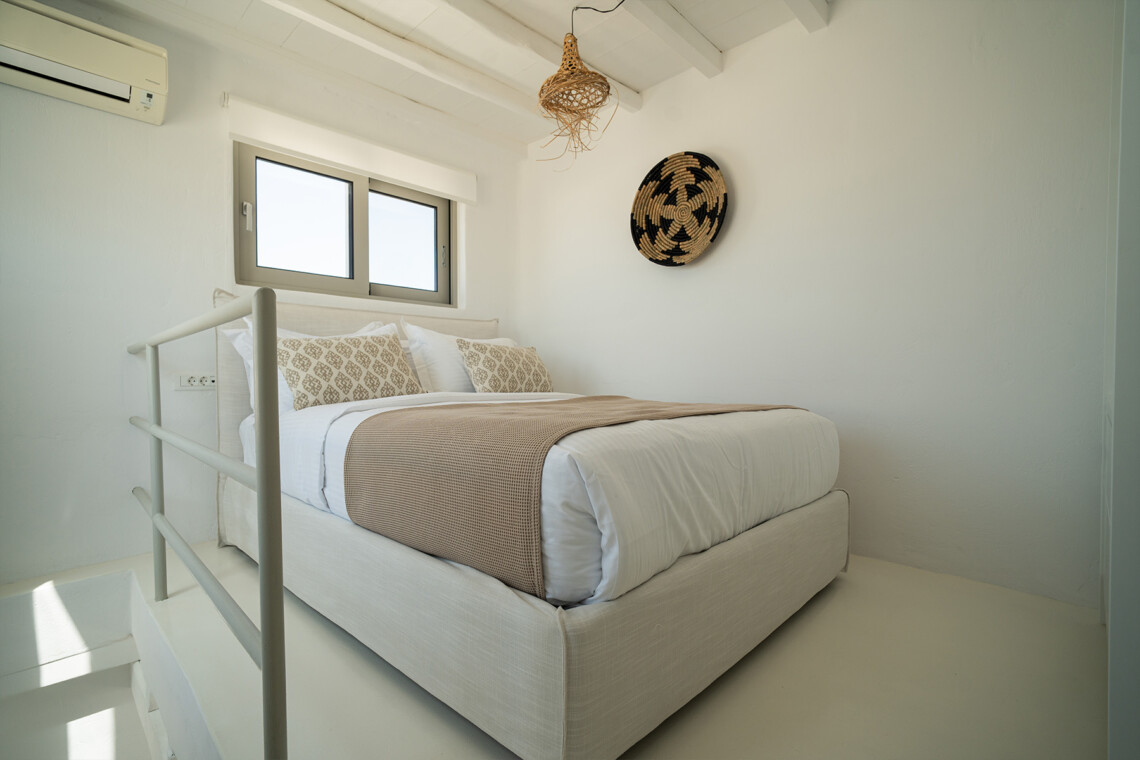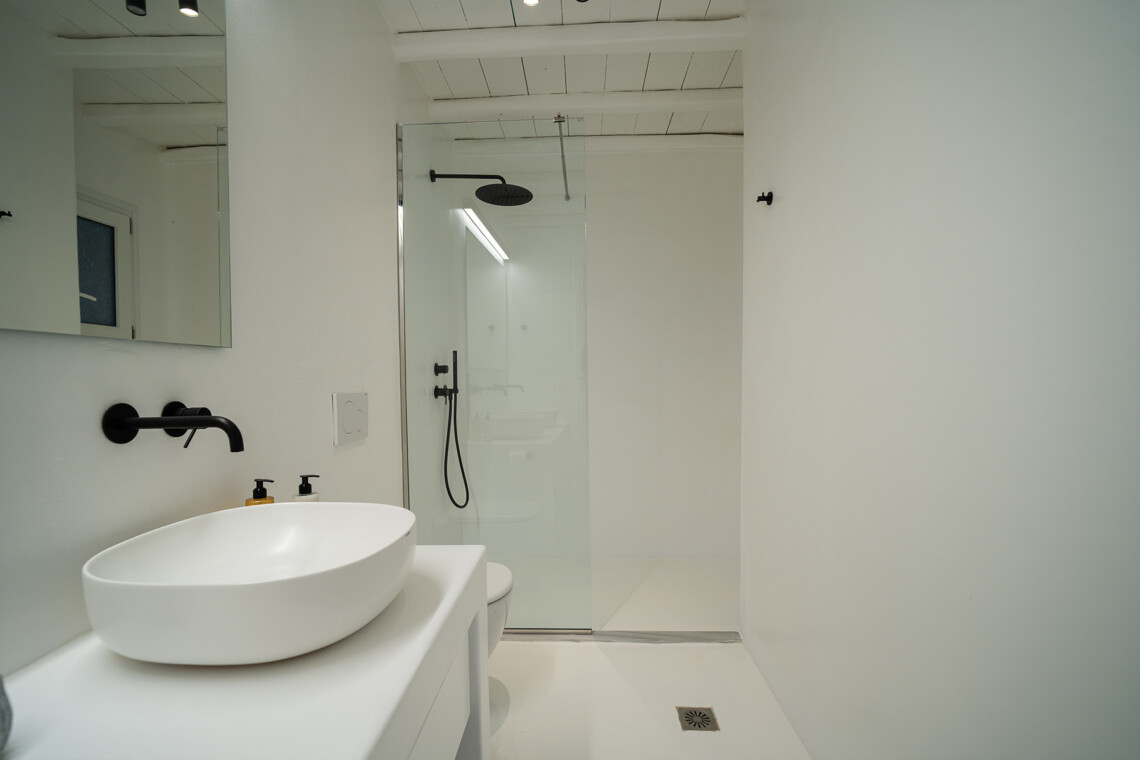 Outdoors, guests can enjoy multiple lounge areas that invite relaxation under the Mykonian sun or al fresco dining overlooking the endless blue horizon. Ideal for families or groups of friends, Villa Miracle combines privacy, comfort, and captivating views for an unforgettable island escape.