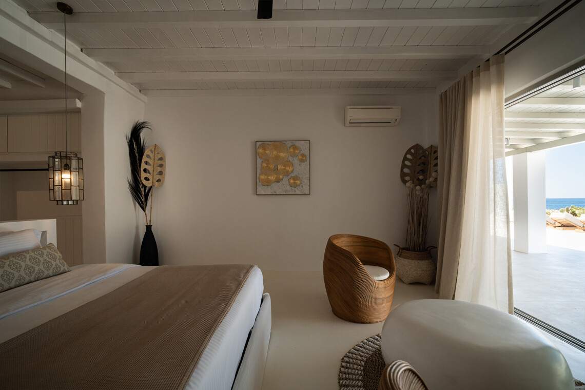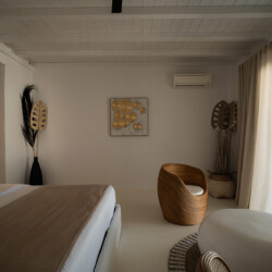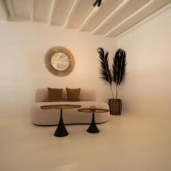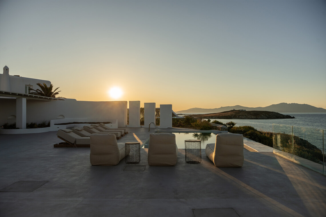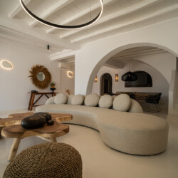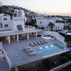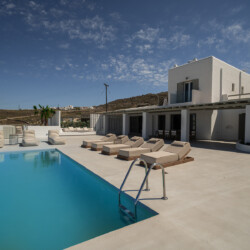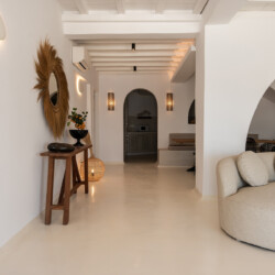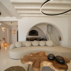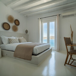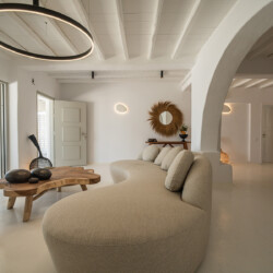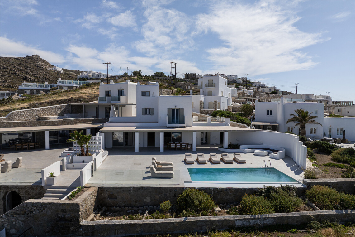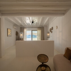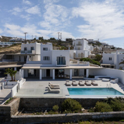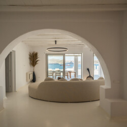 Villa Miracle is a stunning seafront retreat perched on the hillside of Kanalia, offering uninterrupted views of the Aegean Sea and the sacred island of Delos. Blending traditional Cycladic architecture with modern comfort, the villa’s whitewashed walls, natural stone details, and sunlit terraces create a serene atmosphere that perfectly captures the essence of Mykonos living.