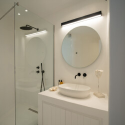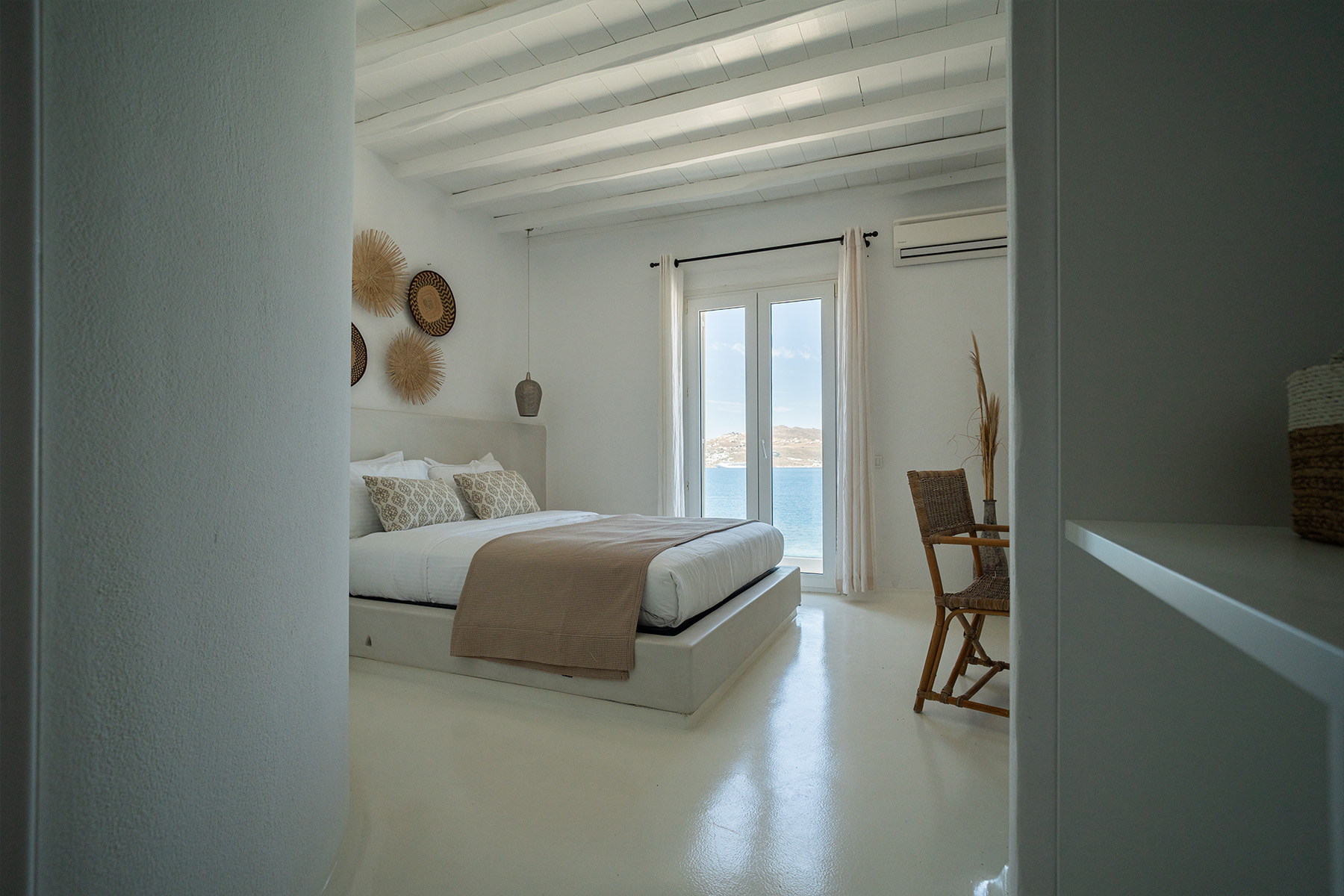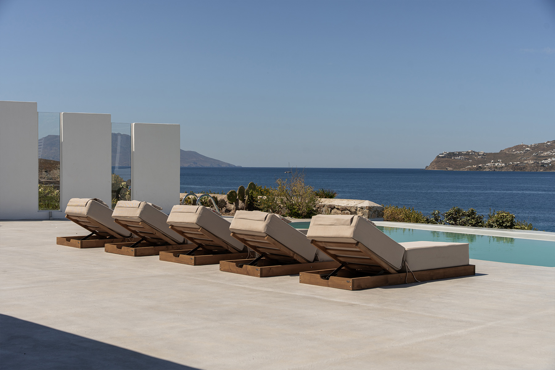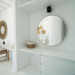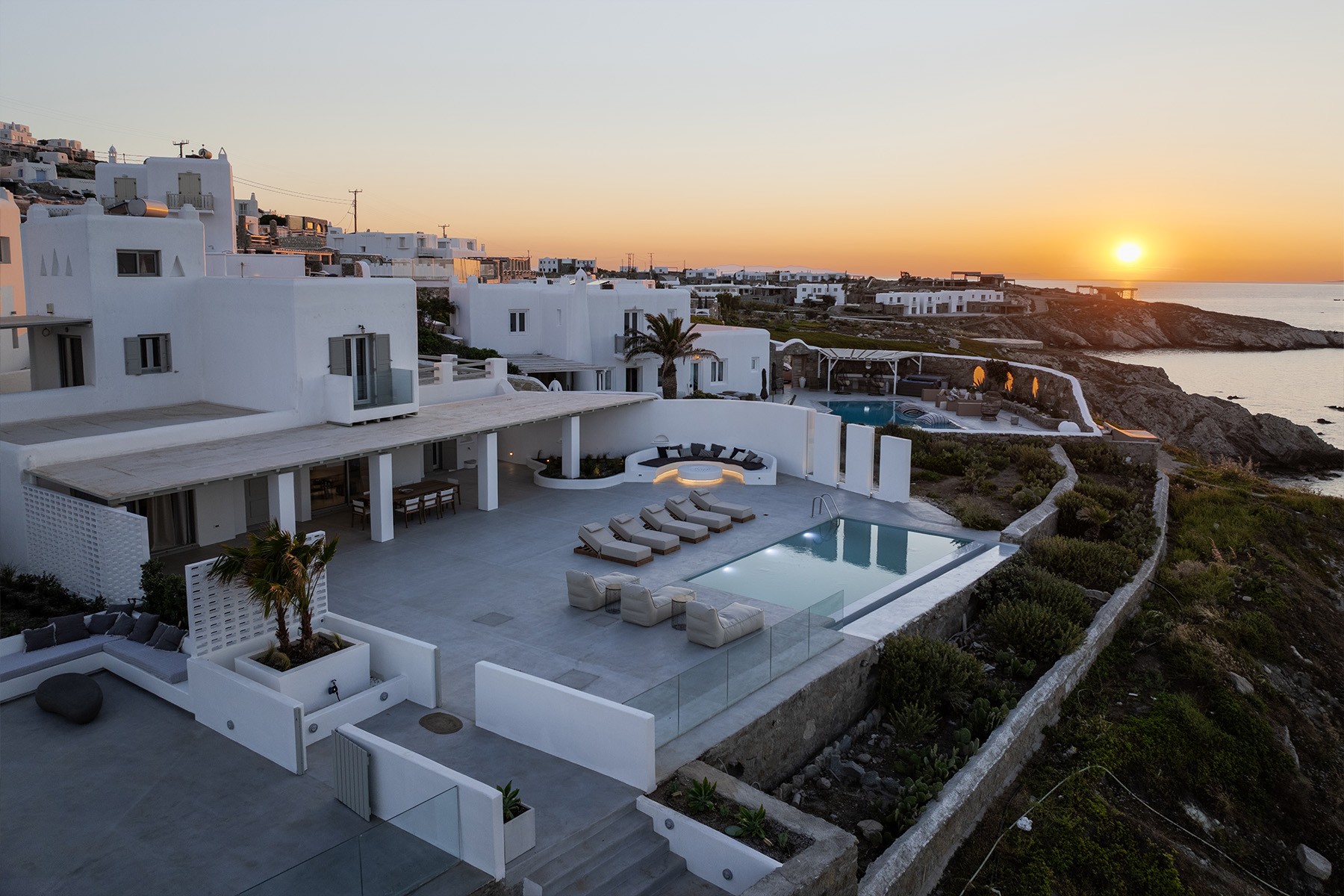 Villa Miracle is a stunning seafront retreat perched on the hillside of Kanalia, offering uninterrupted views of the Aegean Sea and the sacred island of Delos. Blending traditional Cycladic architecture with modern comfort, the villa’s whitewashed walls, natural stone details, and sunlit terraces create a serene atmosphere that perfectly captures the essence of Mykonos living.