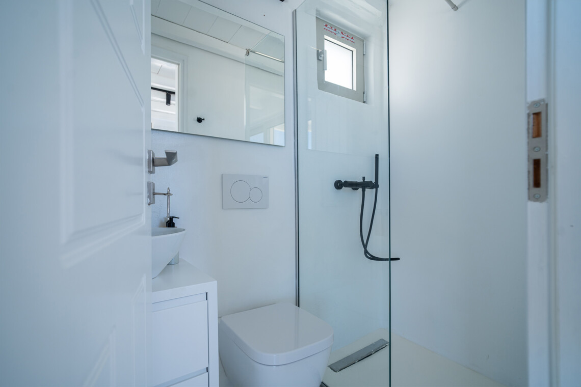 Spanning 200 sq.m. across three levels, the villa features four elegant double bedrooms with en-suite bathrooms, a fully equipped open-plan kitchen, and a spacious living area designed to frame breathtaking sea views. The minimalist interior design, with soft tones and bright natural light, enhances the sense of openness and tranquility throughout the home.