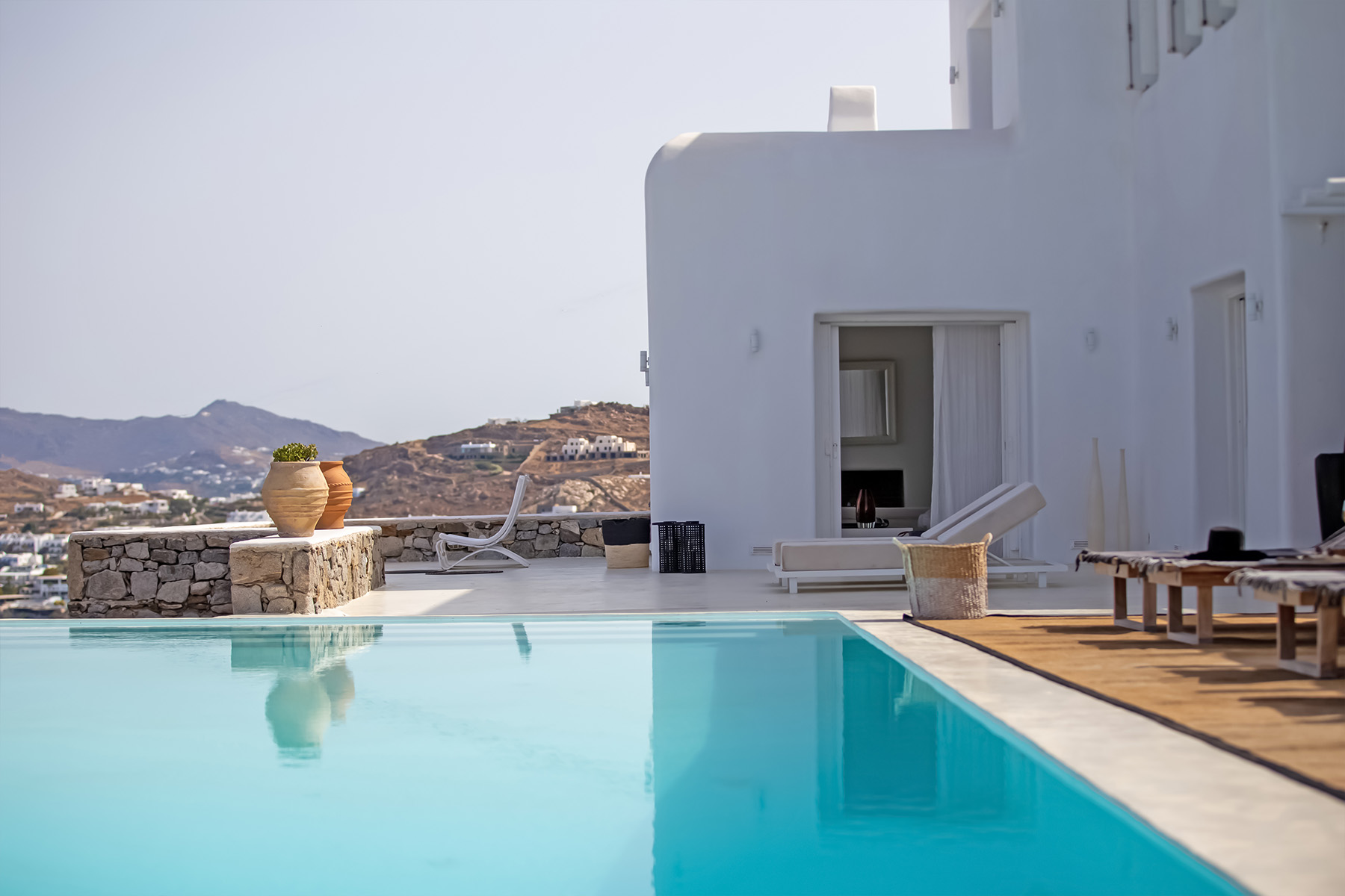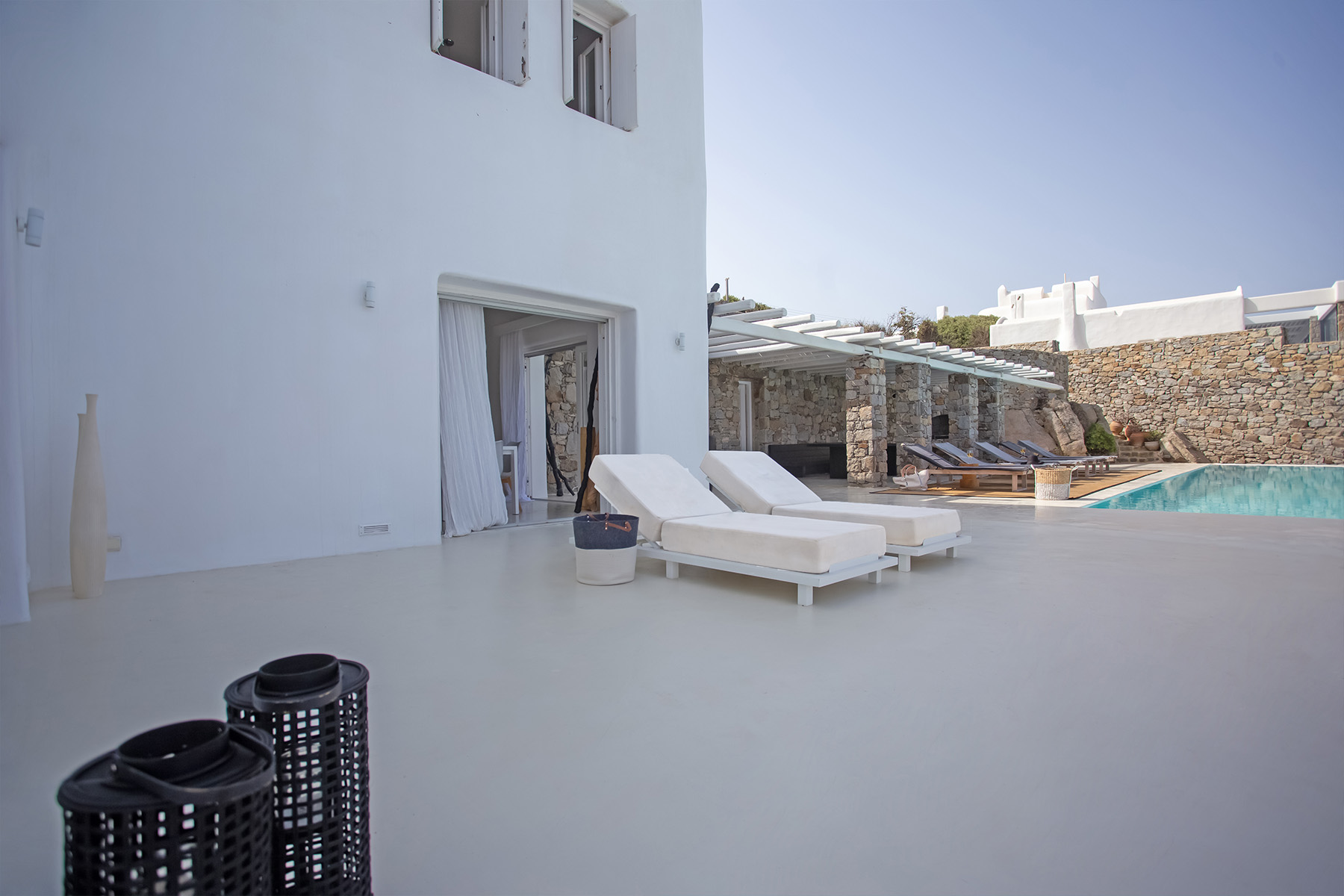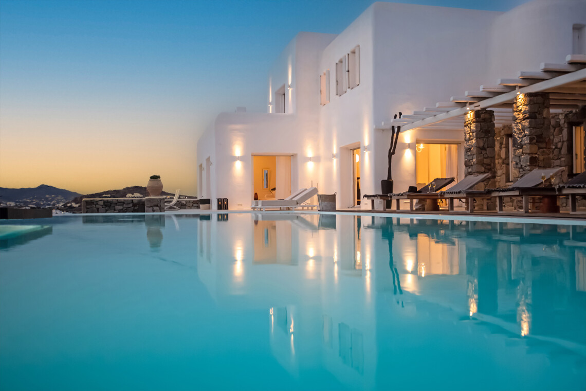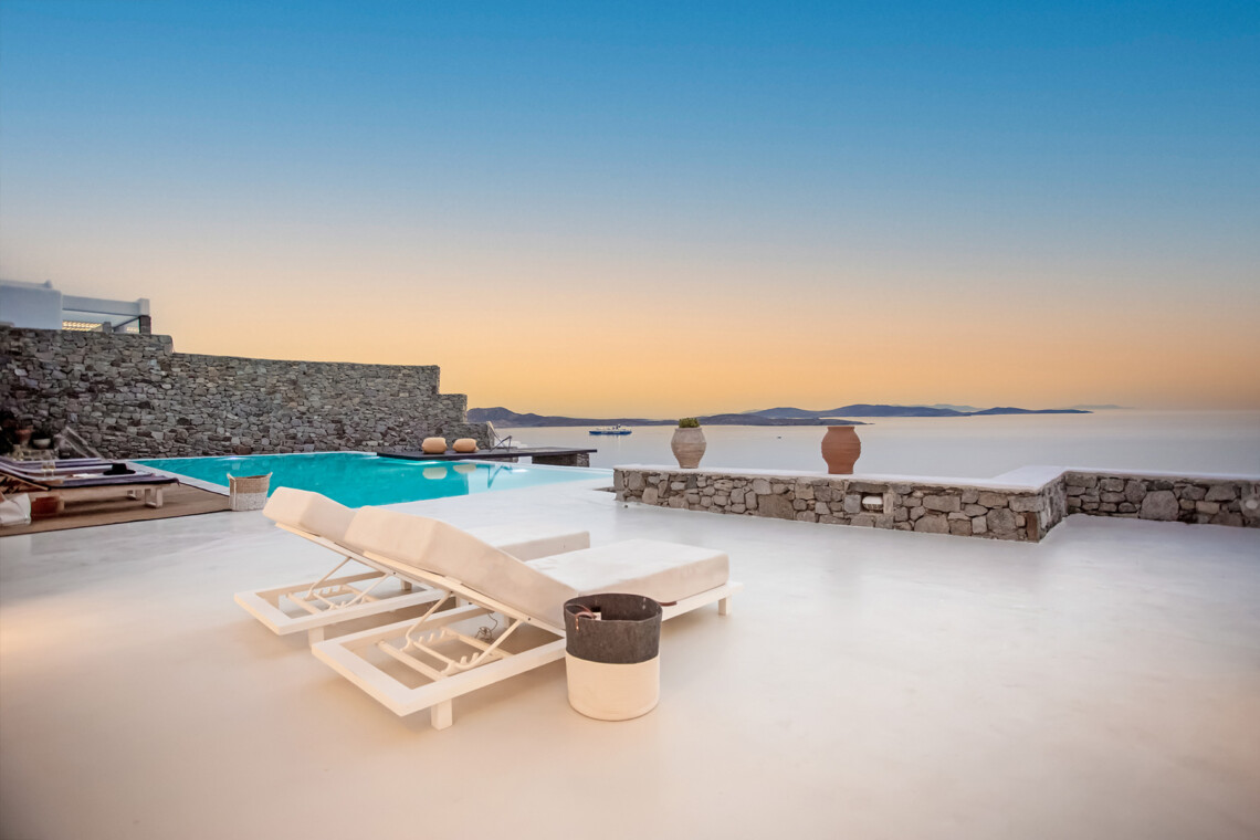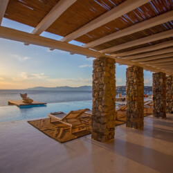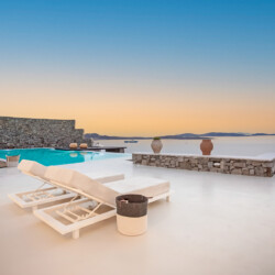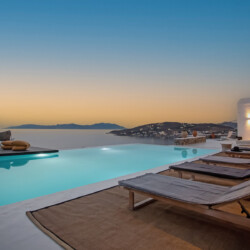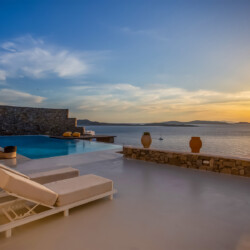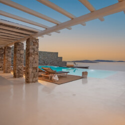 Villa Morris is a refined luxury retreat located in the prestigious area of Aleomandra, offering breathtaking sunset views over the Aegean Sea and the historic island of Delos. Designed across three levels, the villa blends elegant Cycladic architecture with modern comfort, creating a serene and stylish setting ideal for an unforgettable Mykonos escape.