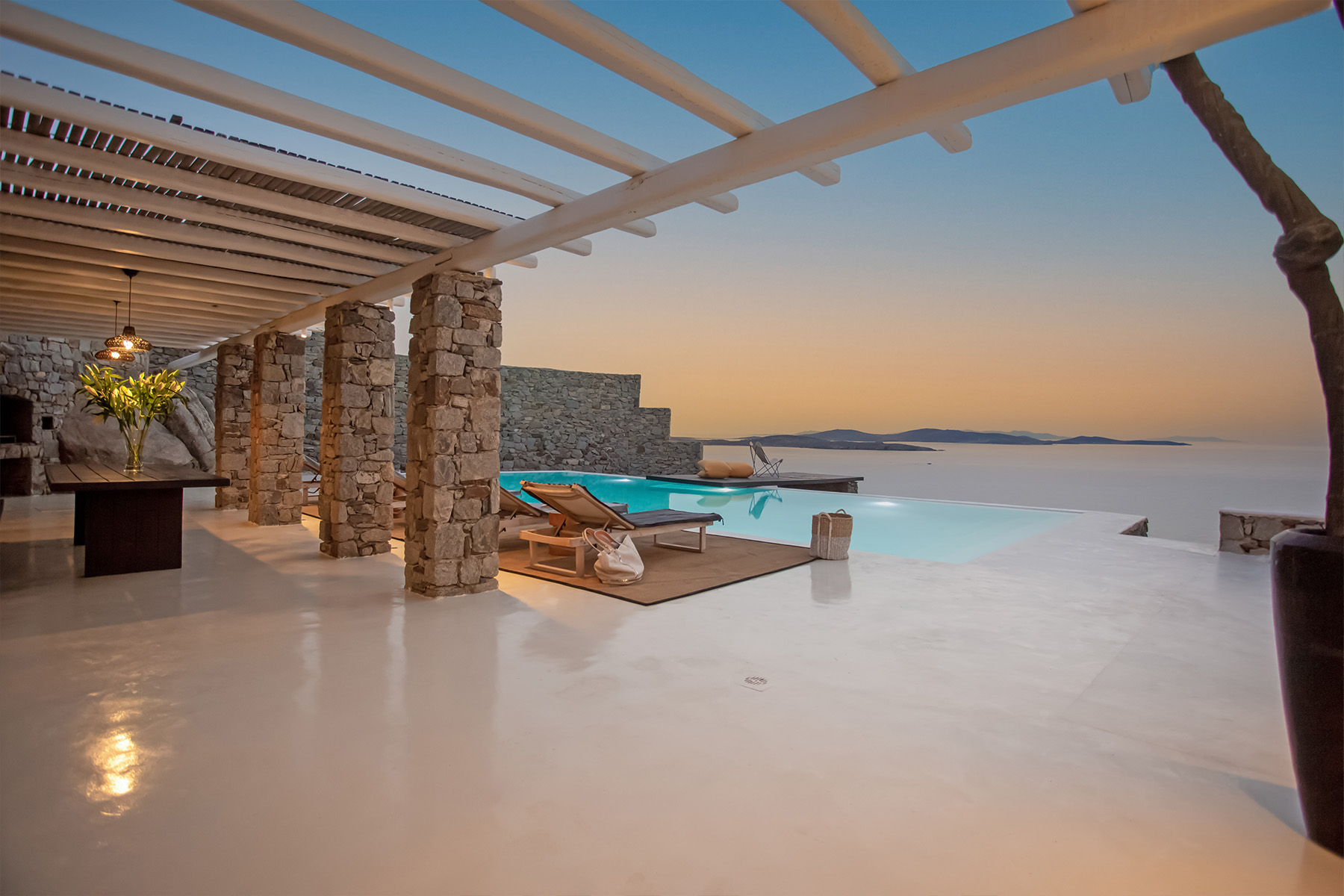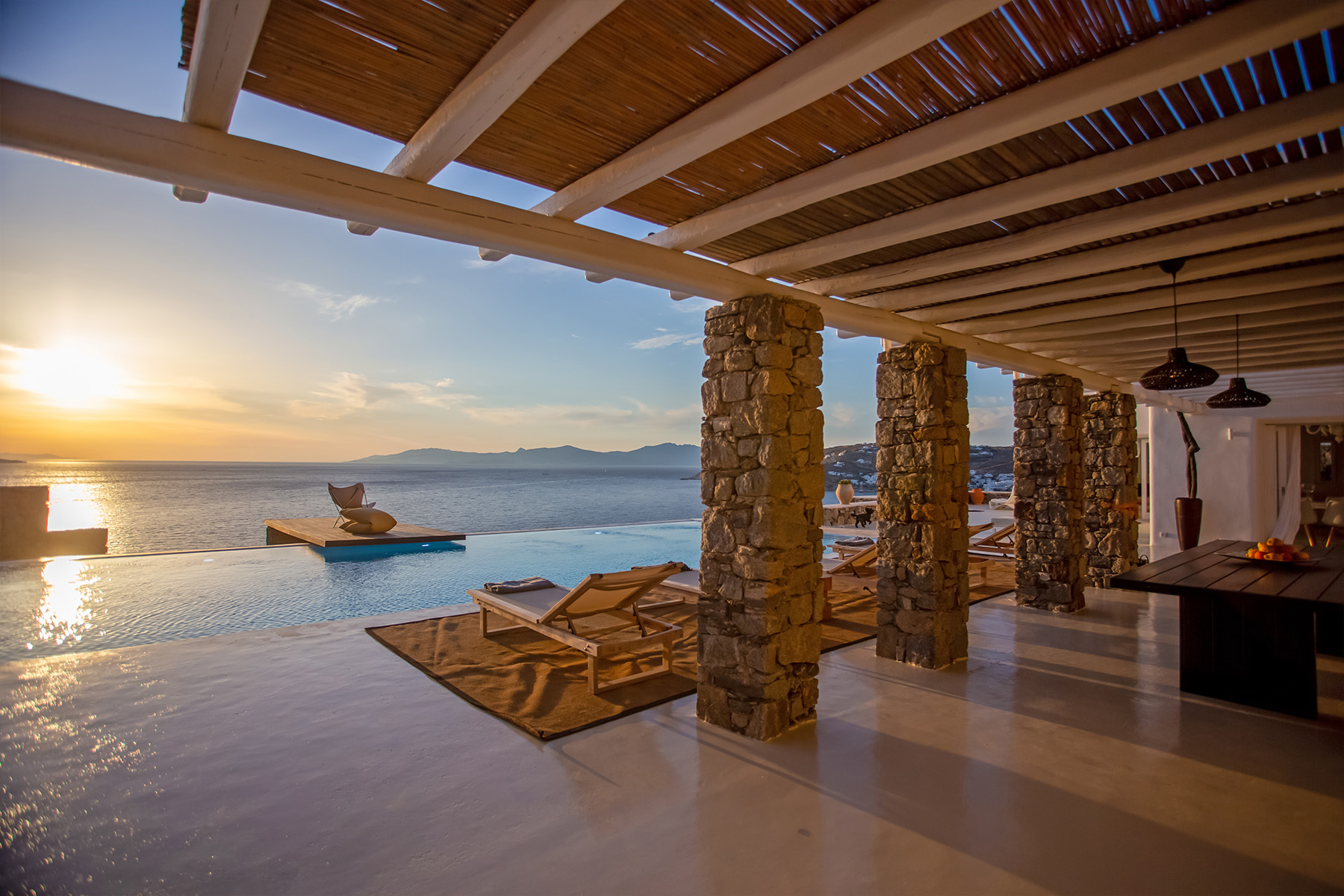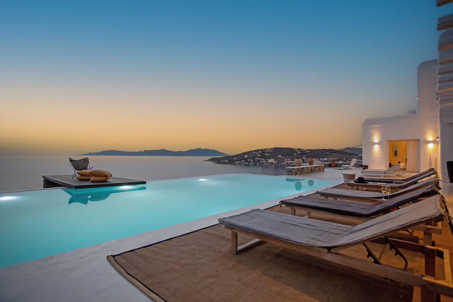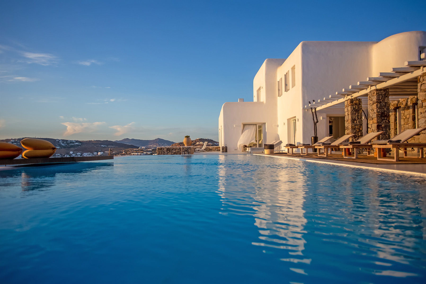 Villa Morris is a refined luxury retreat located in the prestigious area of Aleomandra, offering breathtaking sunset views over the Aegean Sea and the historic island of Delos. Designed across three levels, the villa blends elegant Cycladic architecture with modern comfort, creating a serene and stylish setting ideal for an unforgettable Mykonos escape.