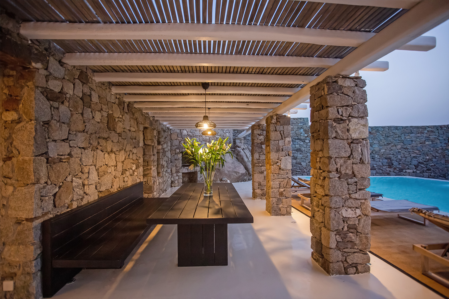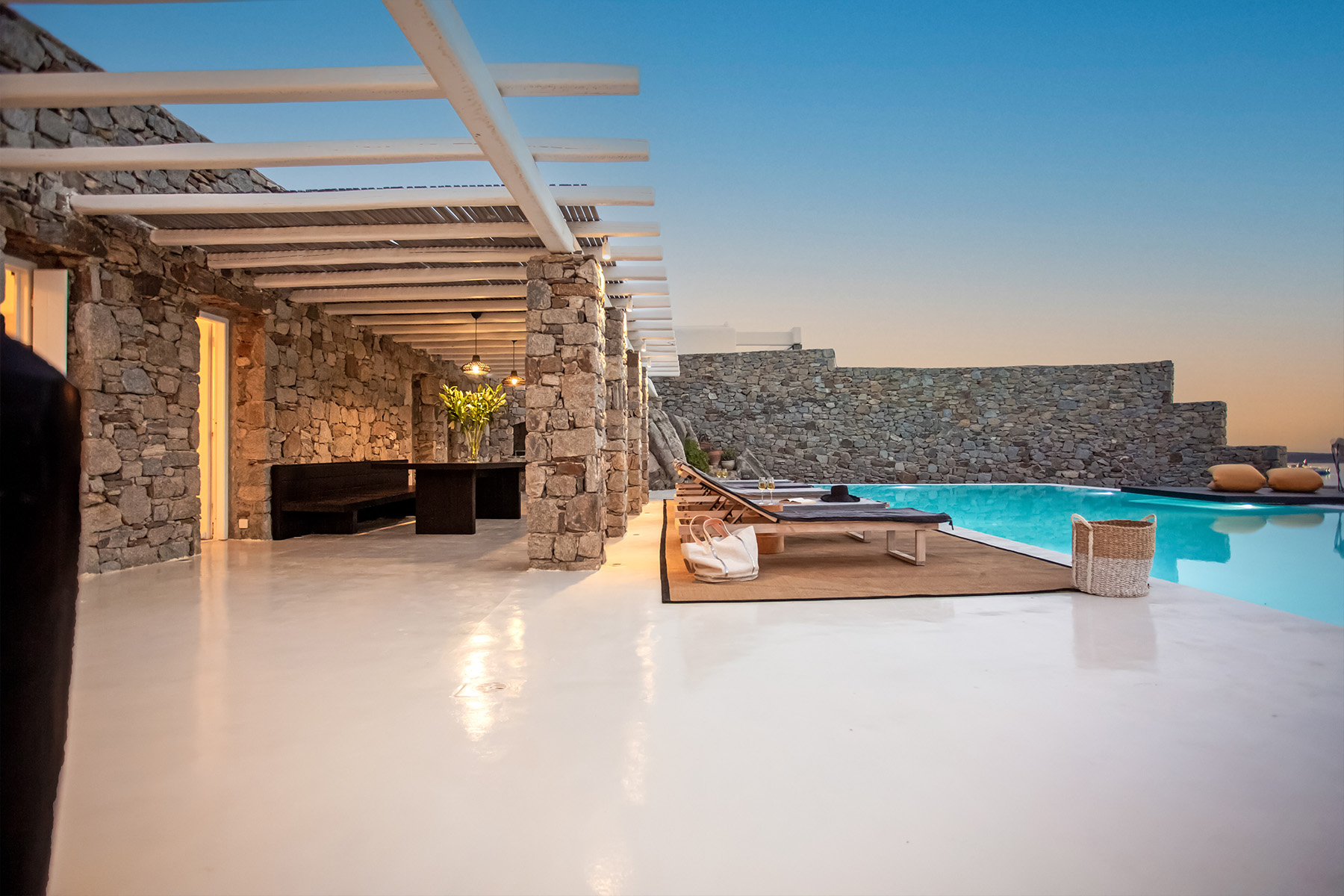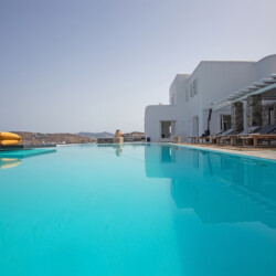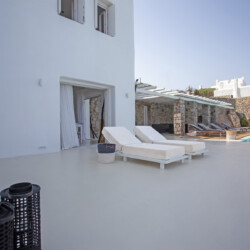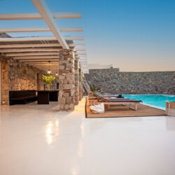 The outdoor area is the highlight of Villa Morris, featuring a stunning infinity pool overlooking the horizon, shaded dining spaces, and a BBQ area perfect for relaxed gatherings. Just 600 meters from the beach and only minutes from Mykonos Town, the airport, and local amenities, the villa offers both privacy and convenience, making it the perfect choice for groups seeking luxury, comfort, and spectacular scenery.