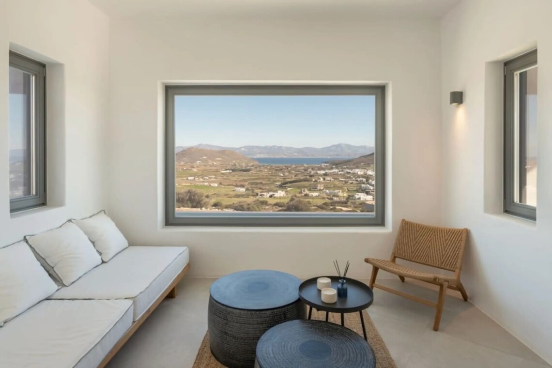 Villa Paradise I is a newly built architectural gem that perfectly combines modern comfort with elegant Cycladic design. Overlooking the Aegean Sea, Naxos, and the tranquil Molos Bay, this exquisite retreat offers a serene escape with breathtaking panoramic views. The villa features three stylish bedrooms, each with its own private bathroom-one with a charming mezzanine-and custom-made furniture that blends sophistication with warmth, comfortably accommodating up to eight guests.