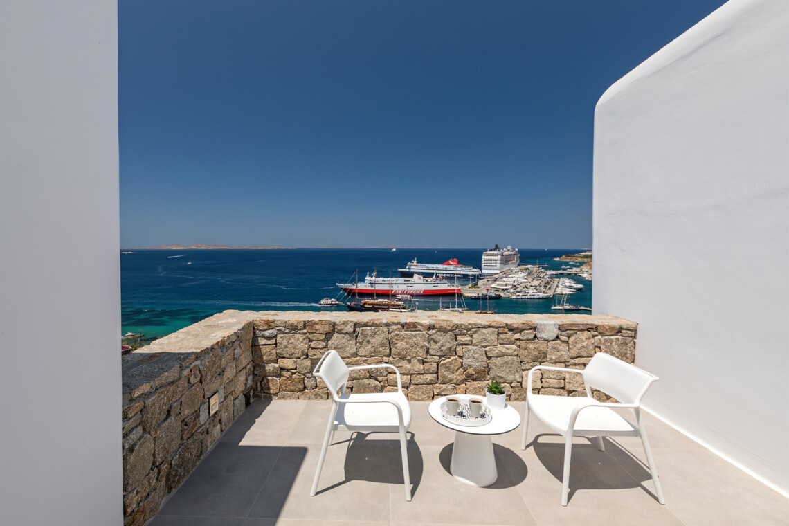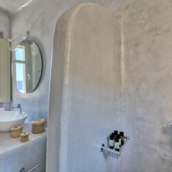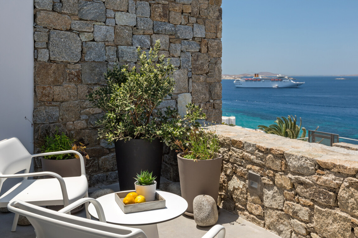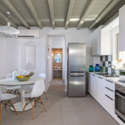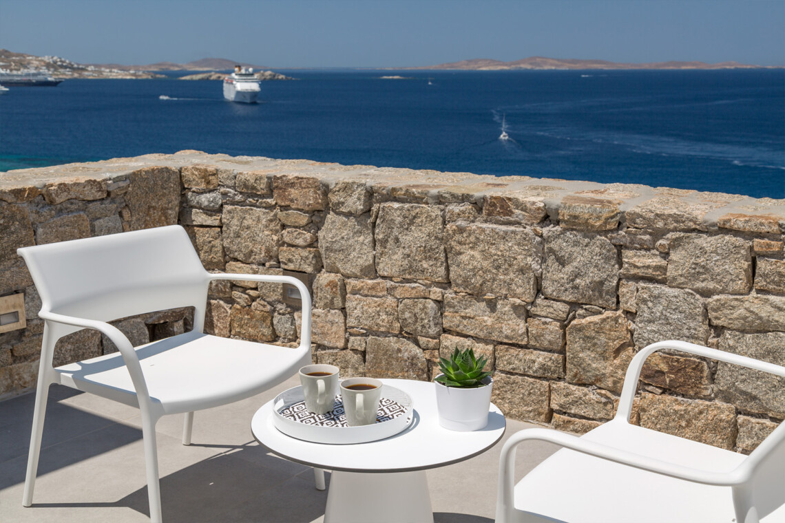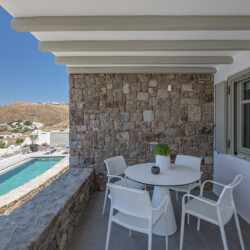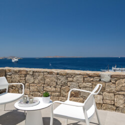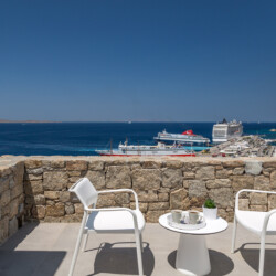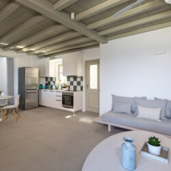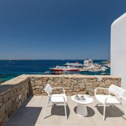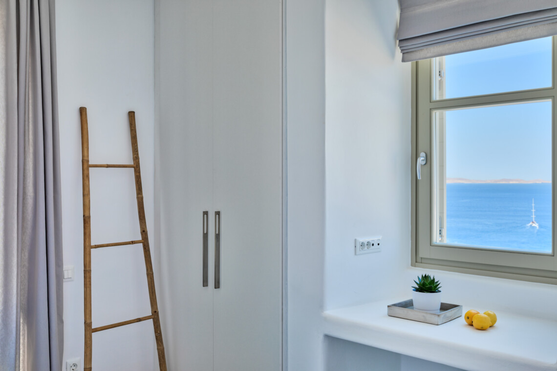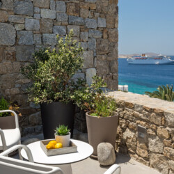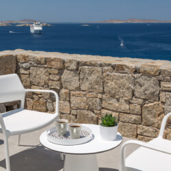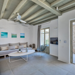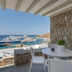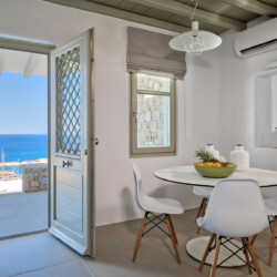 Multiple terraces invite guests to relax and take in sweeping views of the bay and nearby islands. With shared pool access within the villa complex and a location just minutes from beaches, cafés, restaurants, and cultural attractions, Villa Solace is ideal for families or groups of friends seeking a stylish, tranquil, and well-connected Mykonos escape.