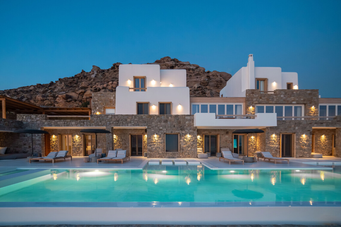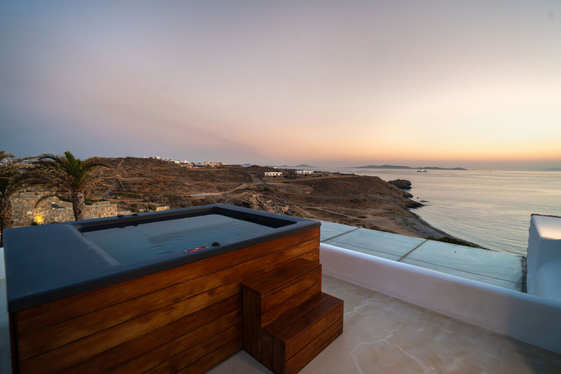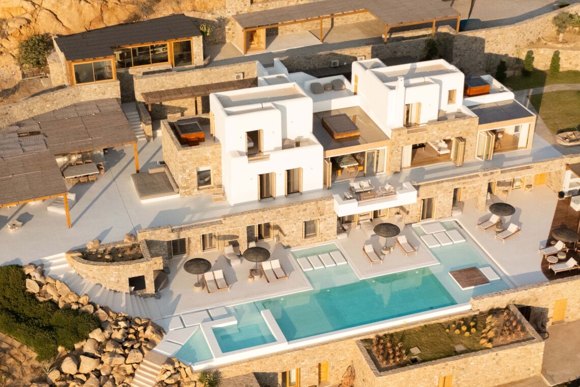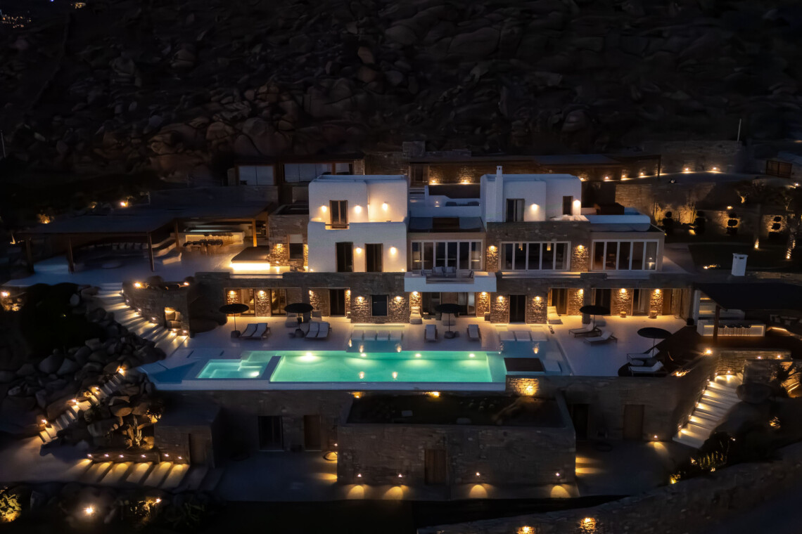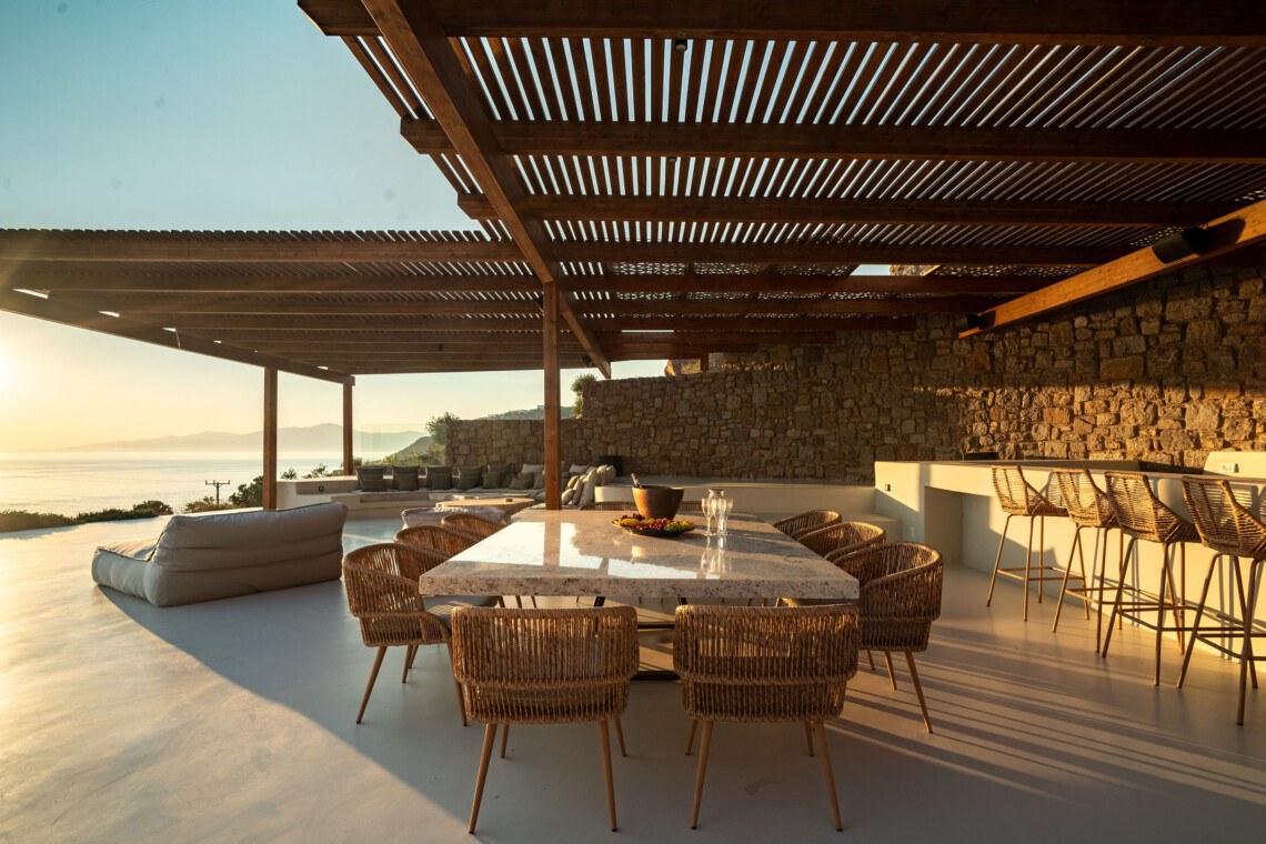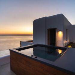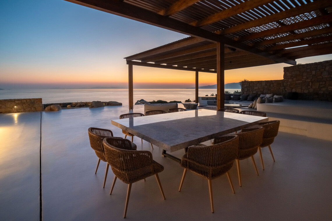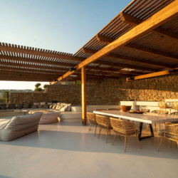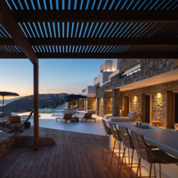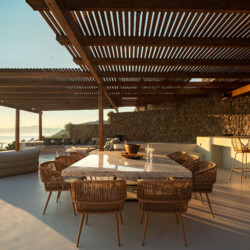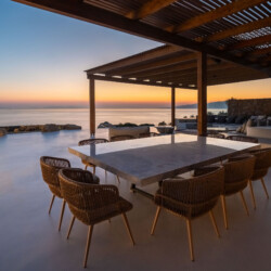 A magnificent villa set above a pristine natural bay with unique uninterrupted views of the coastline. Casa Vrahos possesses a unique, serene atmosphere within a short drive from the island’s revered nightlife.