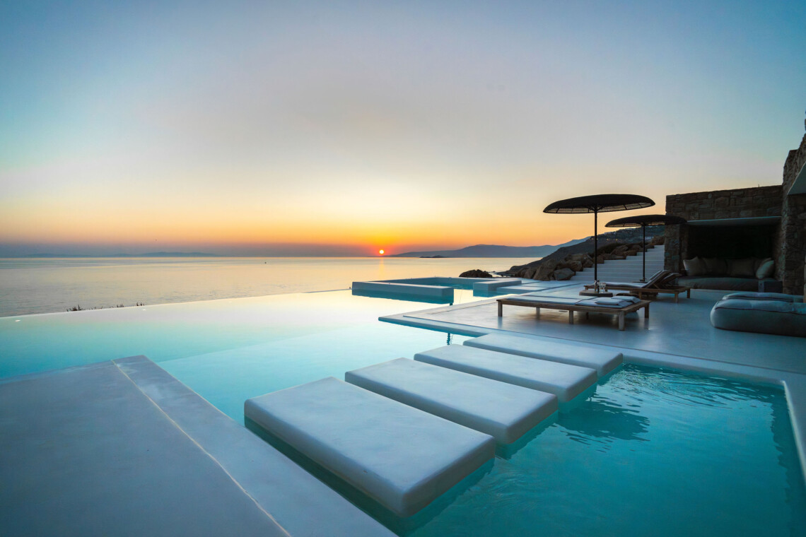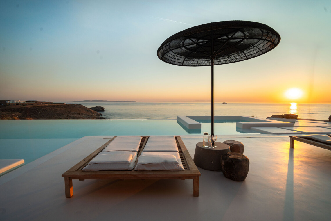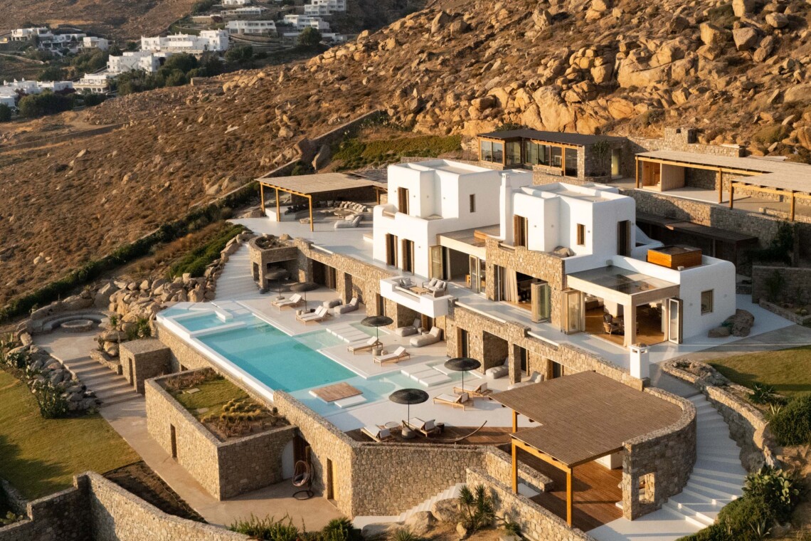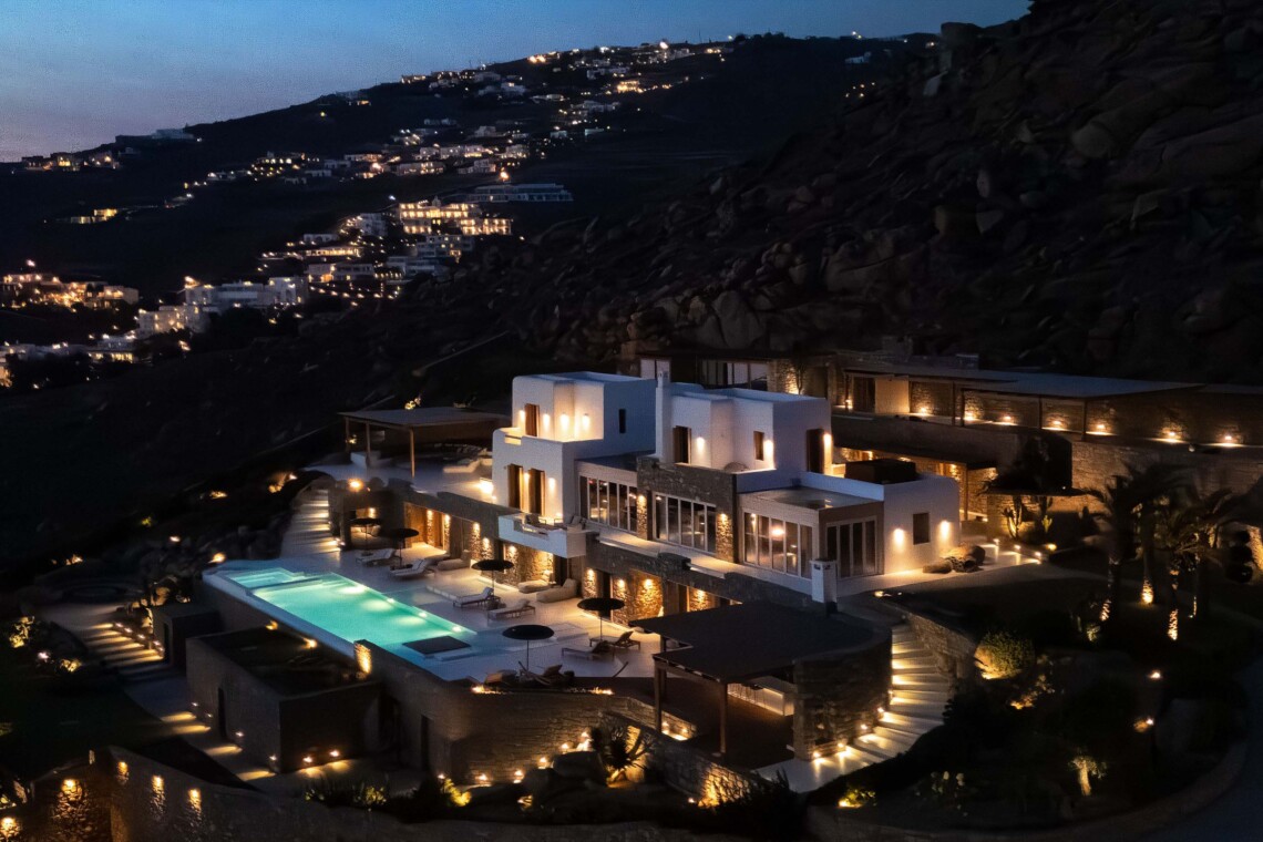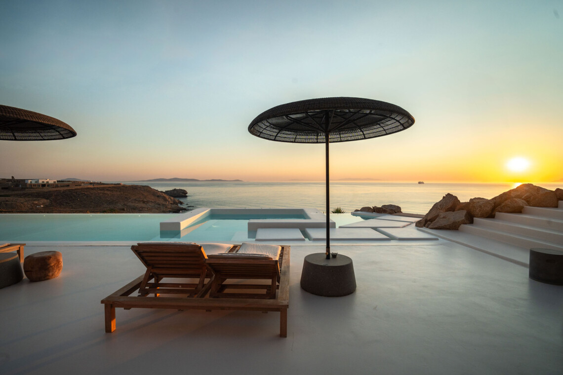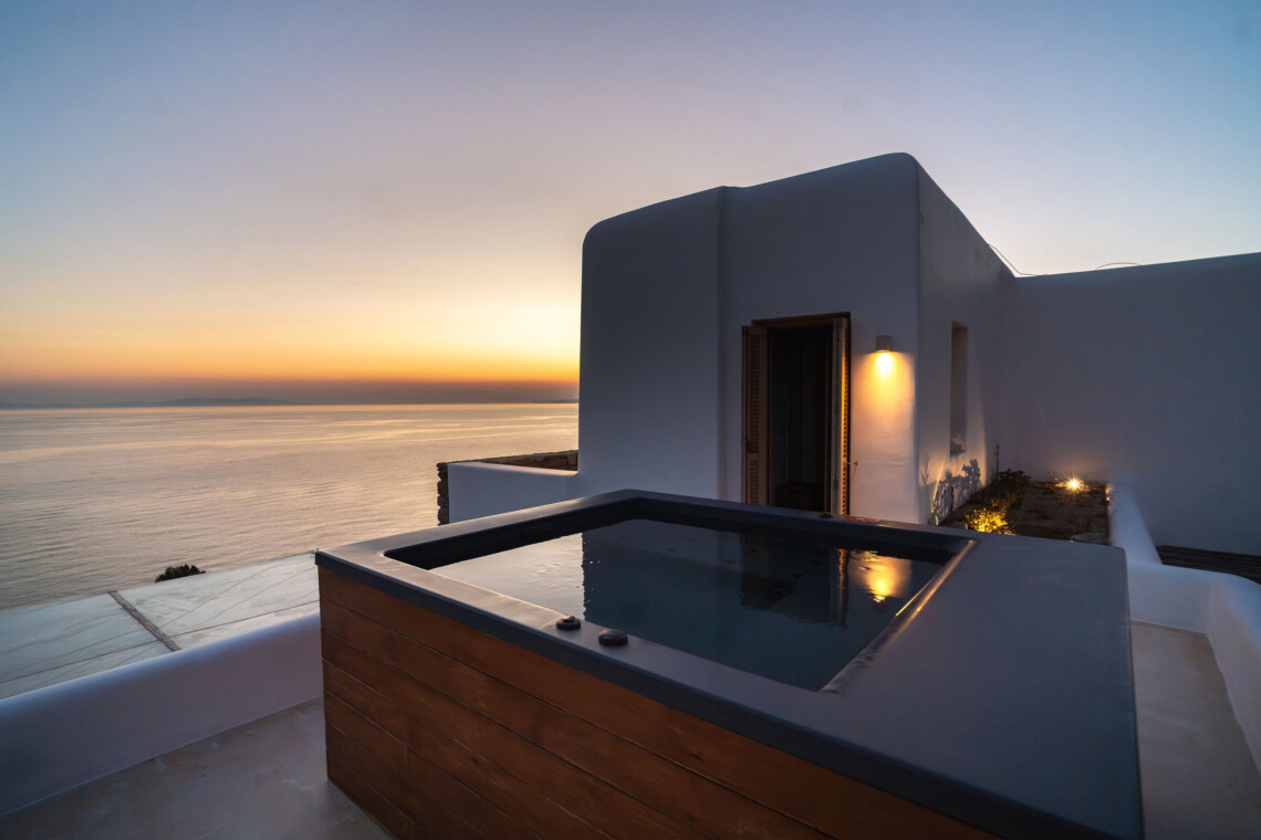 A magnificent villa set above a pristine natural bay with unique uninterrupted views of the coastline. Casa Vrahos possesses a unique, serene atmosphere within a short drive from the island’s revered nightlife.