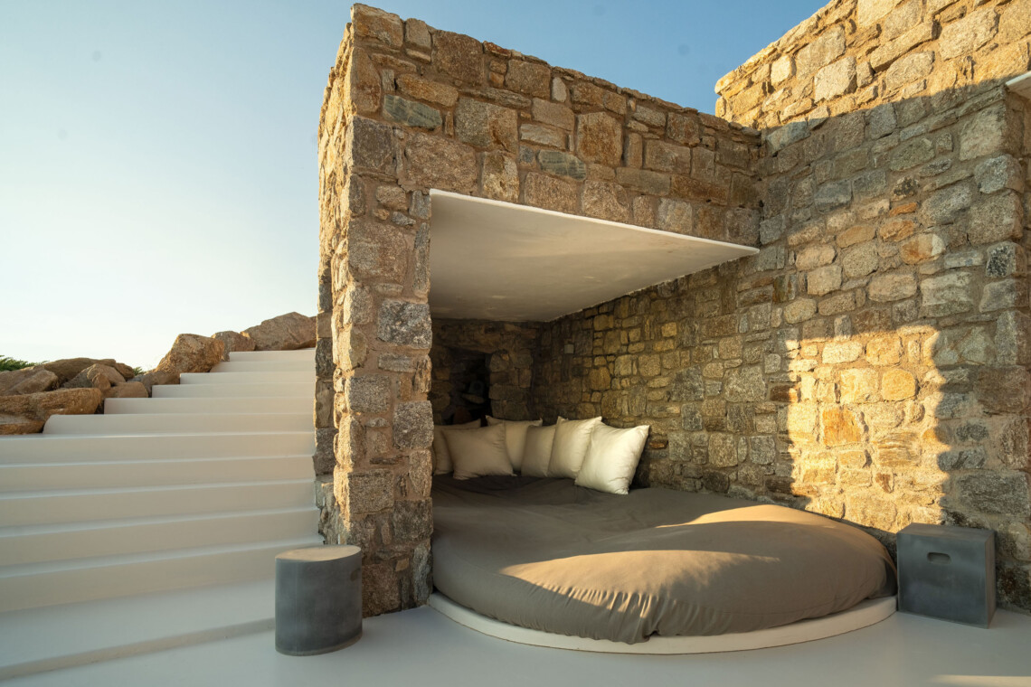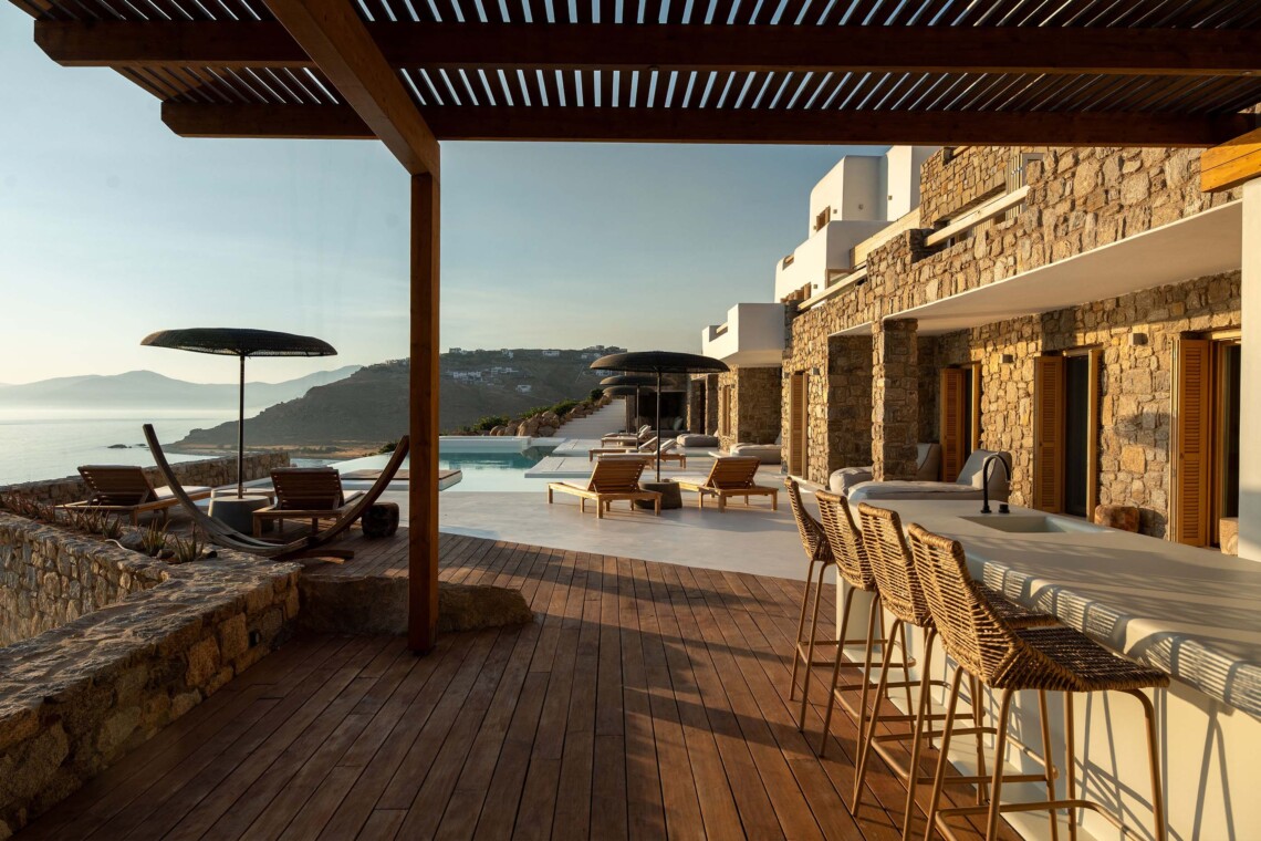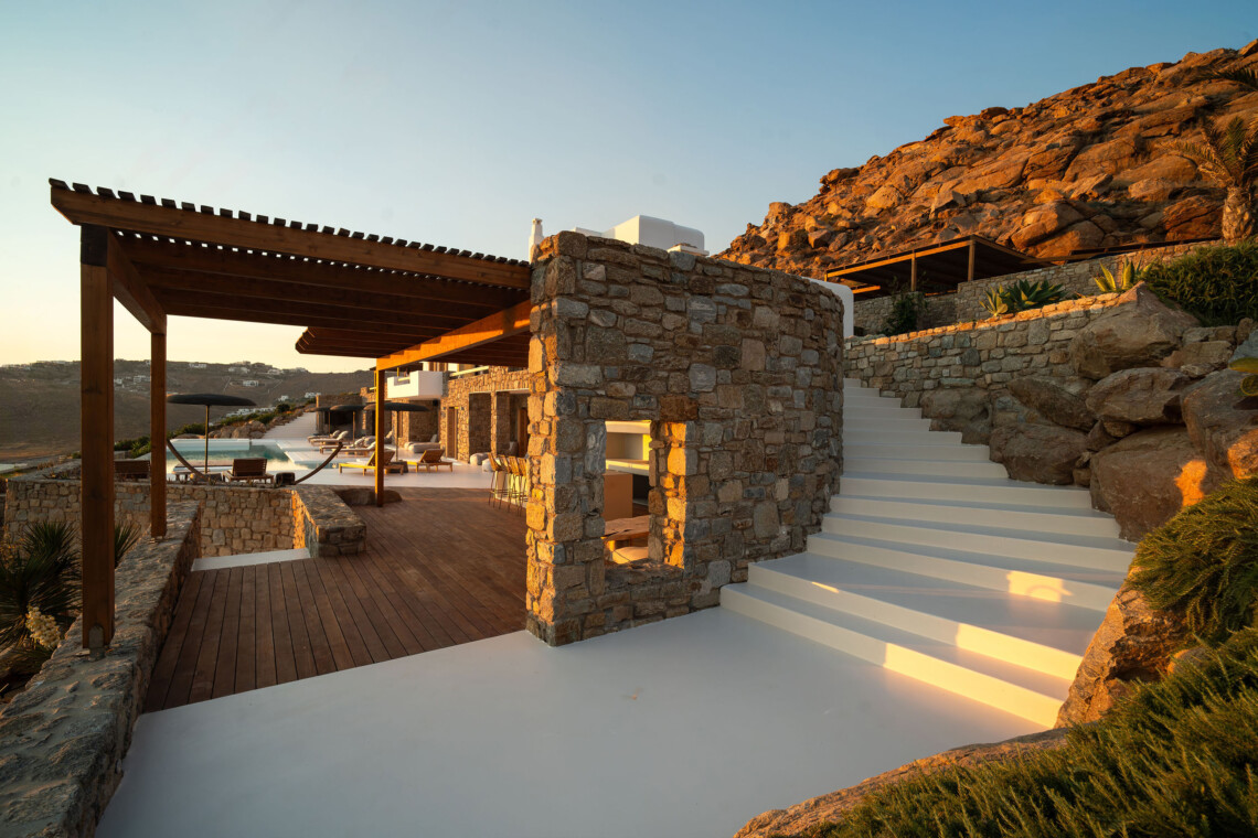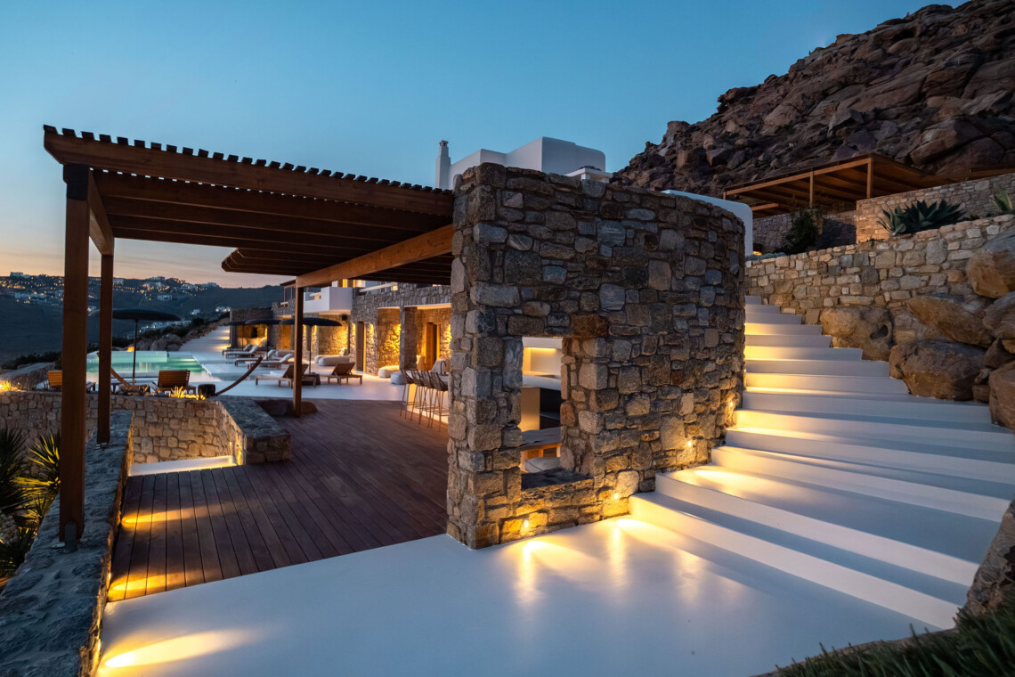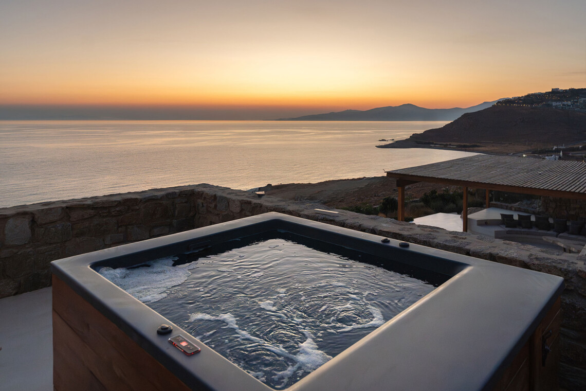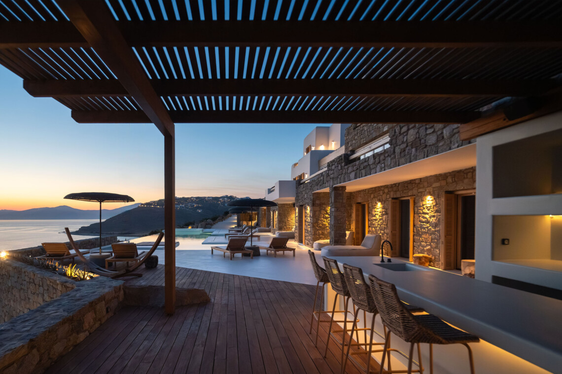 A magnificent villa set above a pristine natural bay with unique uninterrupted views of the coastline. Casa Vrahos possesses a unique, serene atmosphere within a short drive from the island’s revered nightlife.