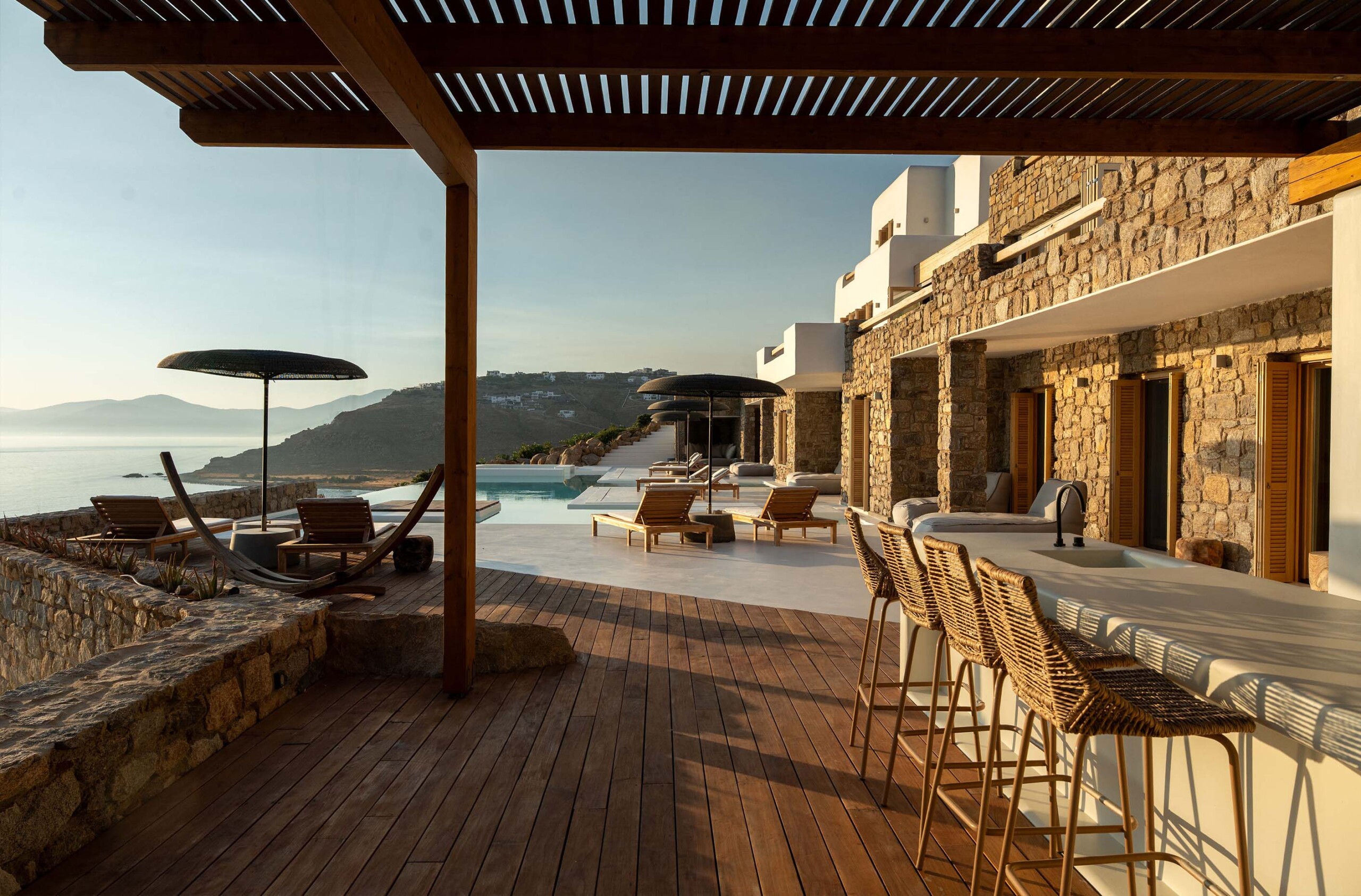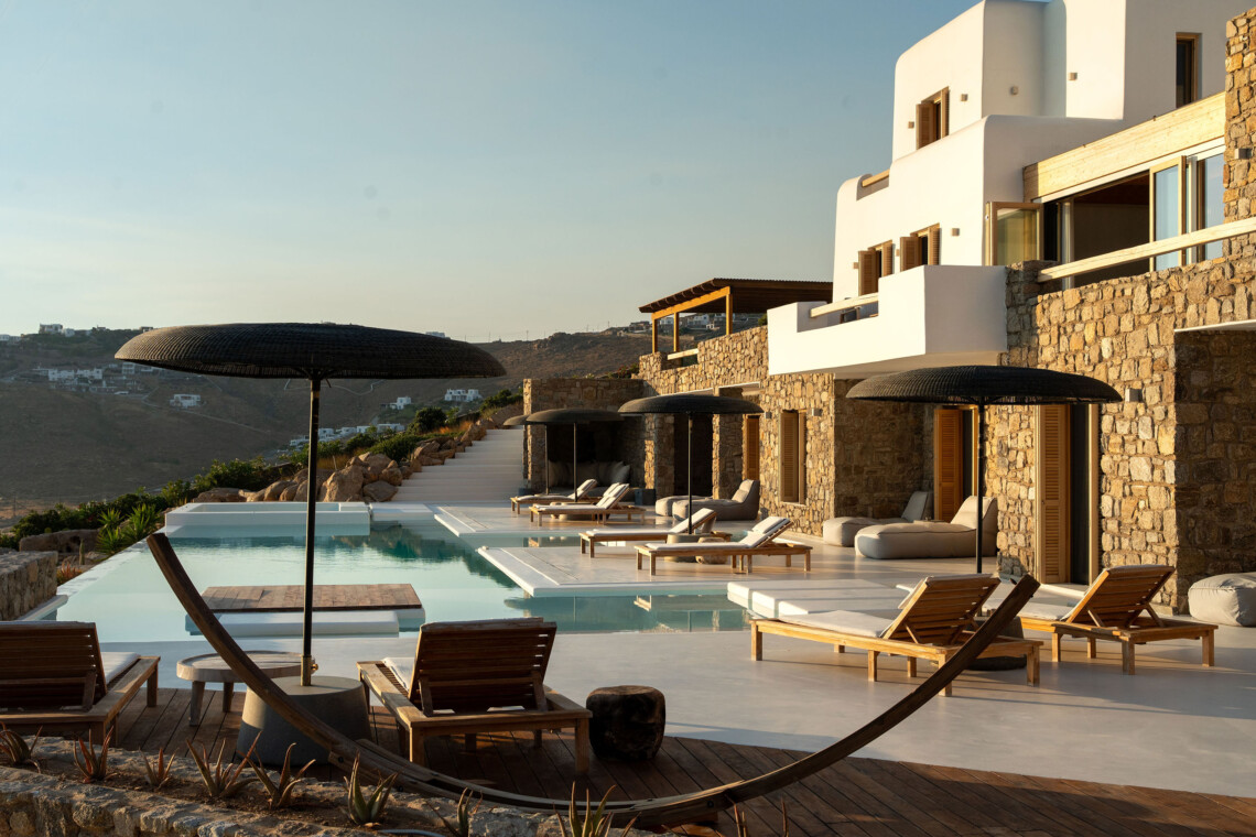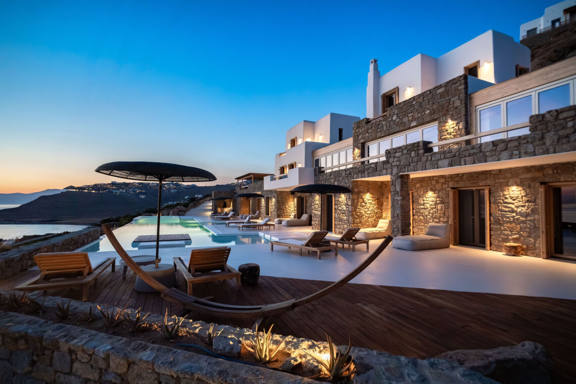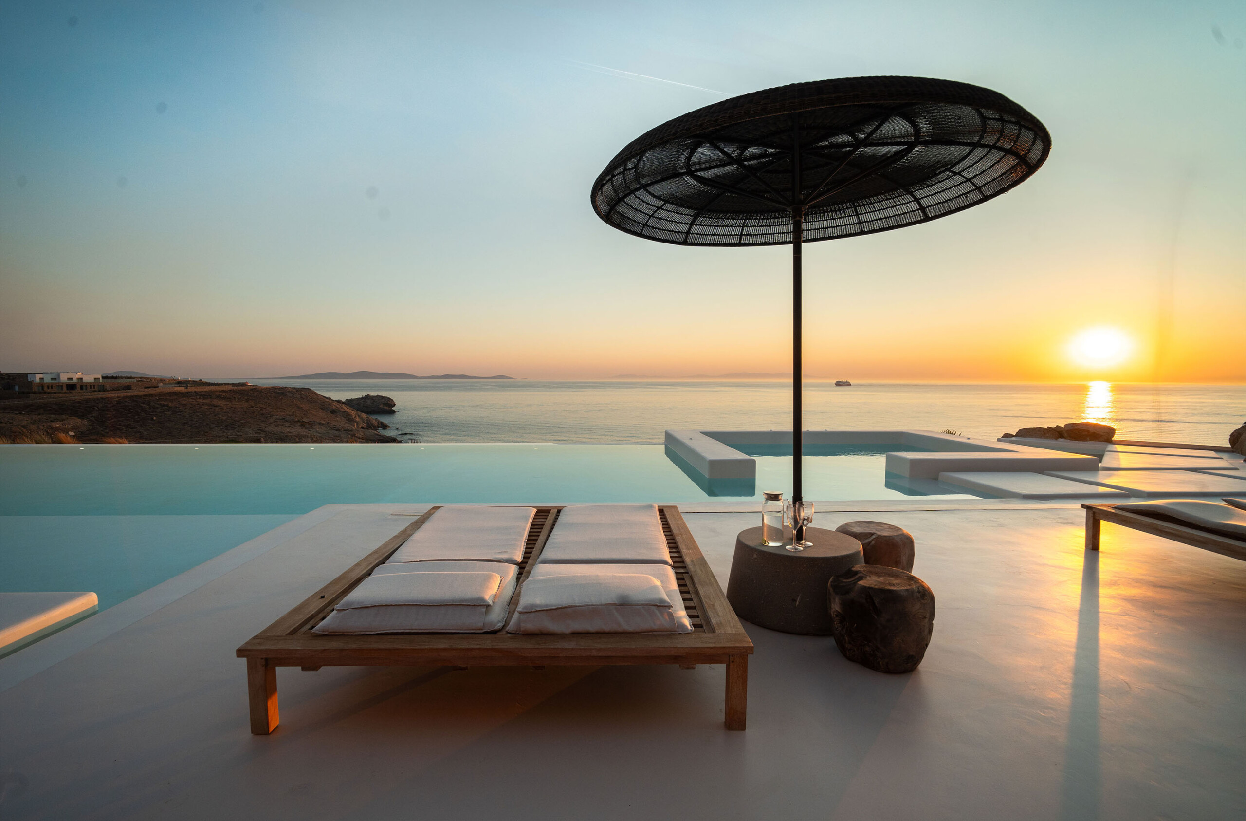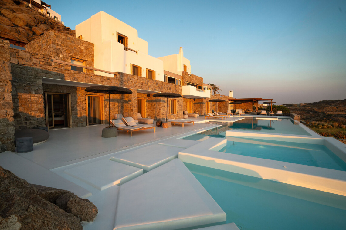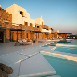 A magnificent villa set above a pristine natural bay with unique uninterrupted views of the coastline. Casa Vrahos possesses a unique, serene atmosphere within a short drive from the island’s revered nightlife.