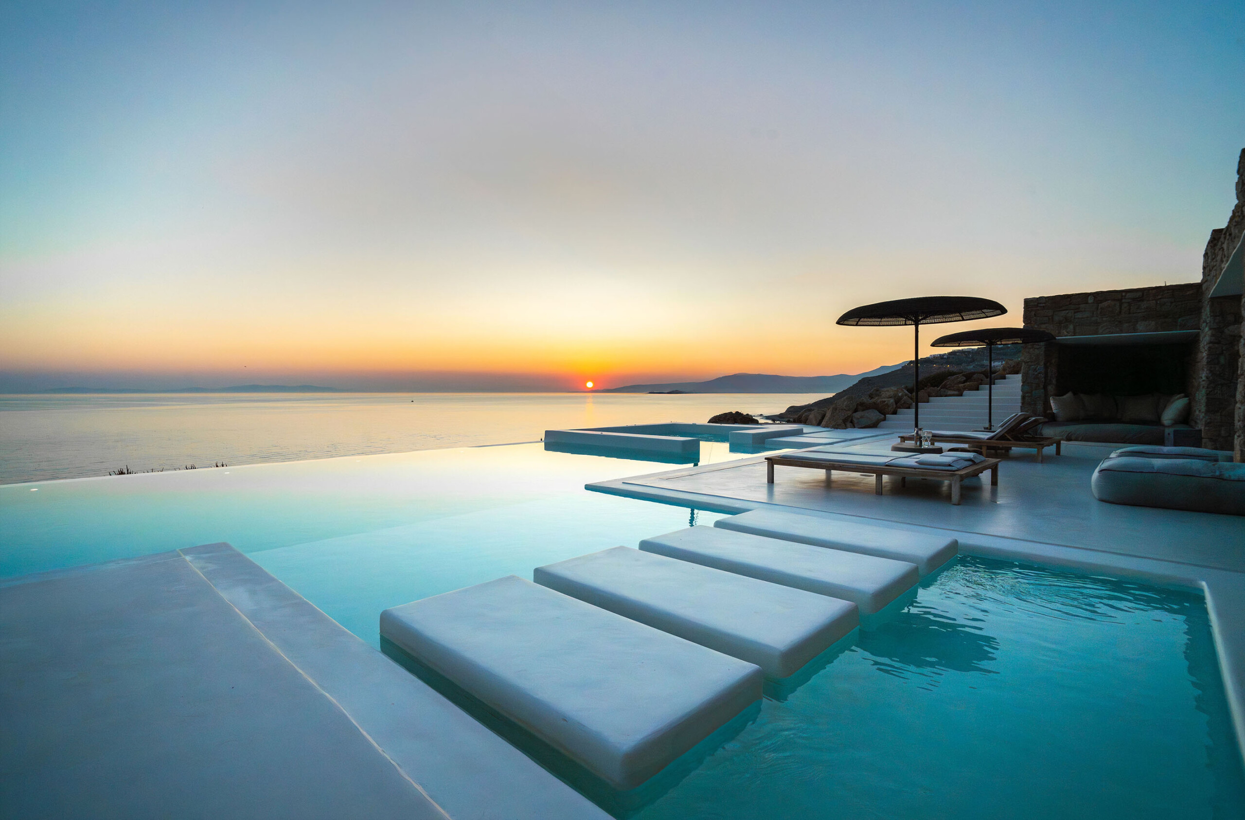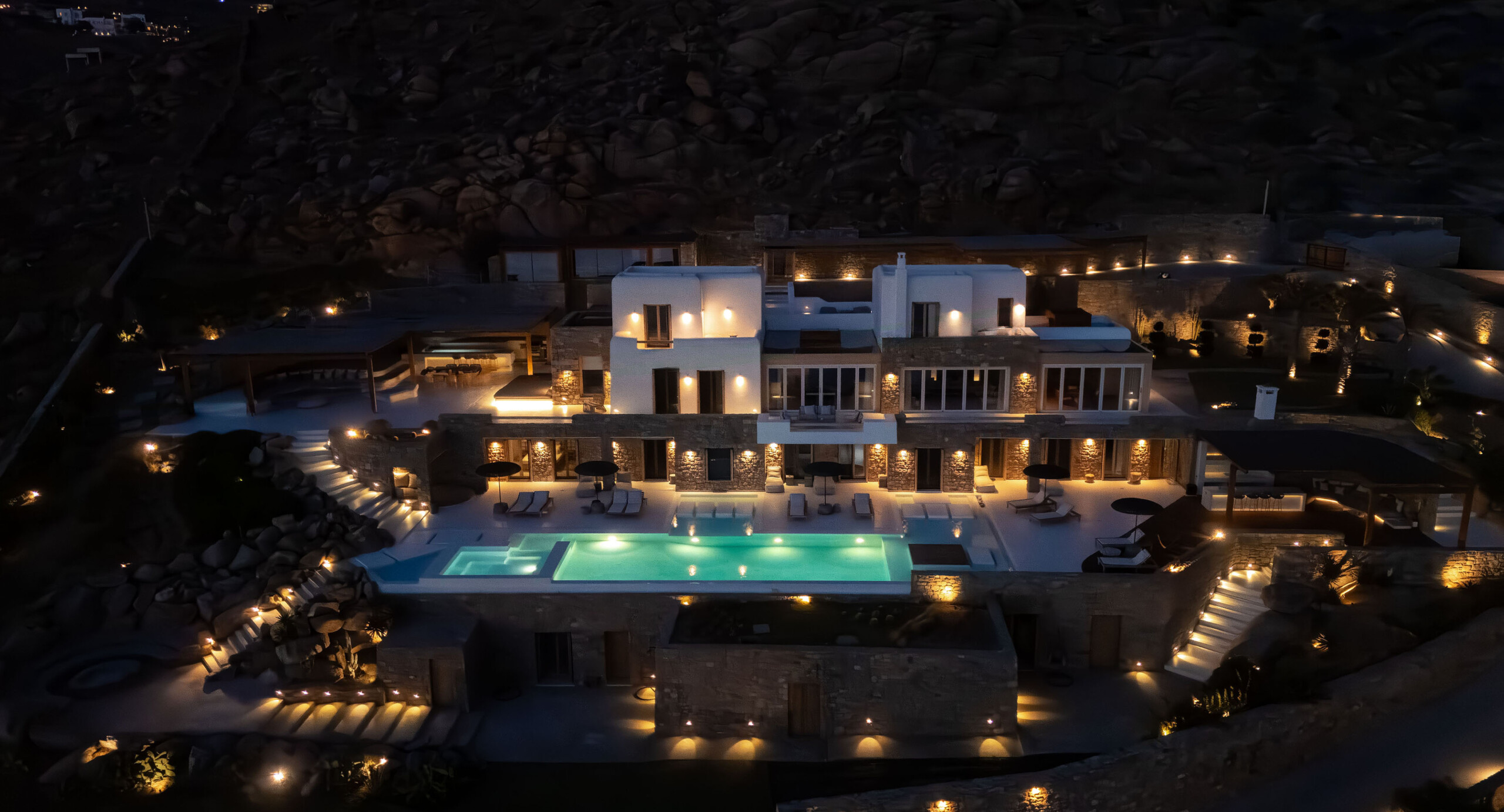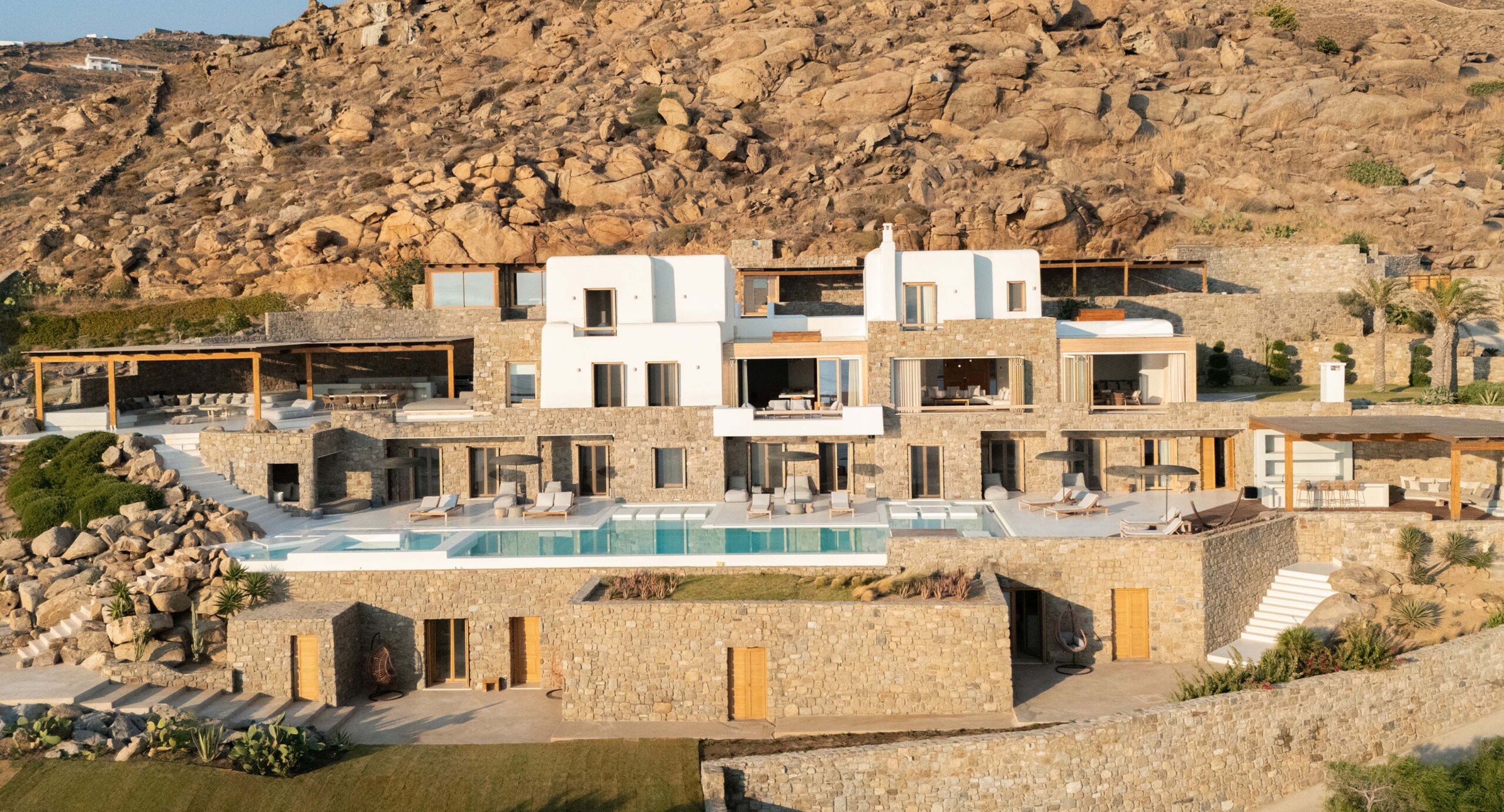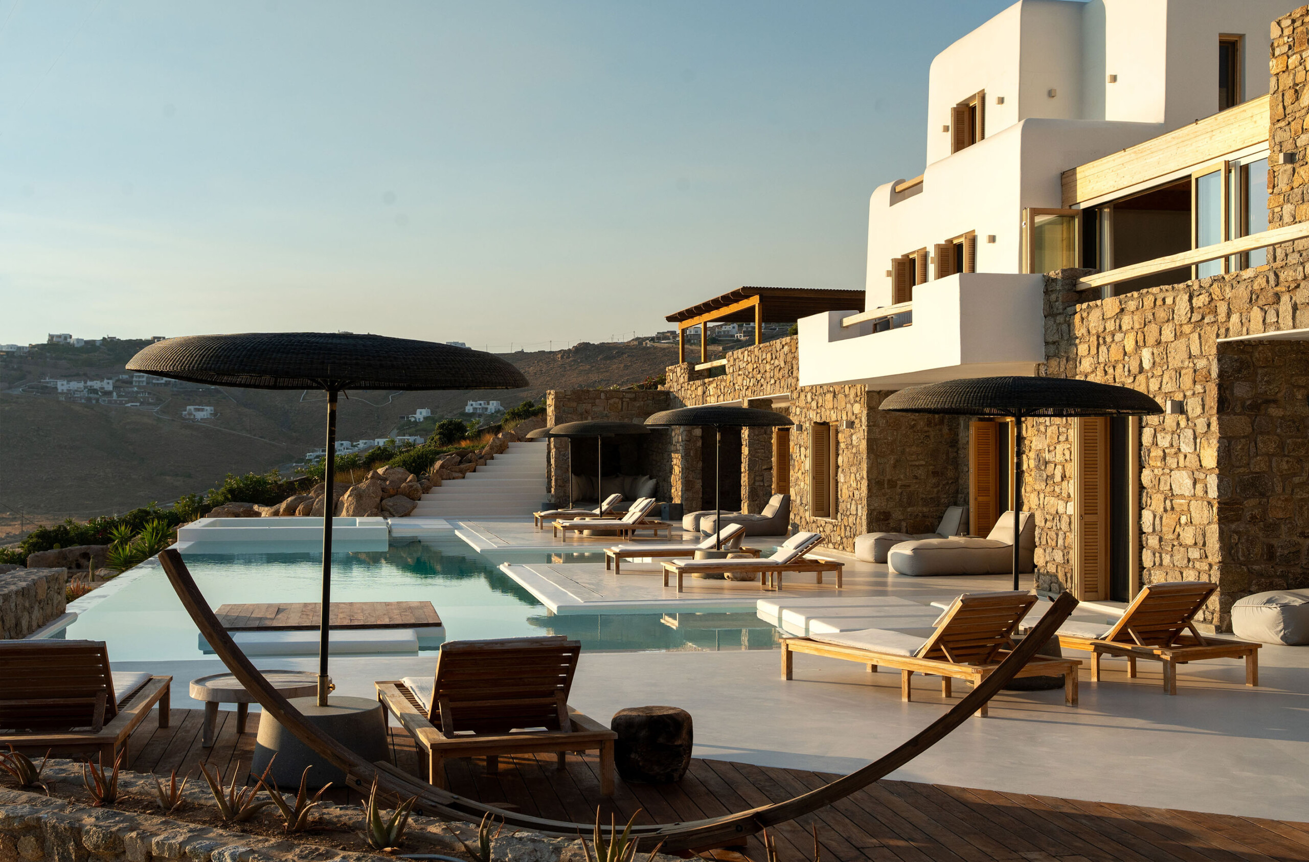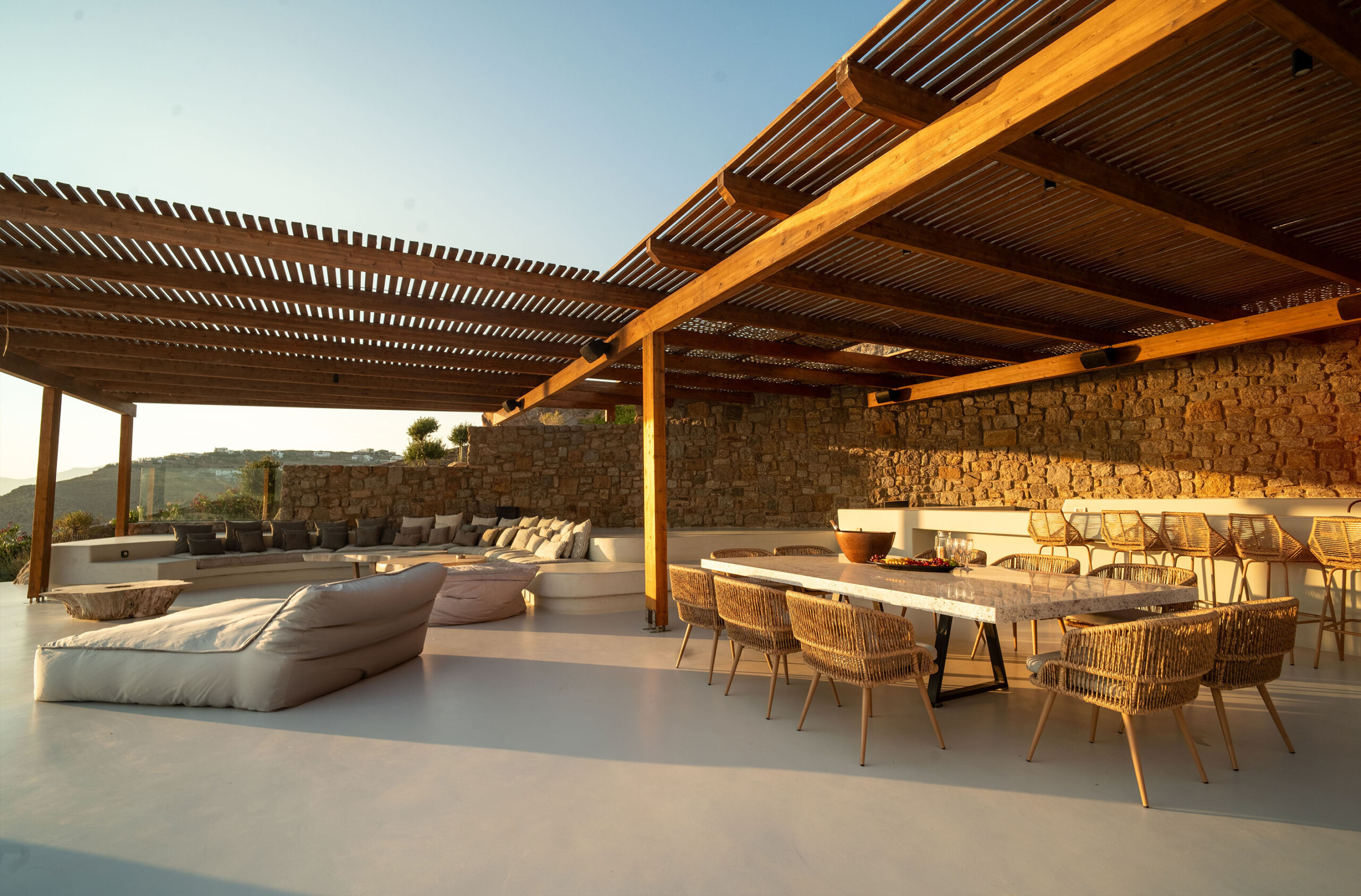 A magnificent villa set above a pristine natural bay with unique uninterrupted views of the coastline. Casa Vrahos possesses a unique, serene atmosphere within a short drive from the island’s revered nightlife.