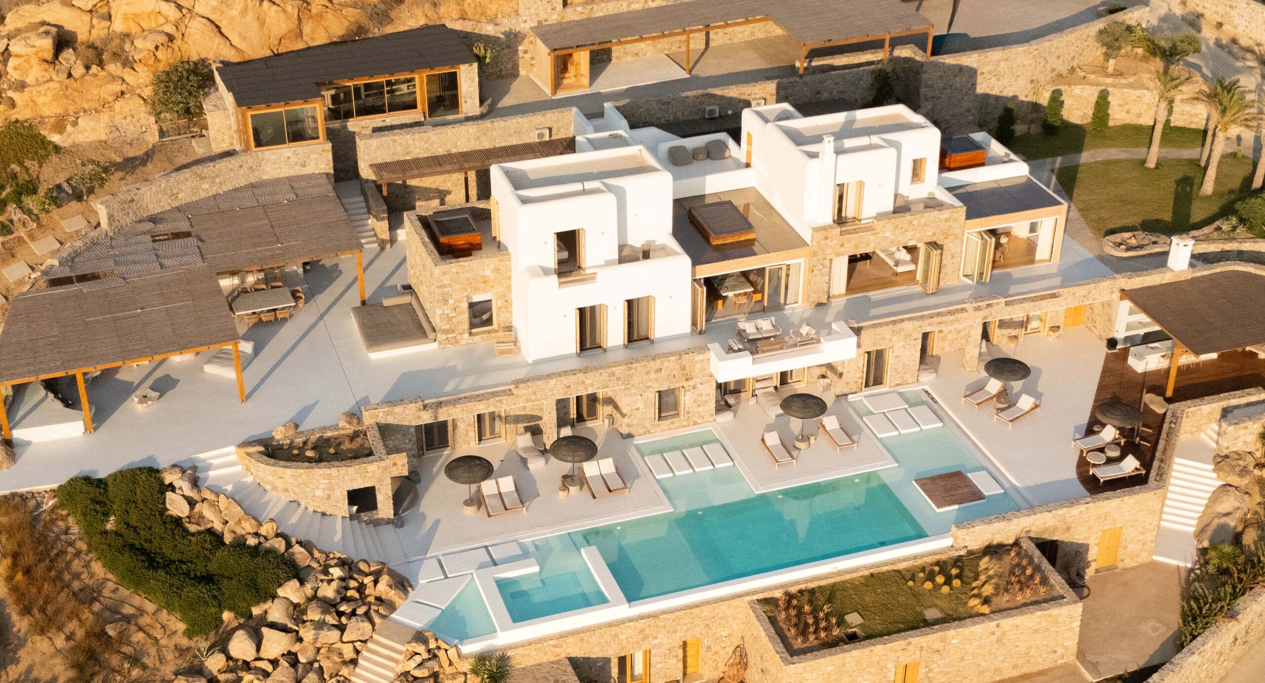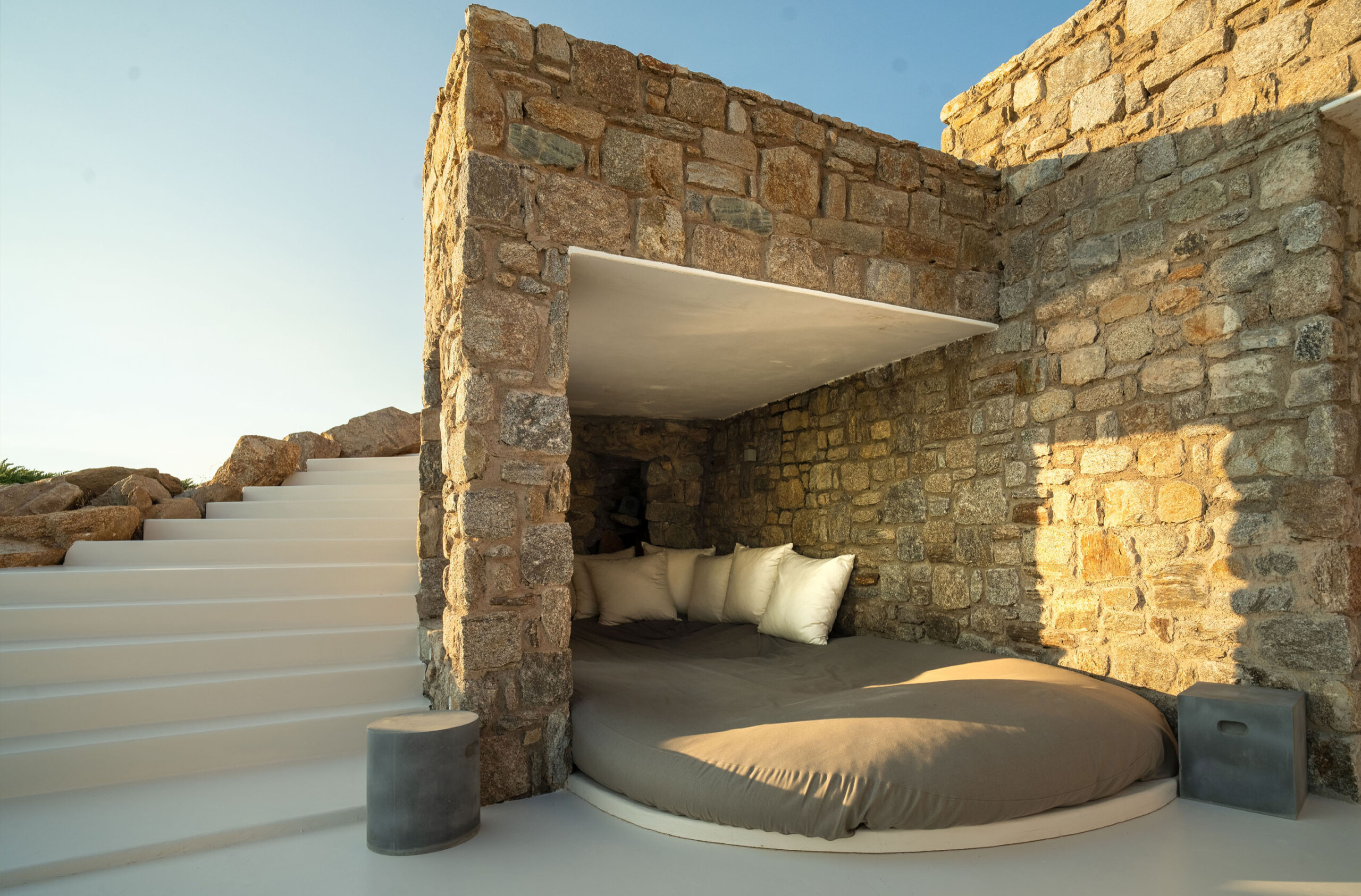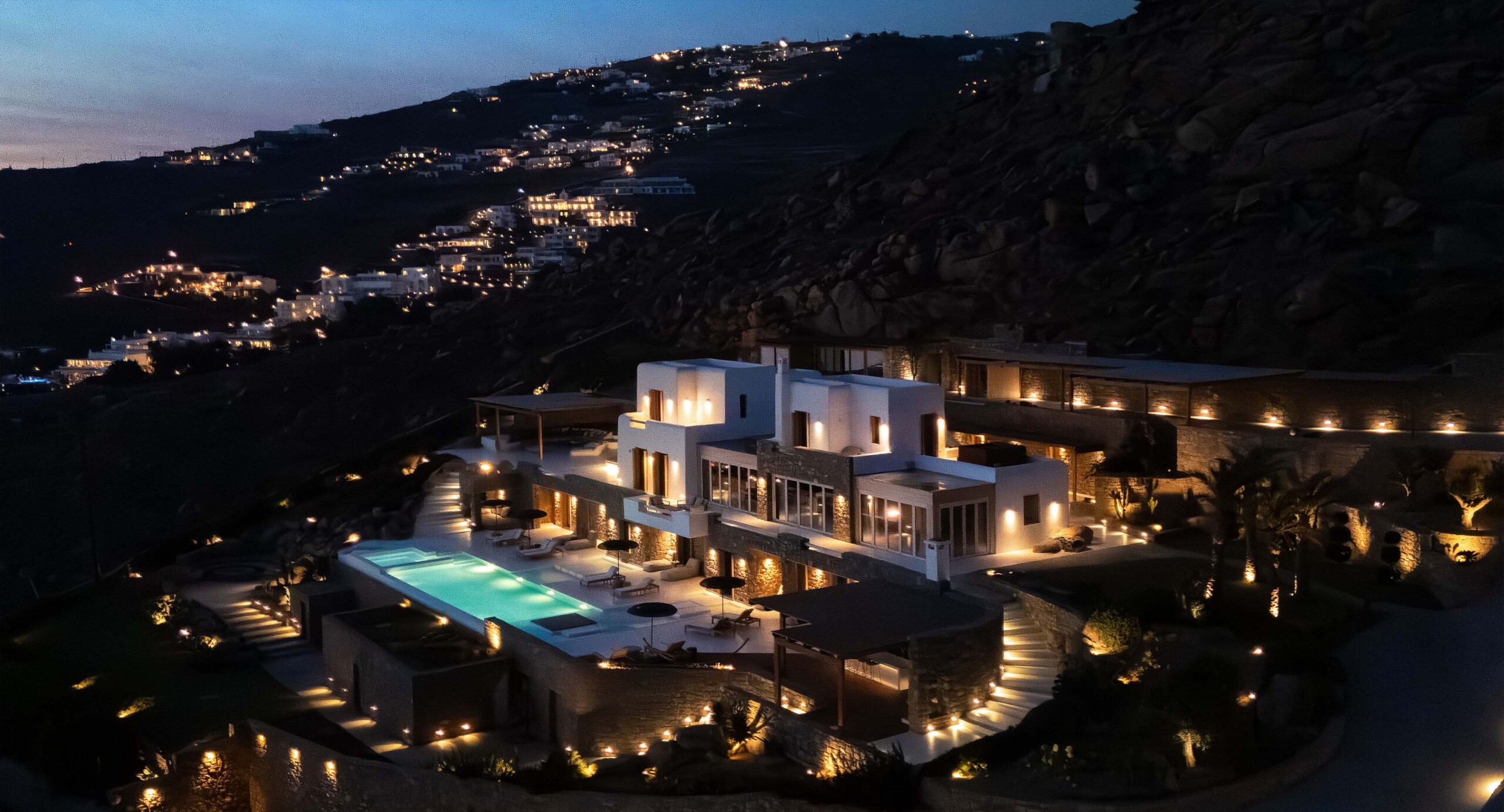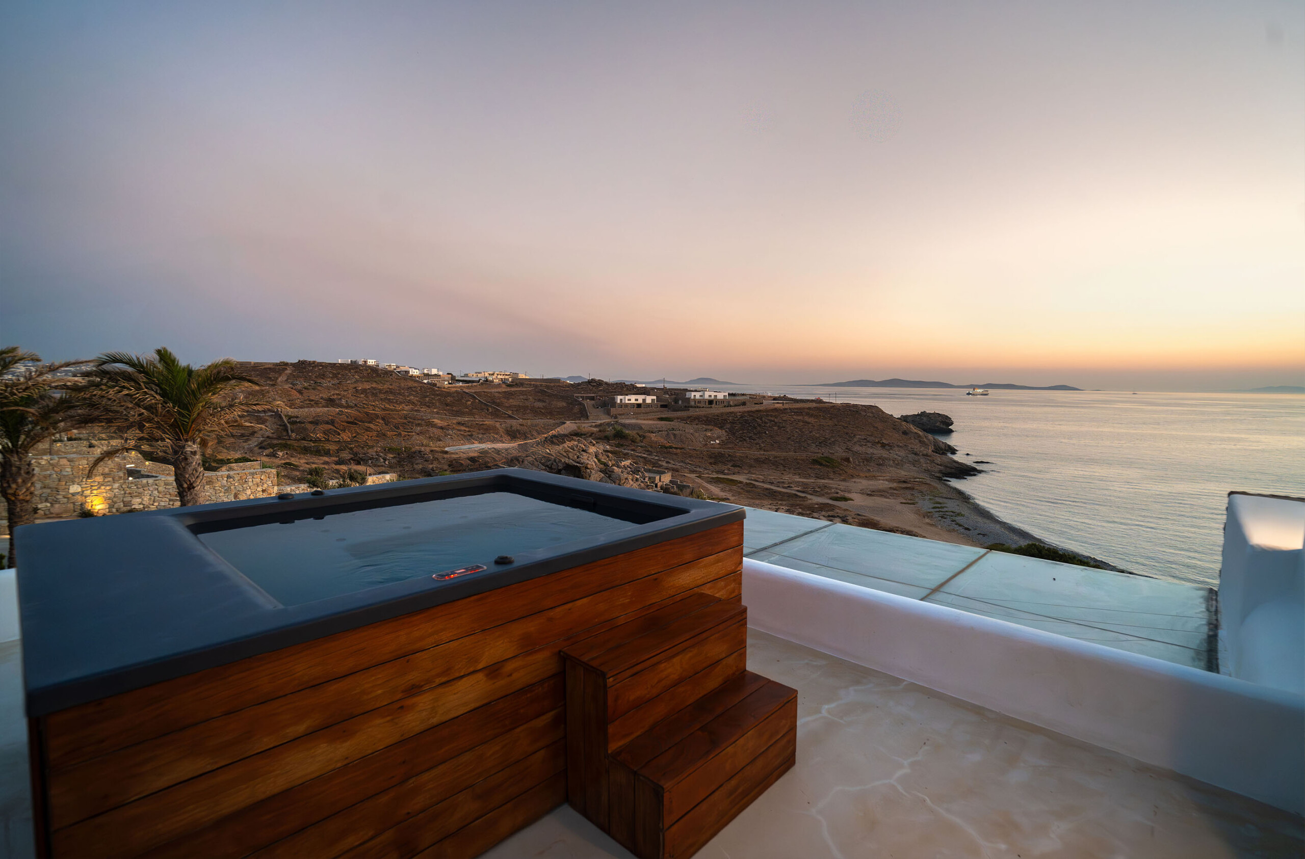 A magnificent villa set above a pristine natural bay with unique uninterrupted views of the coastline. Casa Vrahos possesses a unique, serene atmosphere within a short drive from the island’s revered nightlife.