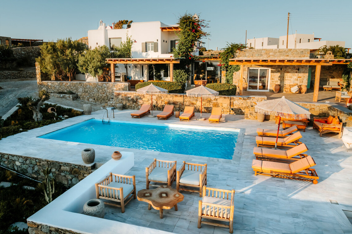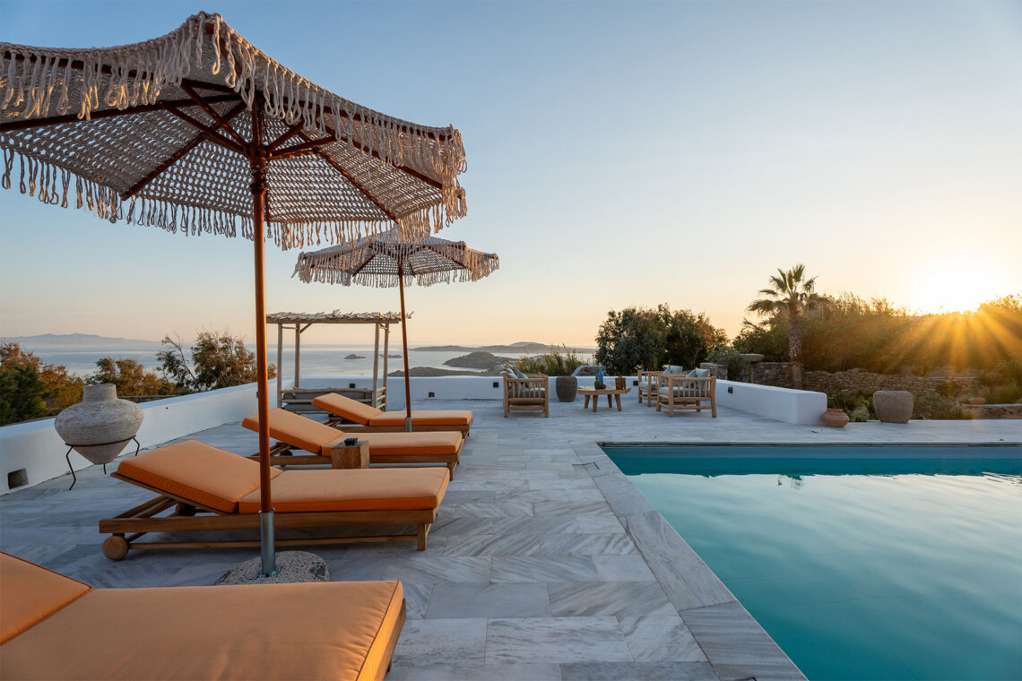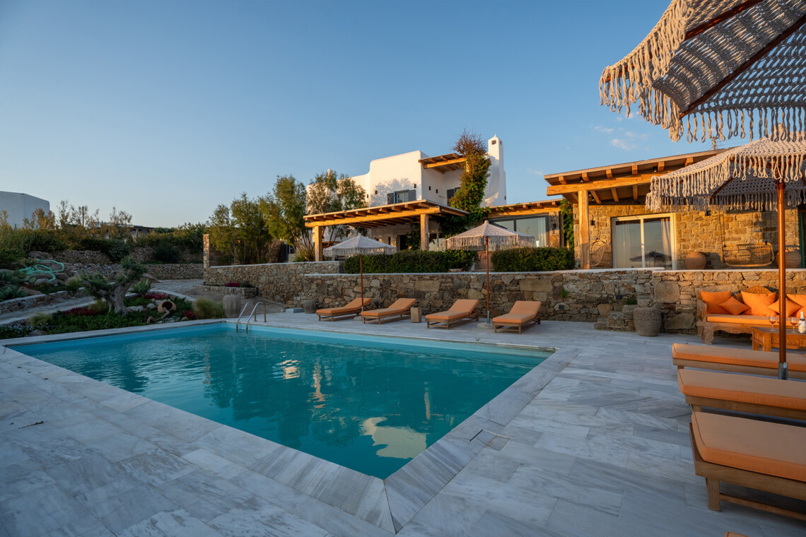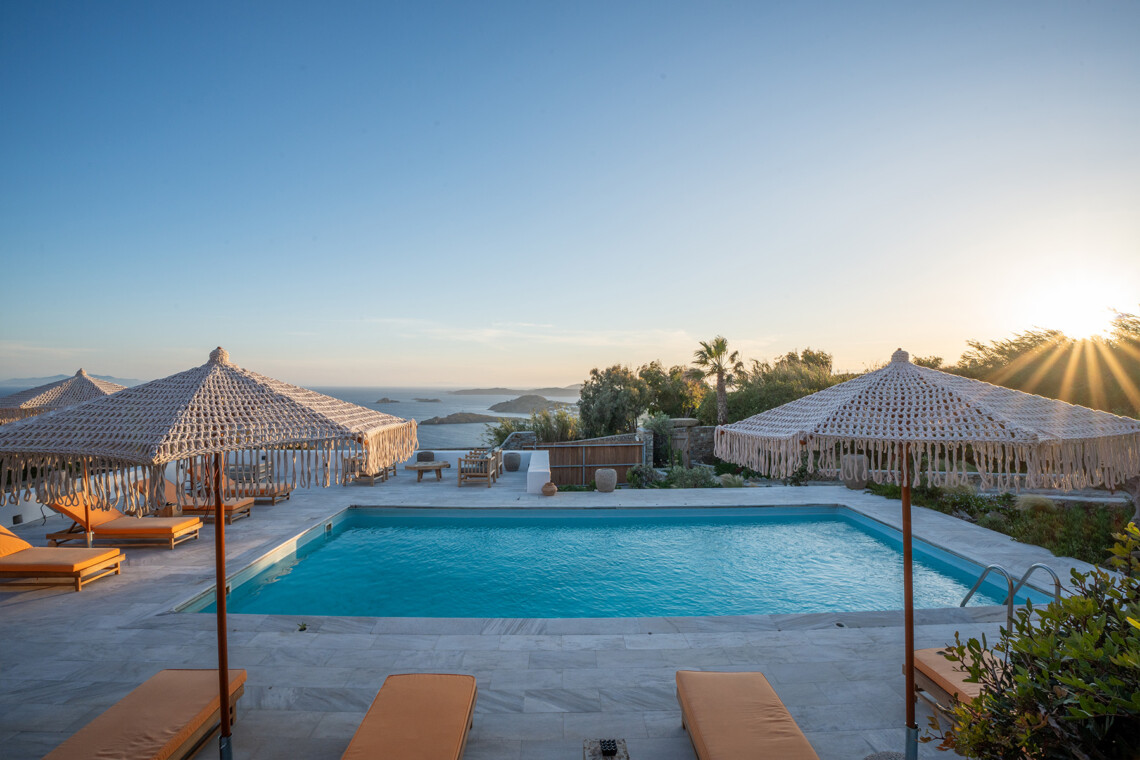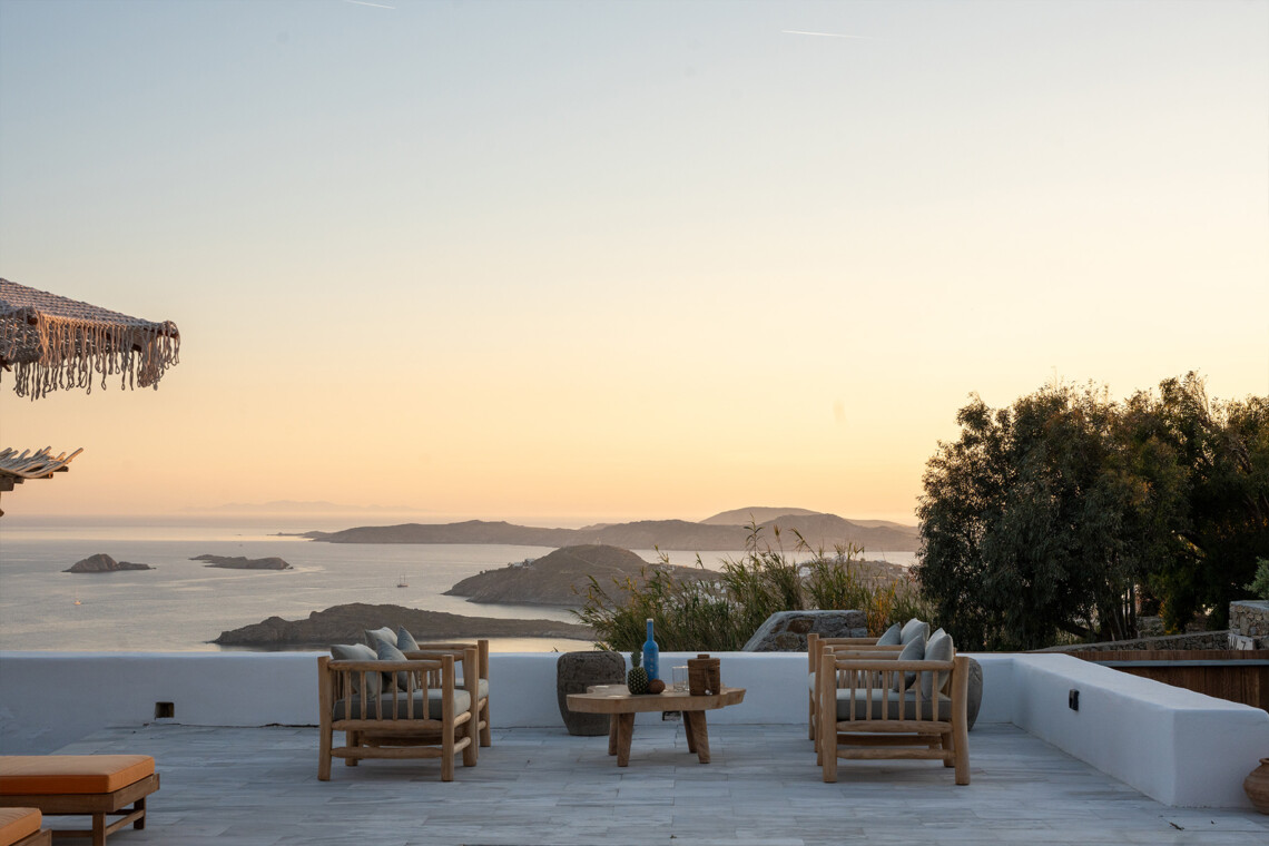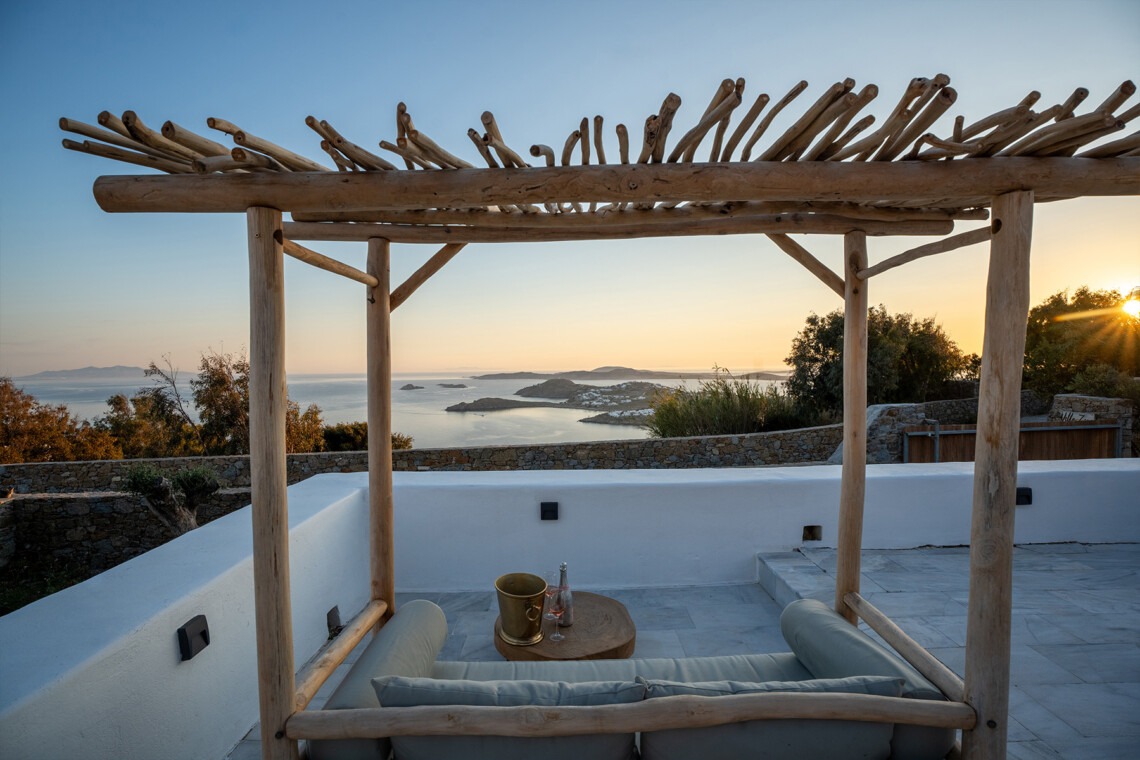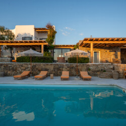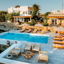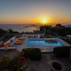 Villa Zanet is a stunning newly renovated retreat in Agios Lazaros, Psarou, designed to combine Cycladic architecture with chic bohemian elegance. Perched hillside with unobstructed sunset views over Ornos Bay, Delos, and Rhenia, the property offers a serene yet privileged location close to the island’s most glamorous scene. With two independent buildings and a total of 7+1 beautifully styled bedrooms, it accommodates up to 16 guests in privacy and sophistication.
