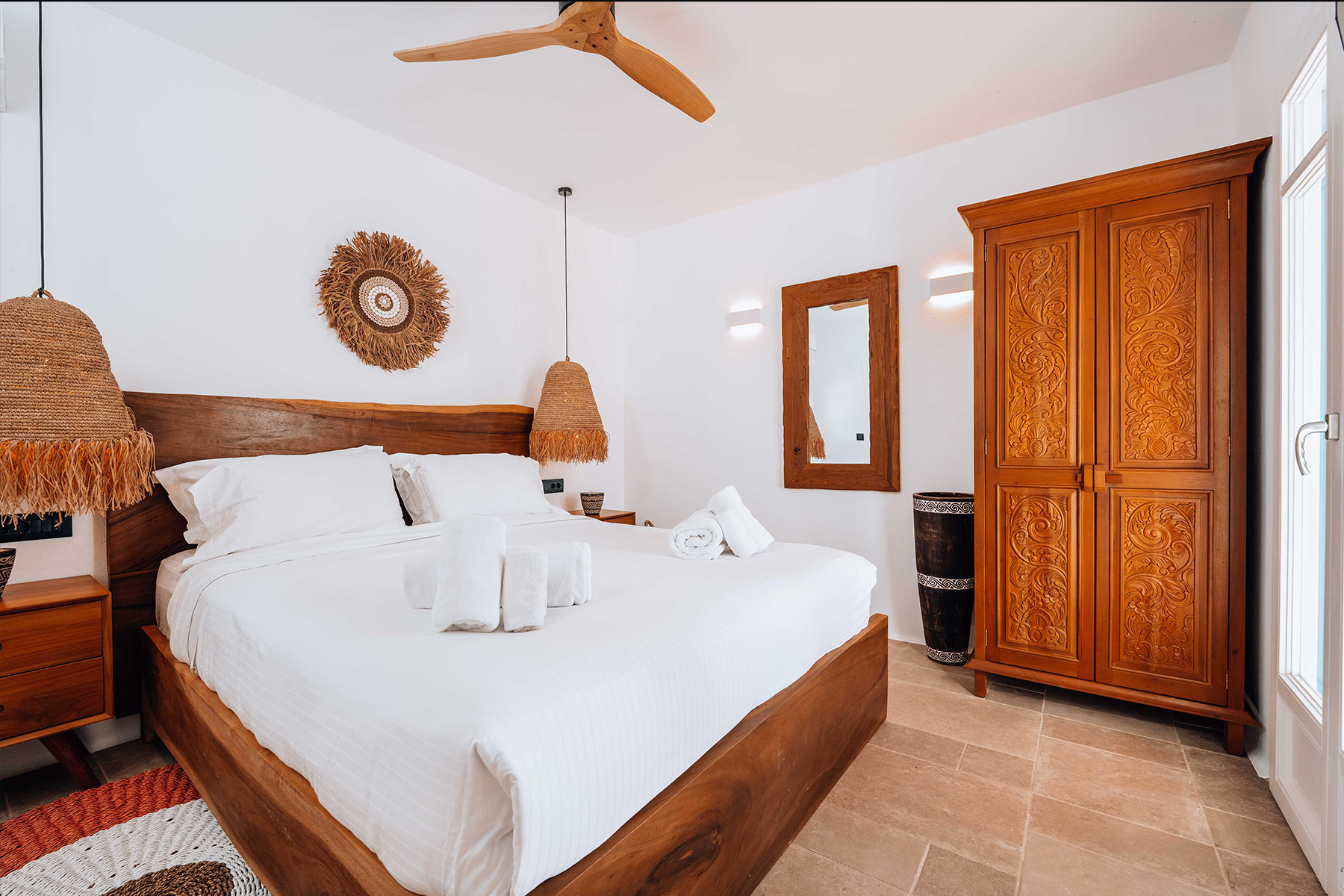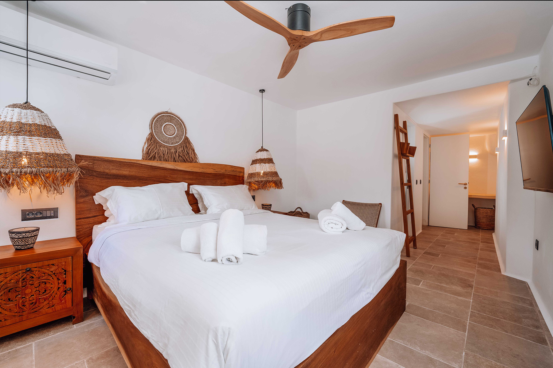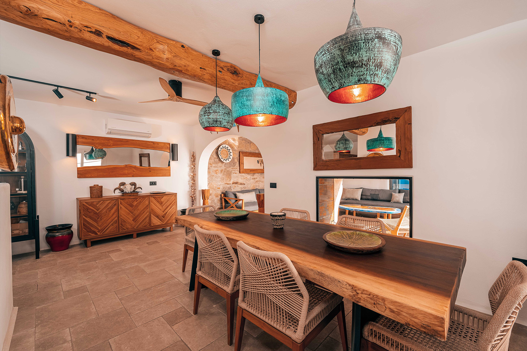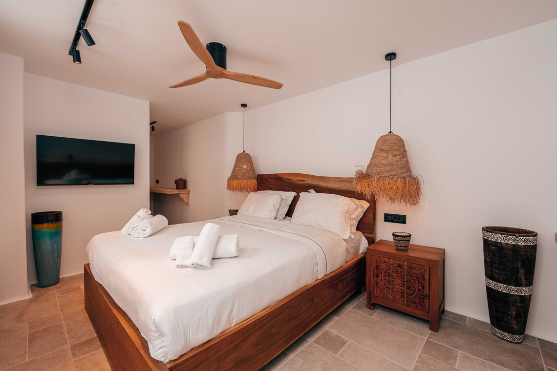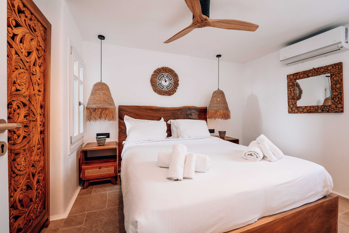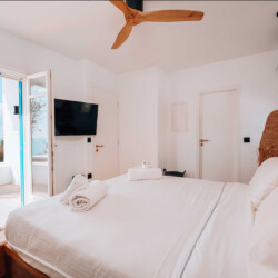 Villa Zanet is a stunning newly renovated retreat in Agios Lazaros, Psarou, designed to combine Cycladic architecture with chic bohemian elegance. Perched hillside with unobstructed sunset views over Ornos Bay, Delos, and Rhenia, the property offers a serene yet privileged location close to the island’s most glamorous scene. With two independent buildings and a total of 7+1 beautifully styled bedrooms, it accommodates up to 16 guests in privacy and sophistication.